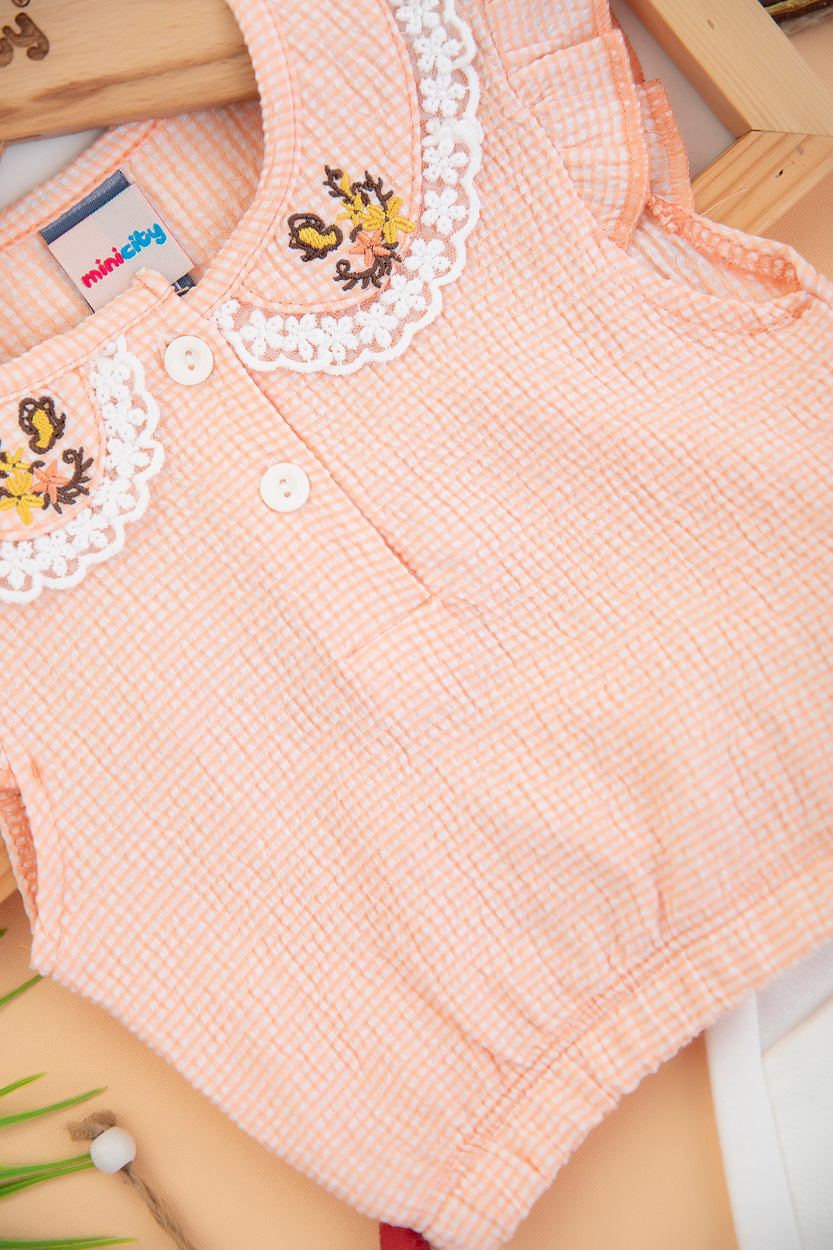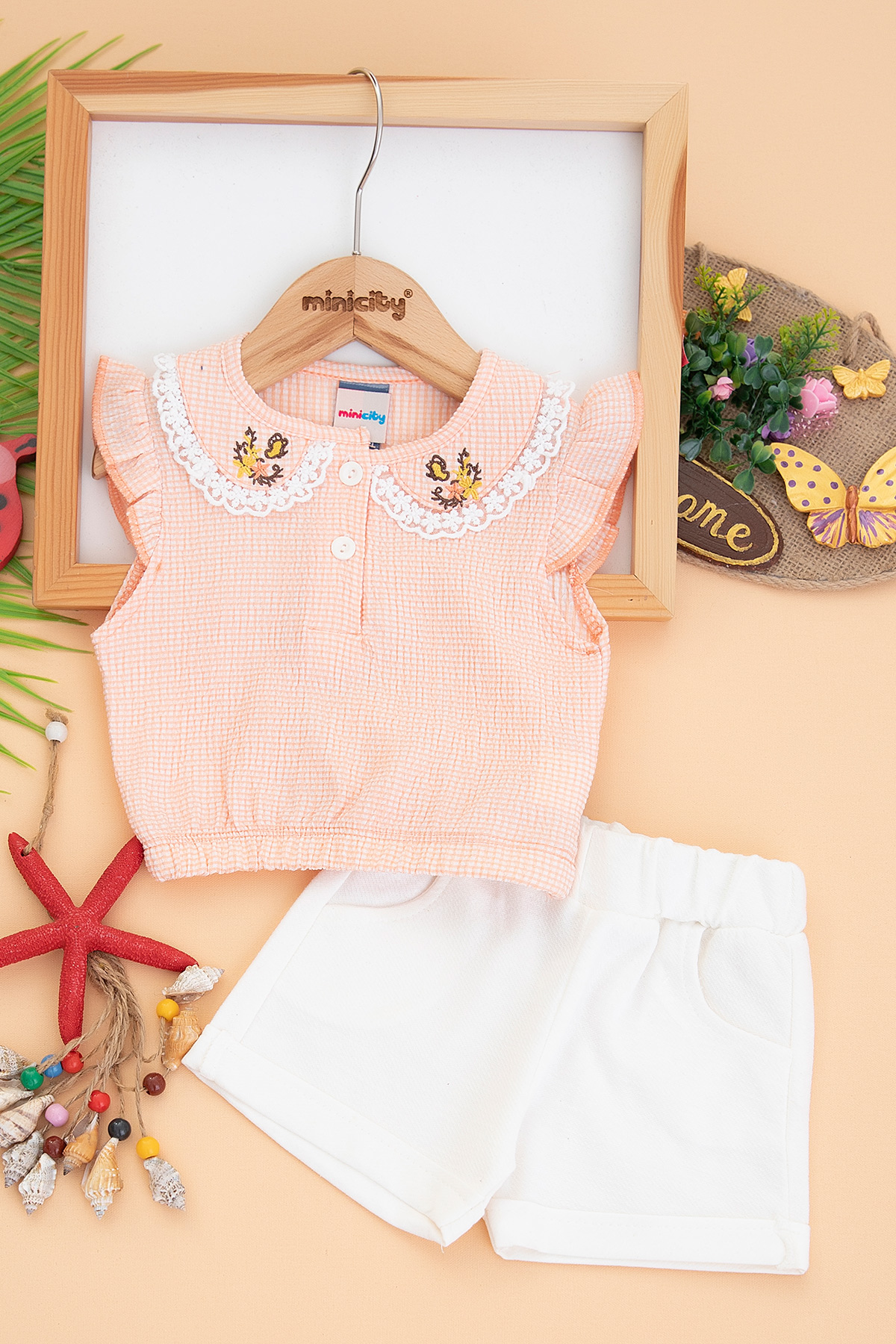Kız Çocuk Yakası Çiçek Nakışlı Şortlu Takım - 24345 (3-6 Yaş )