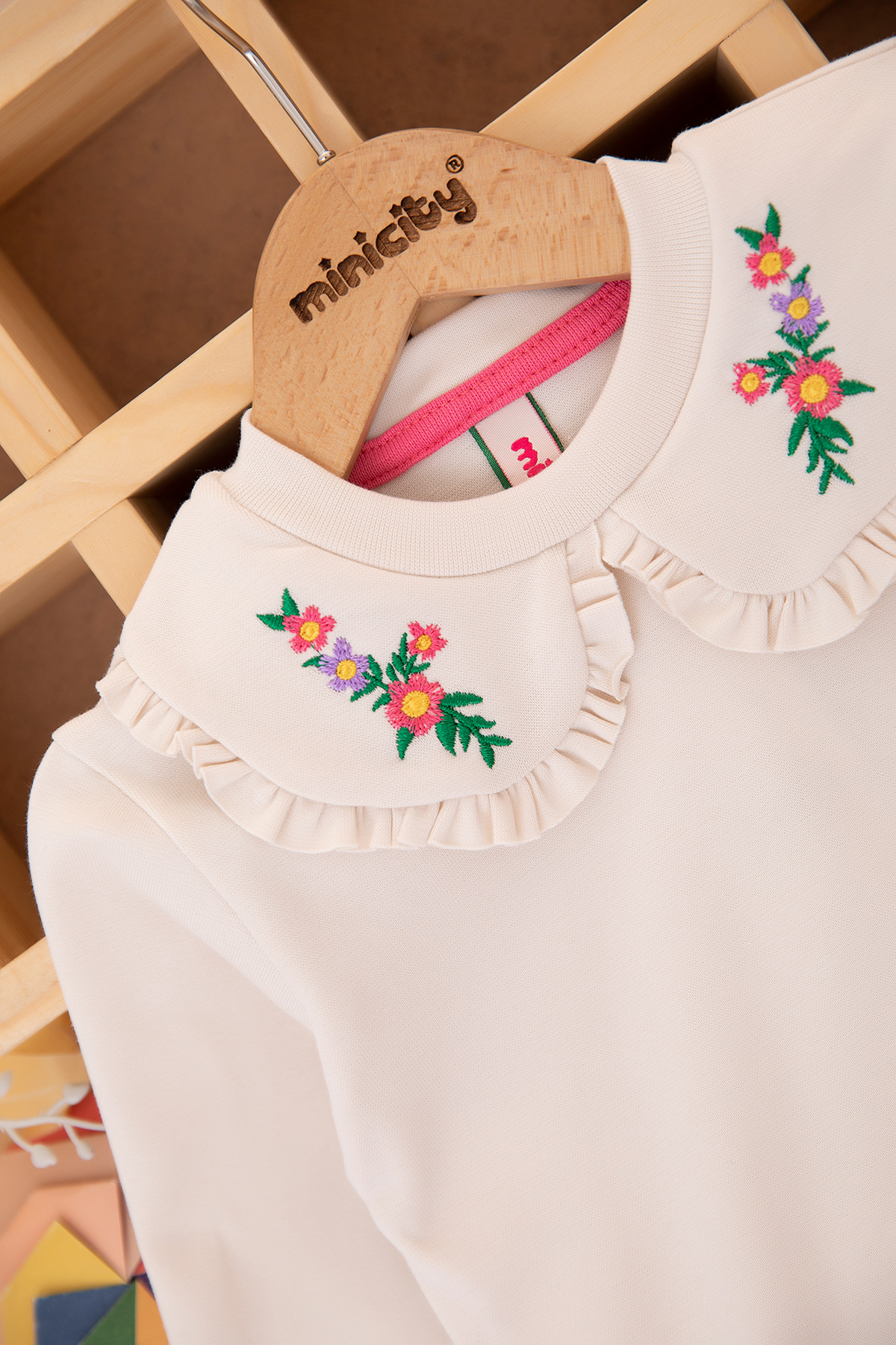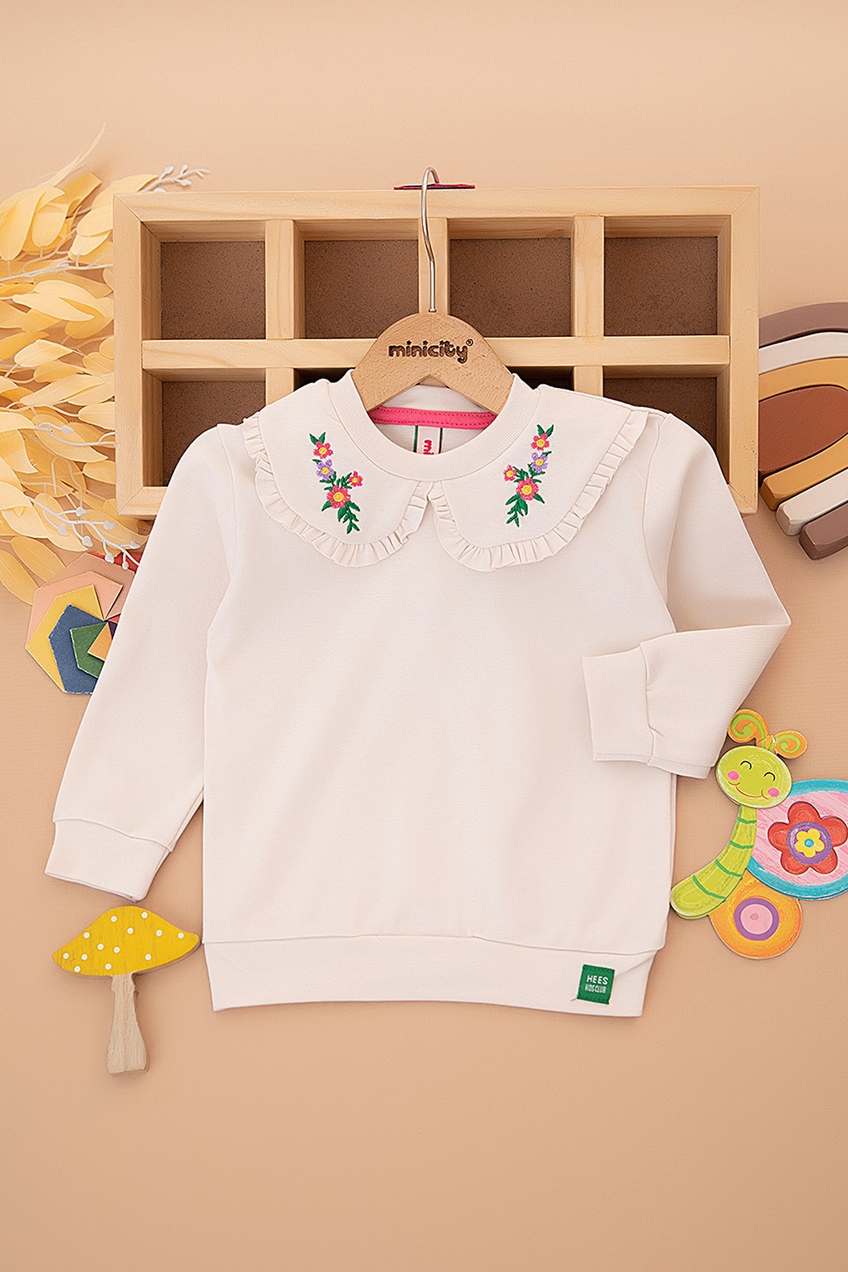 Kız Çocuk Yakası Çiçek Nakışlı Sweat (2-10 Yaş)
