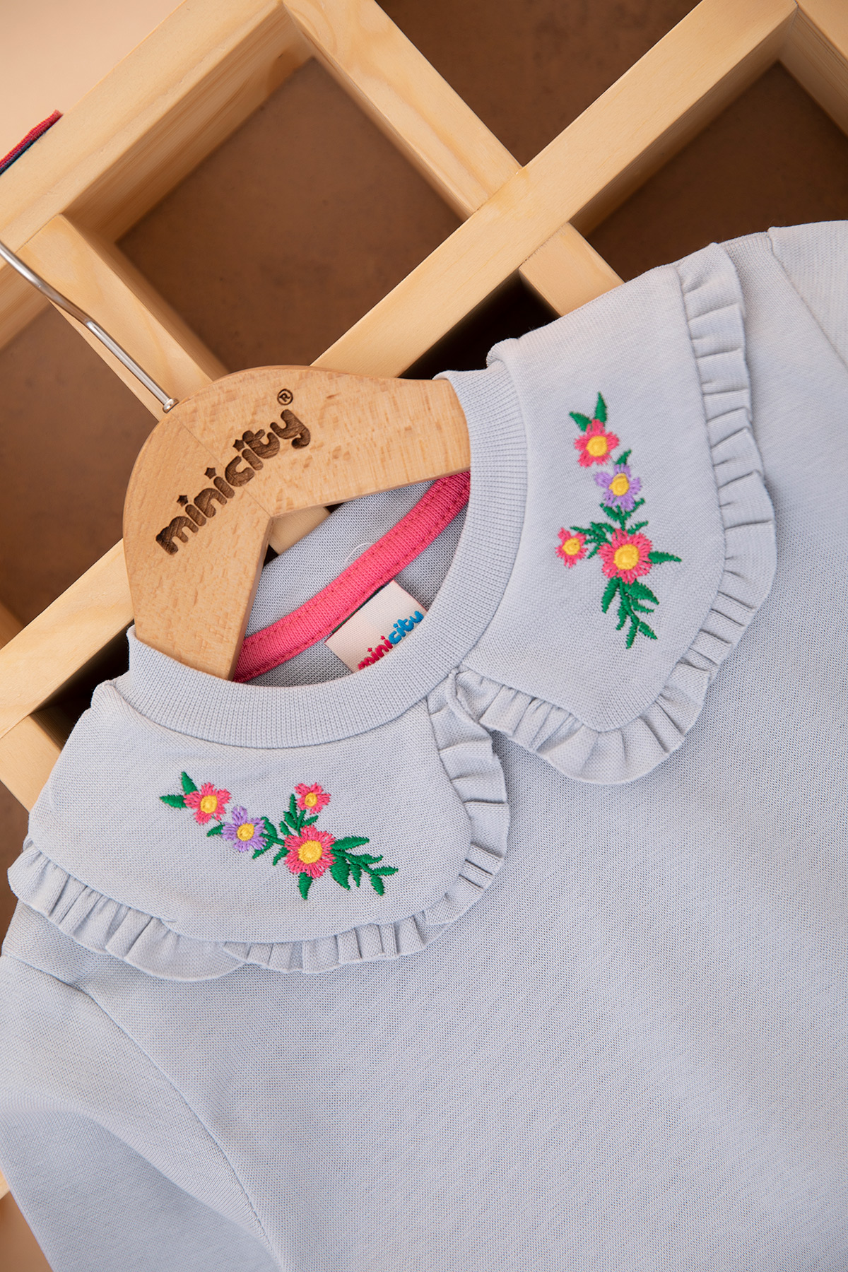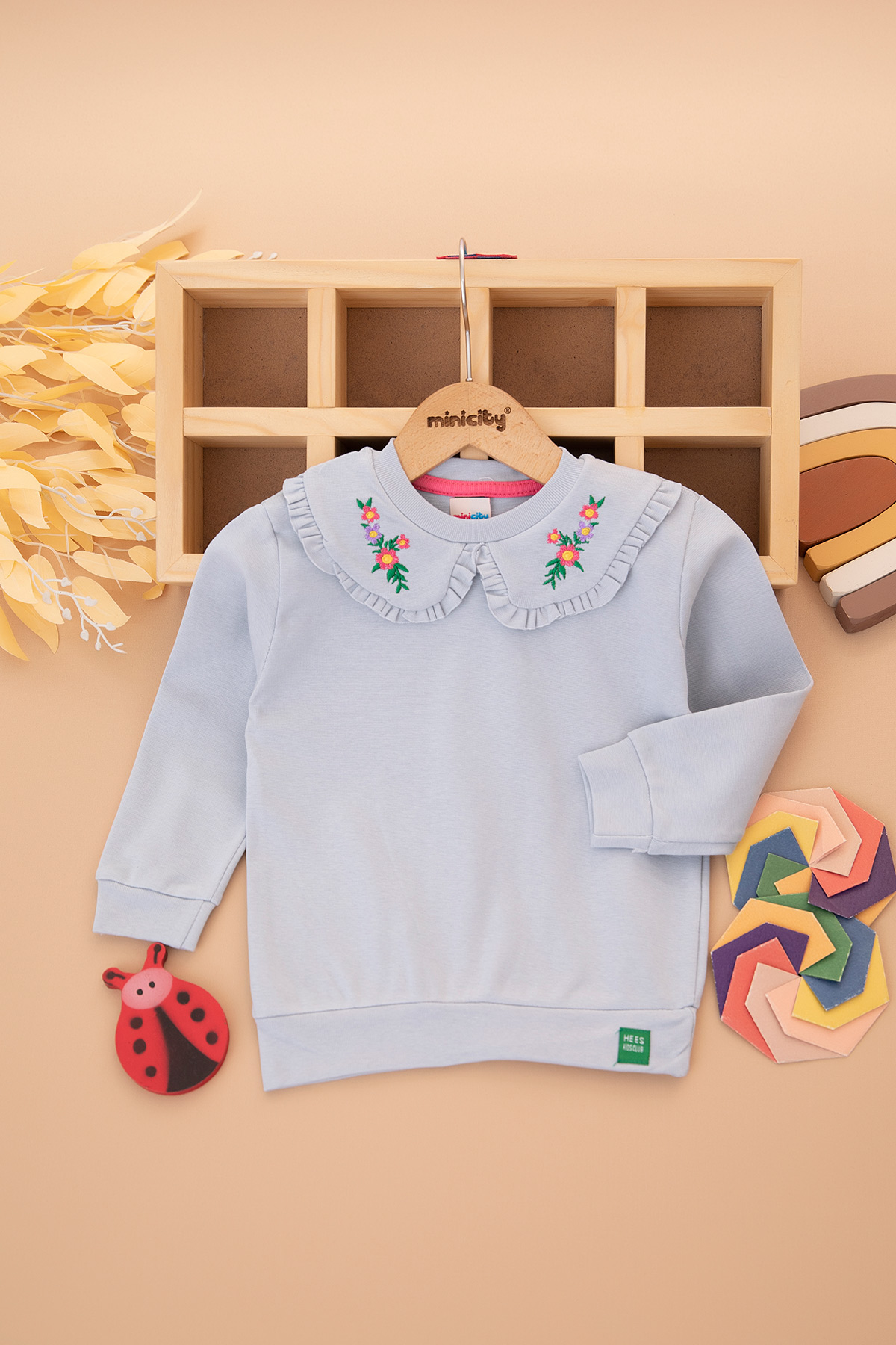 Kız Çocuk Yakası Çiçek Nakışlı Sweat (2-10 Yaş)