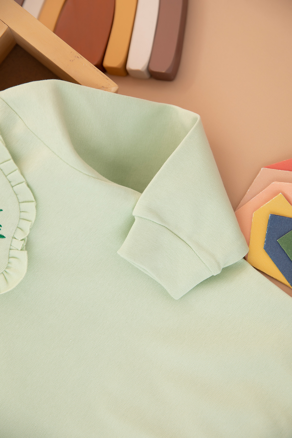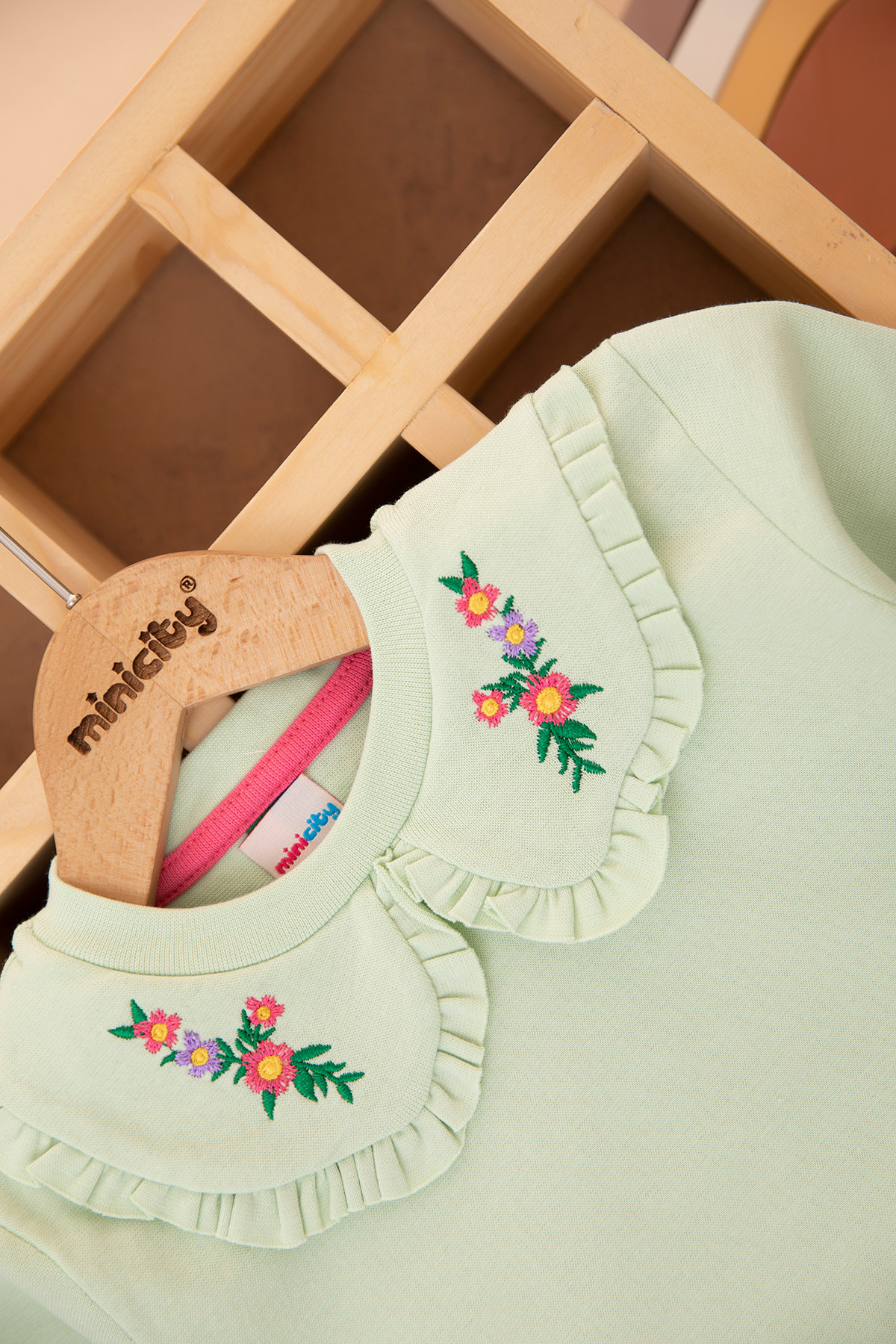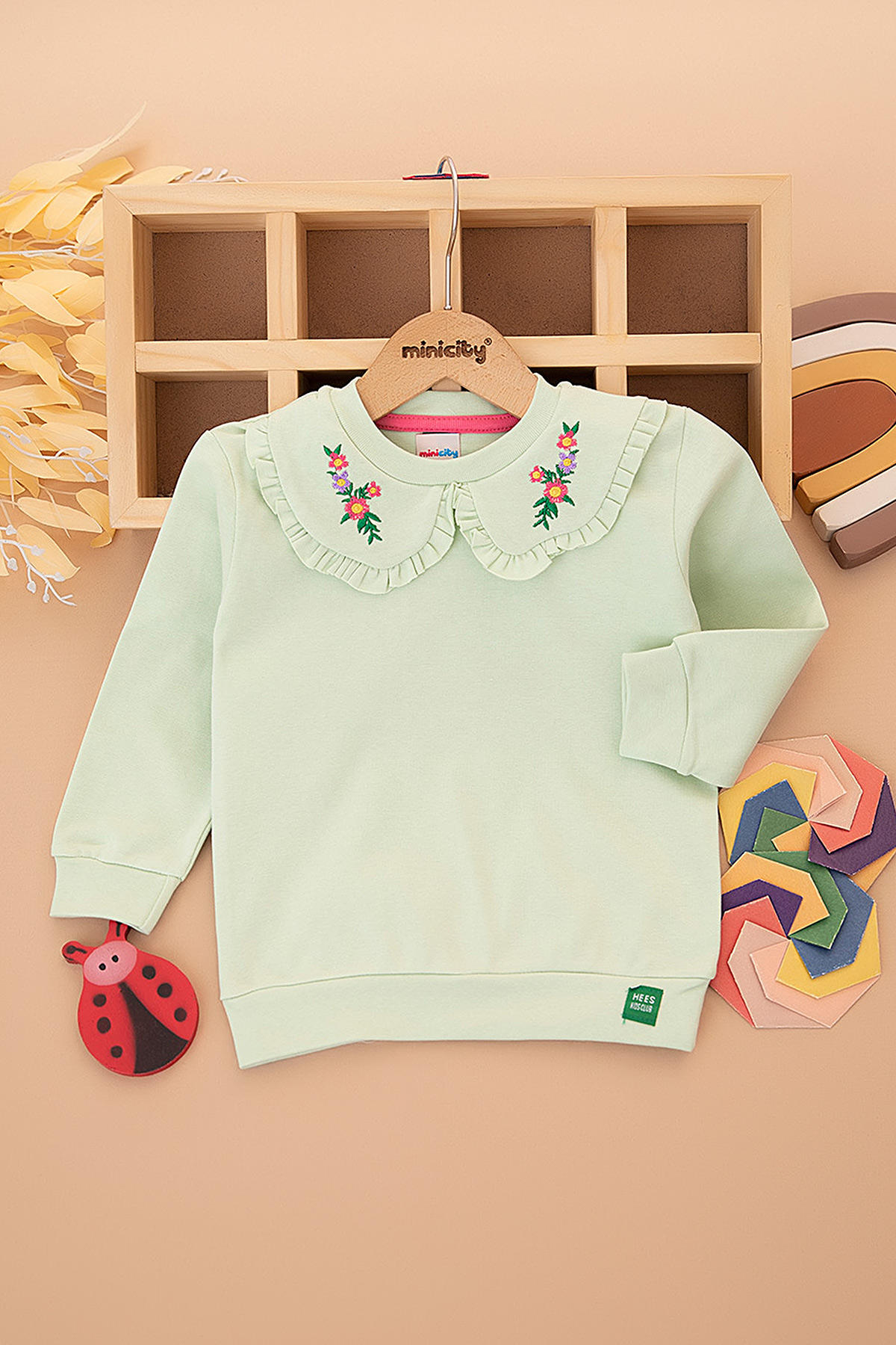 Kız Çocuk Yakası Çiçek Nakışlı Sweat (2-10 Yaş)