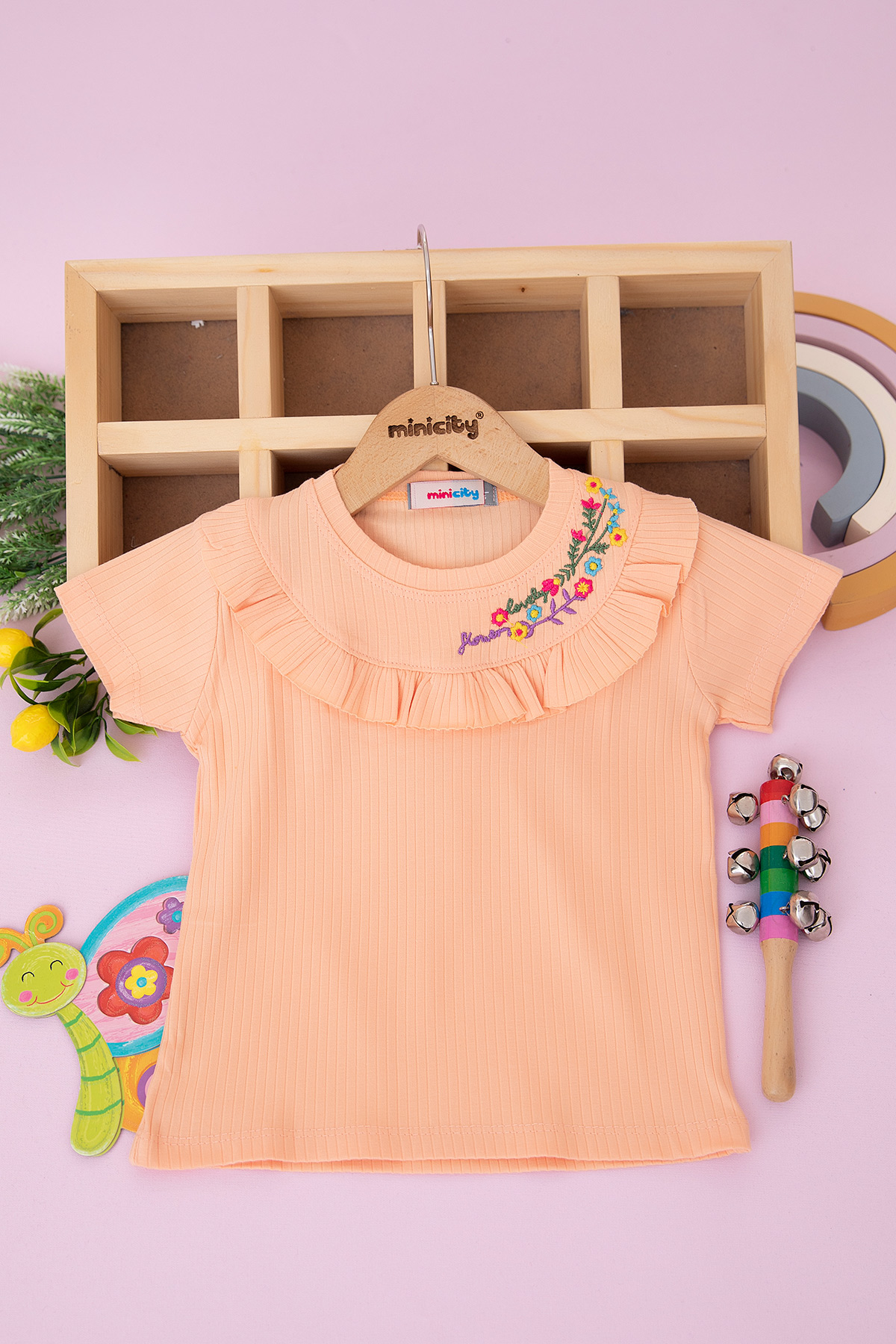 Kız Çocuk Yakası Çiçekli Body - 180325 (3-12 Yaş)