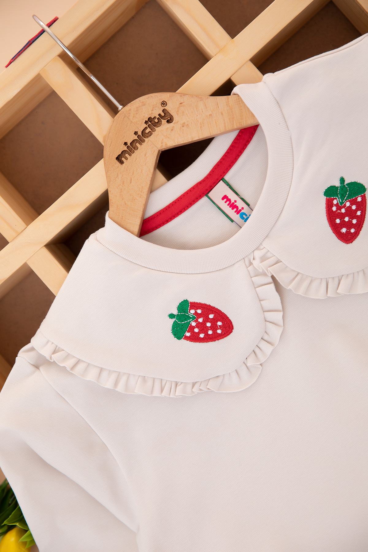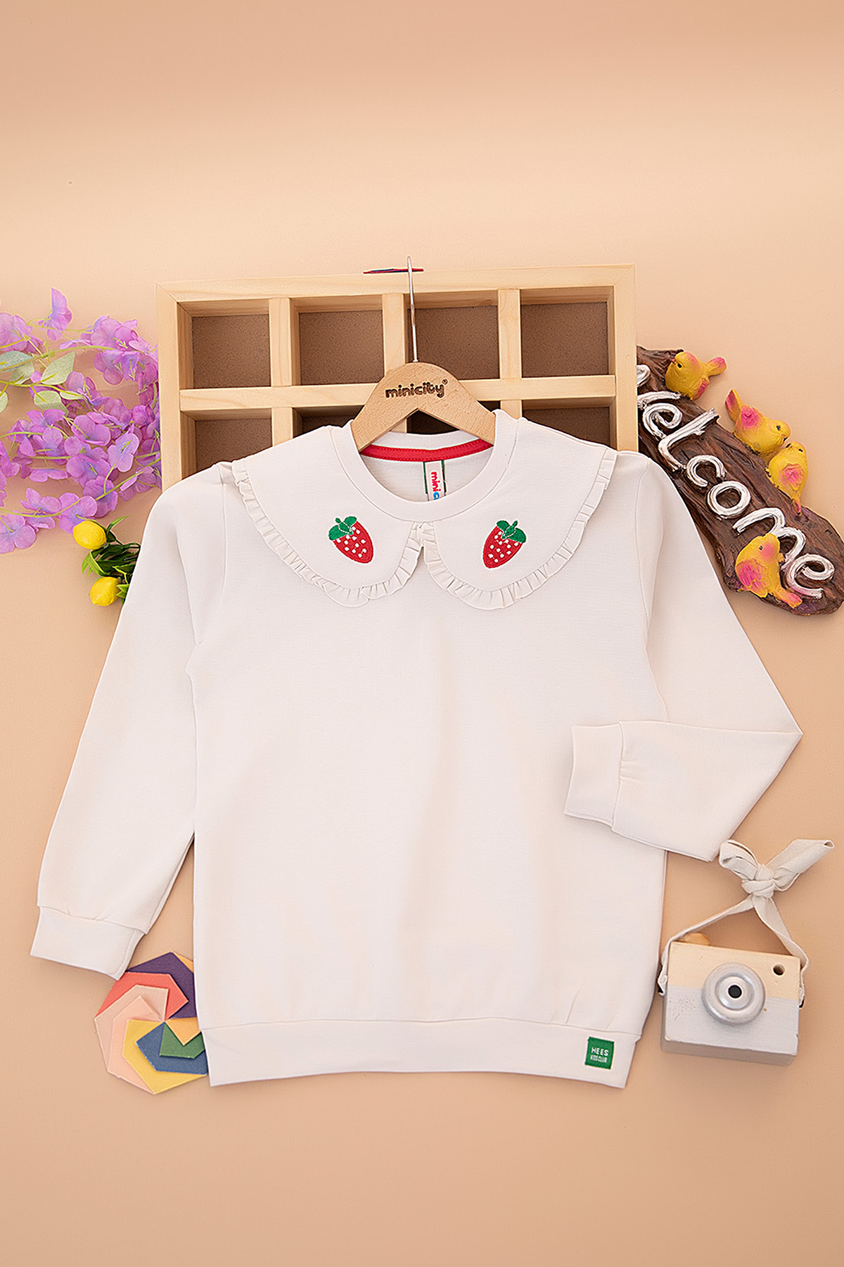 Kız Çocuk Yakası Çilek Nakışlı Sweat (2-10 Yaş)