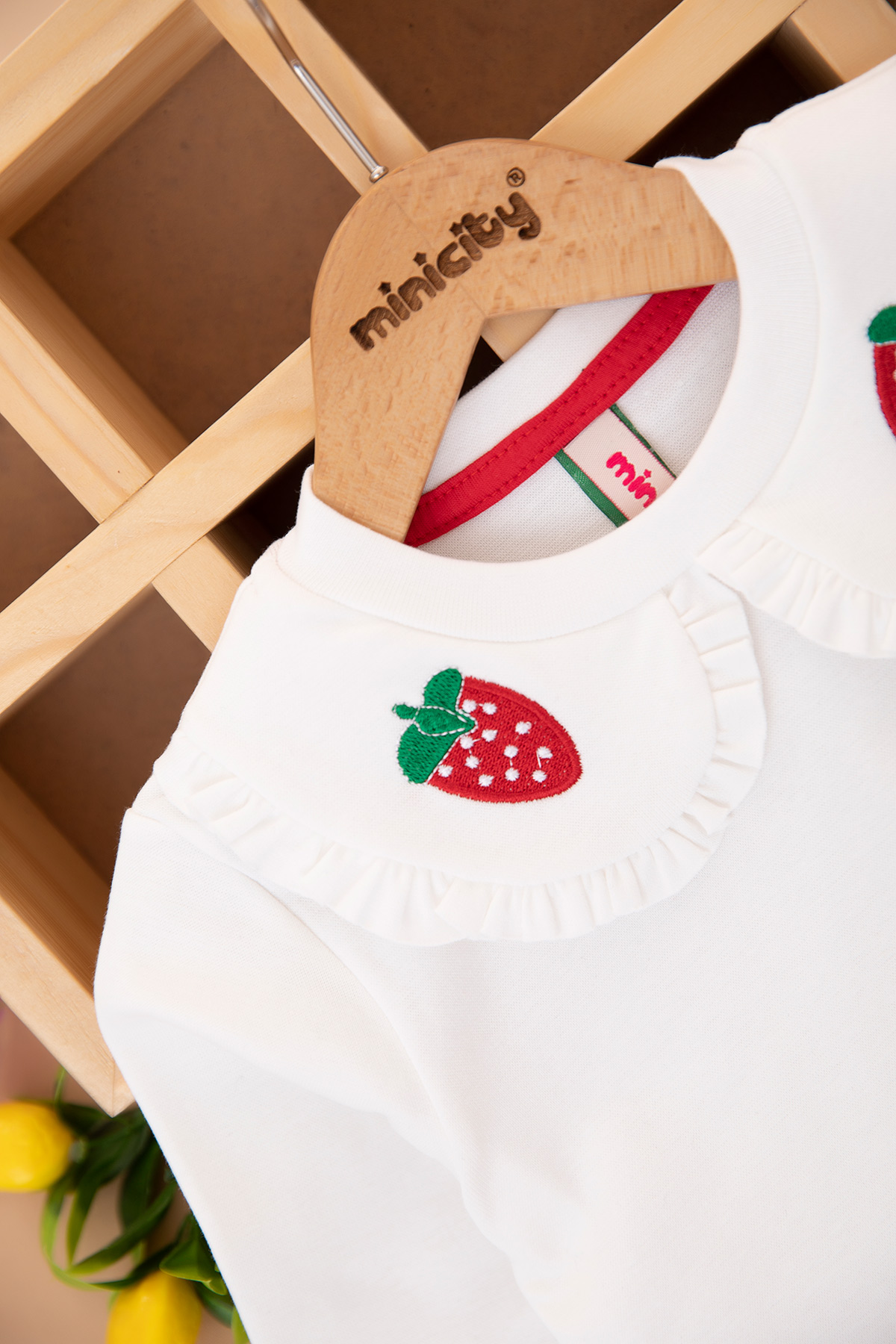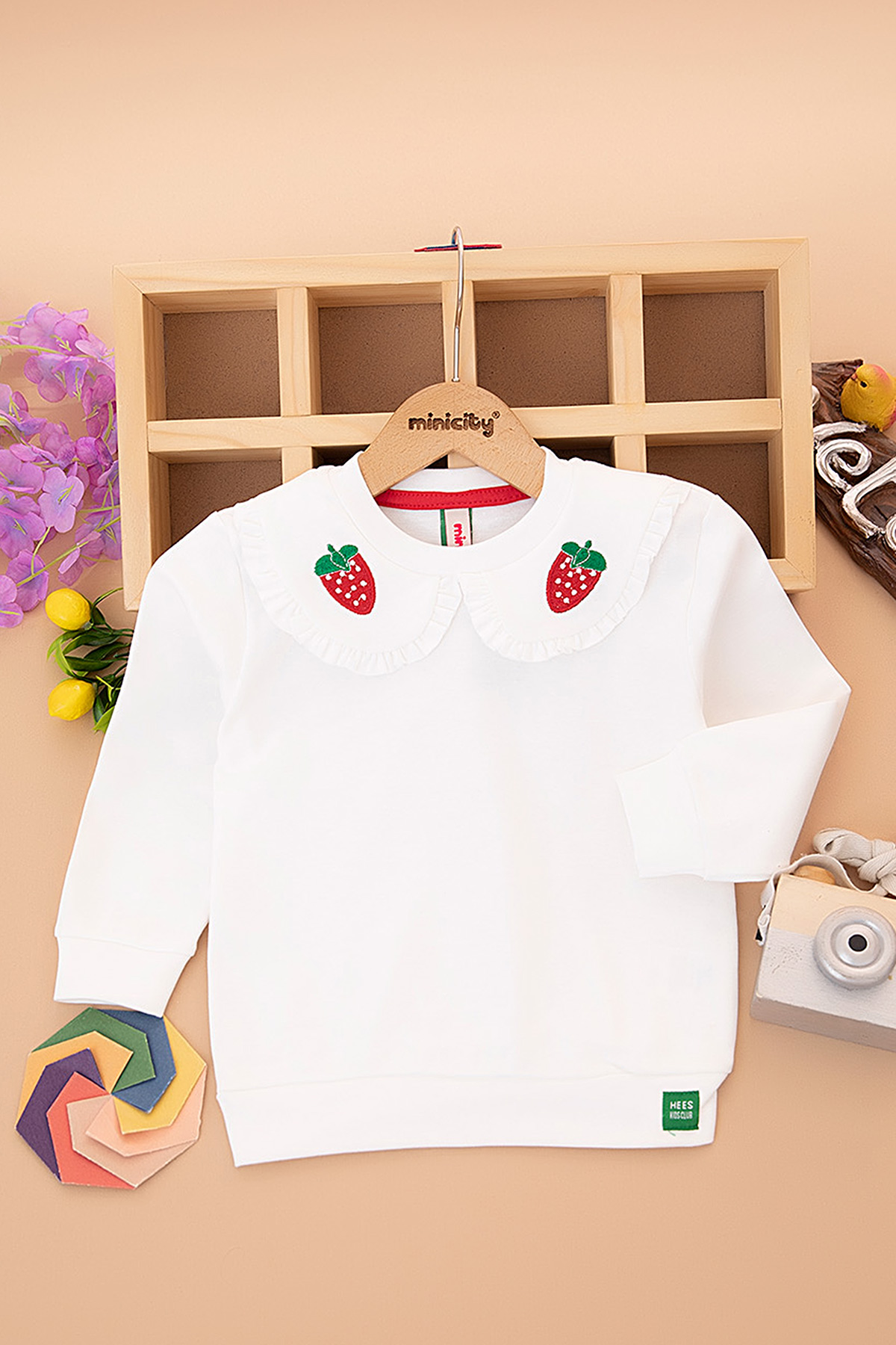 Kız Çocuk Yakası Çilek Nakışlı Sweat (2-10 Yaş)