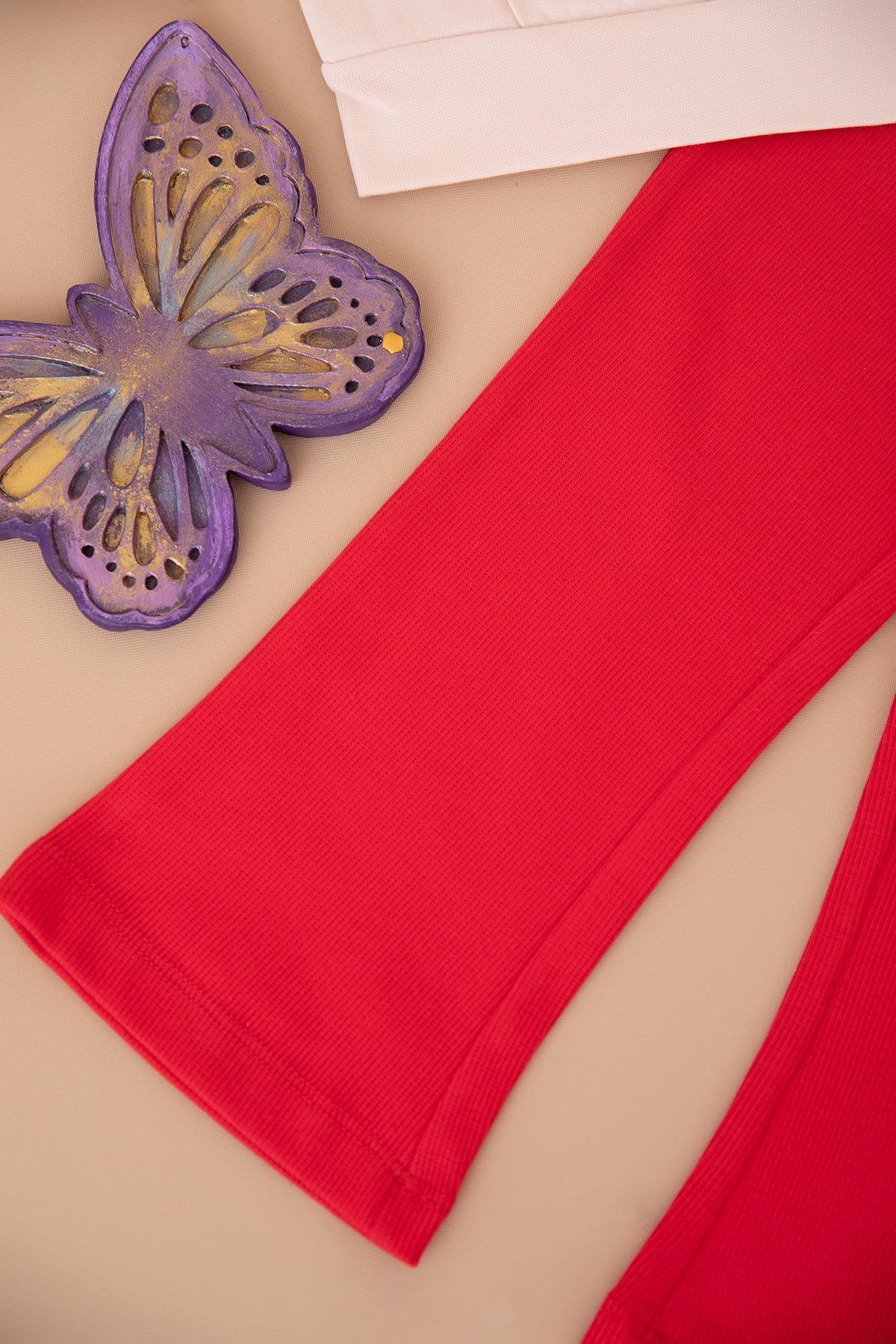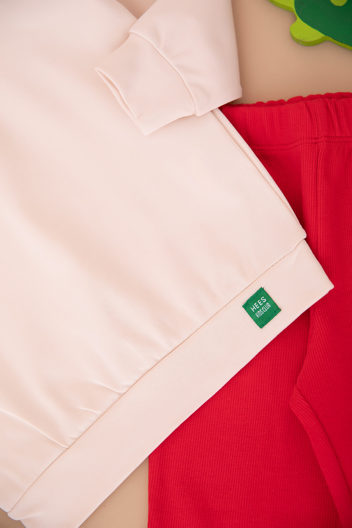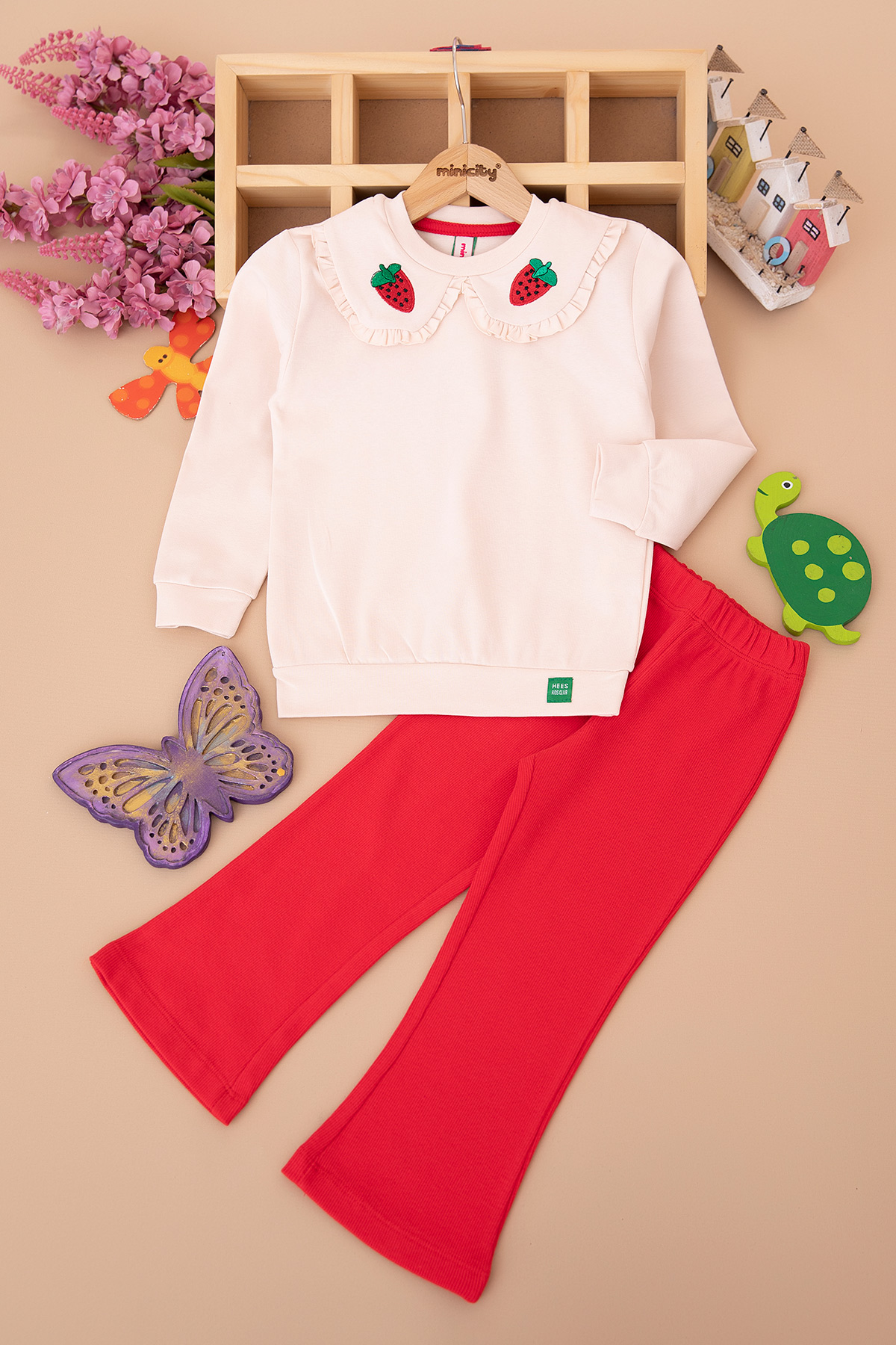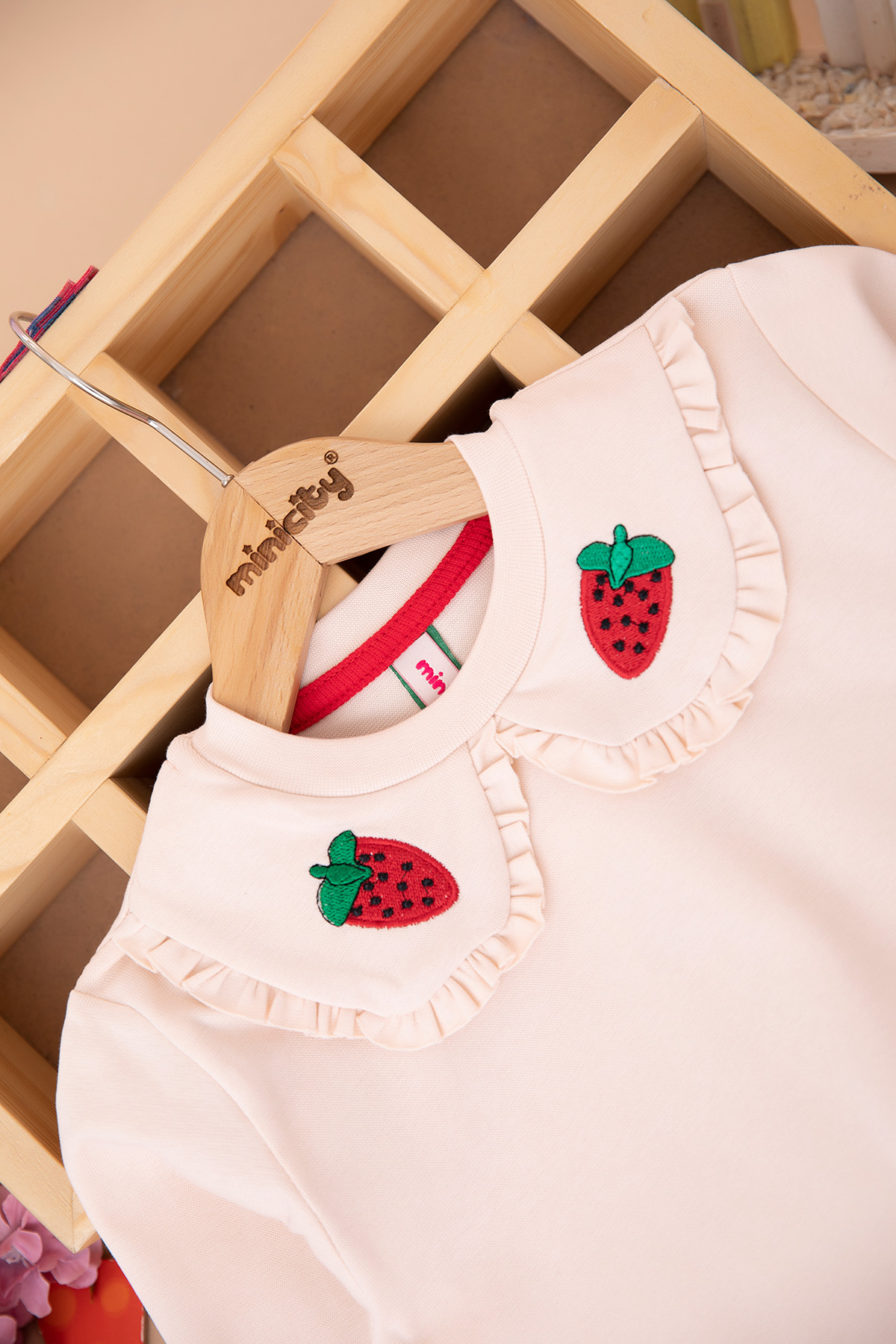 Kız Çocuk Yakası Çilek Nakışlı Taytlı Takım (2-7 Yaş)