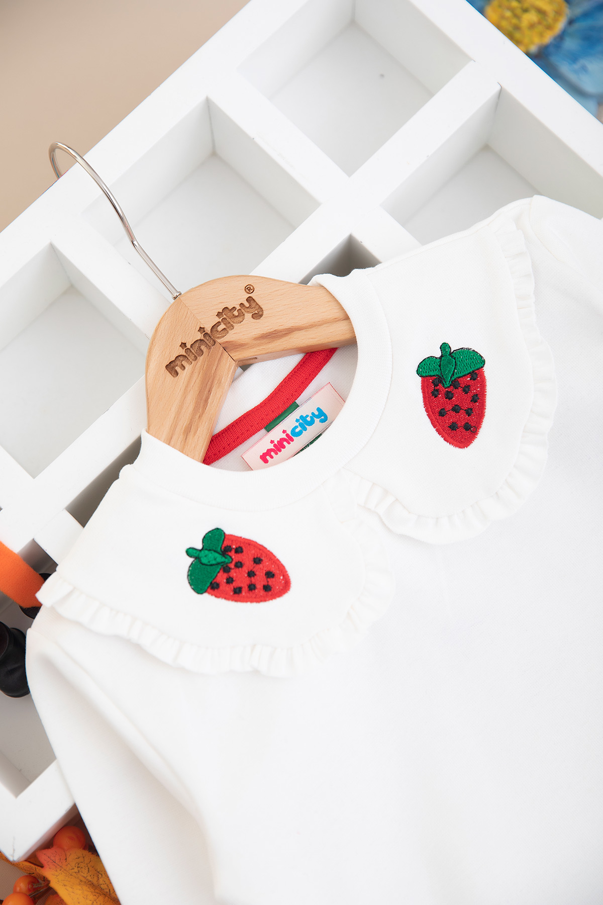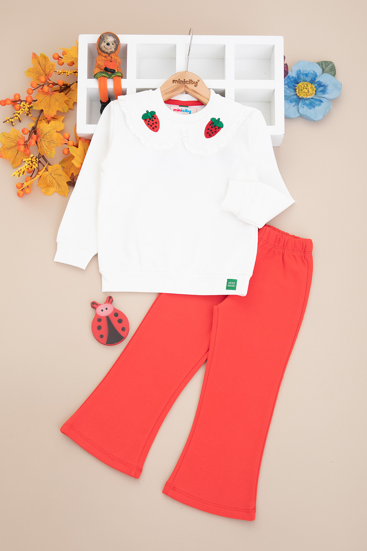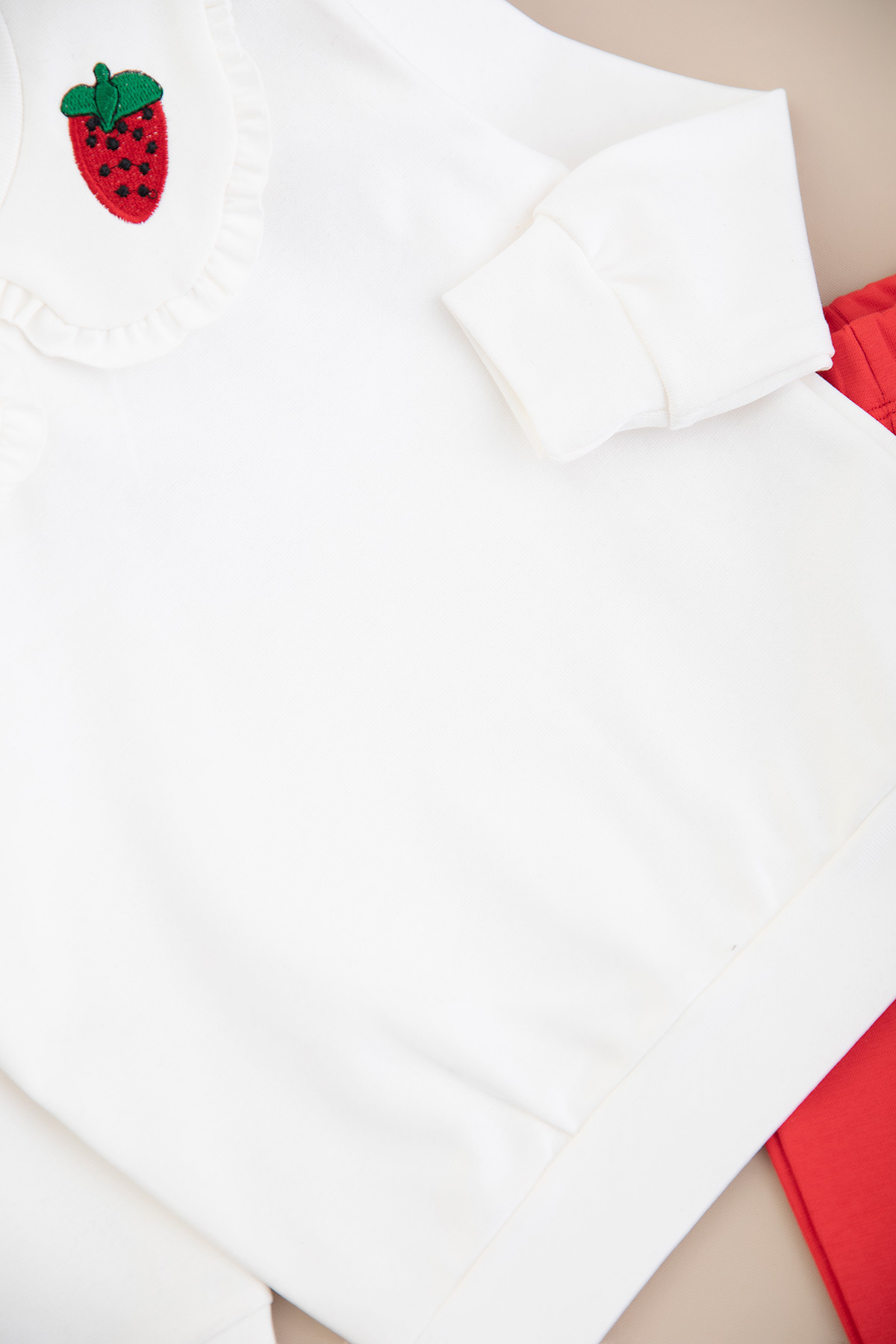 Kız Çocuk Yakası Çilek Nakışlı Taytlı Takım (2-7 Yaş)