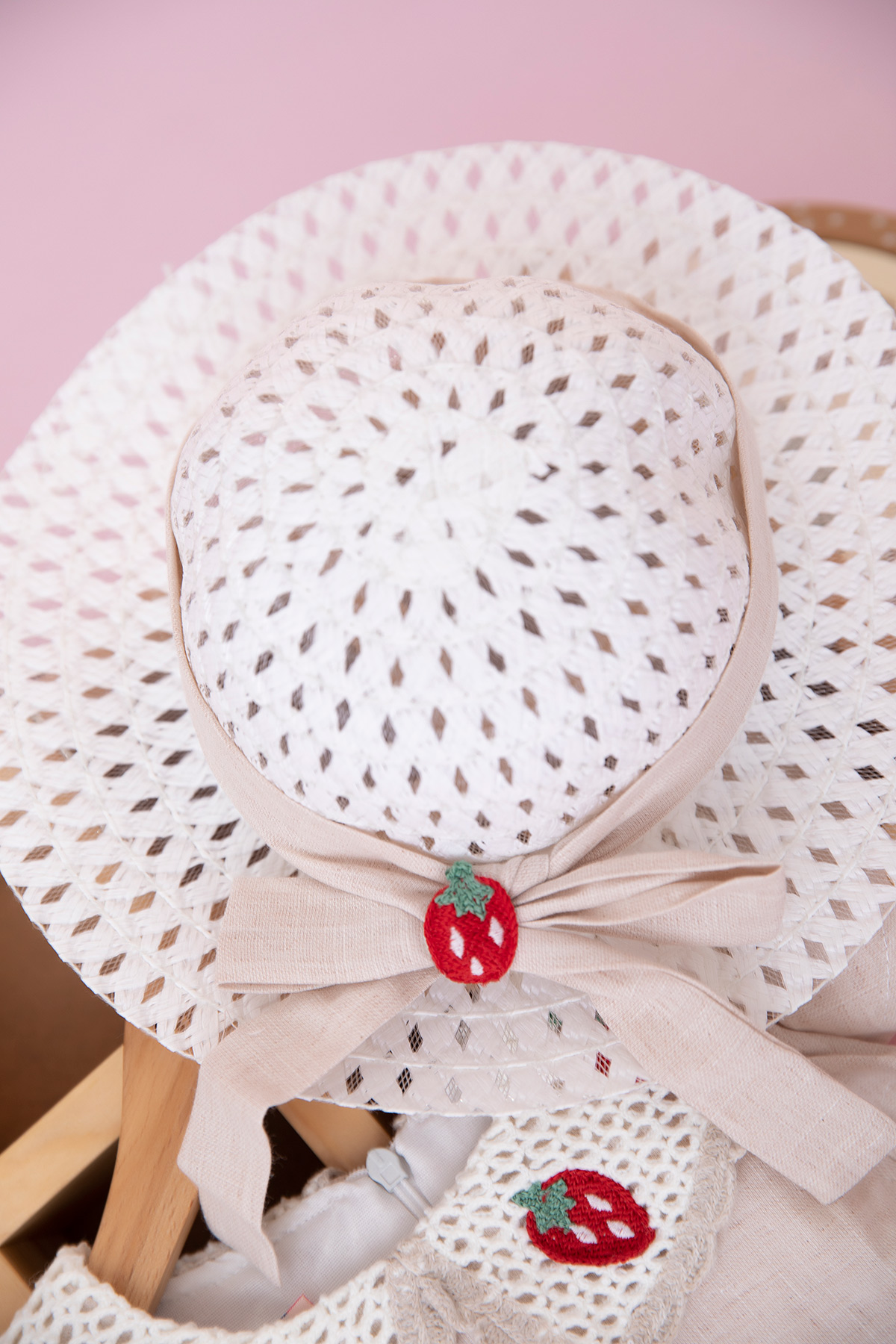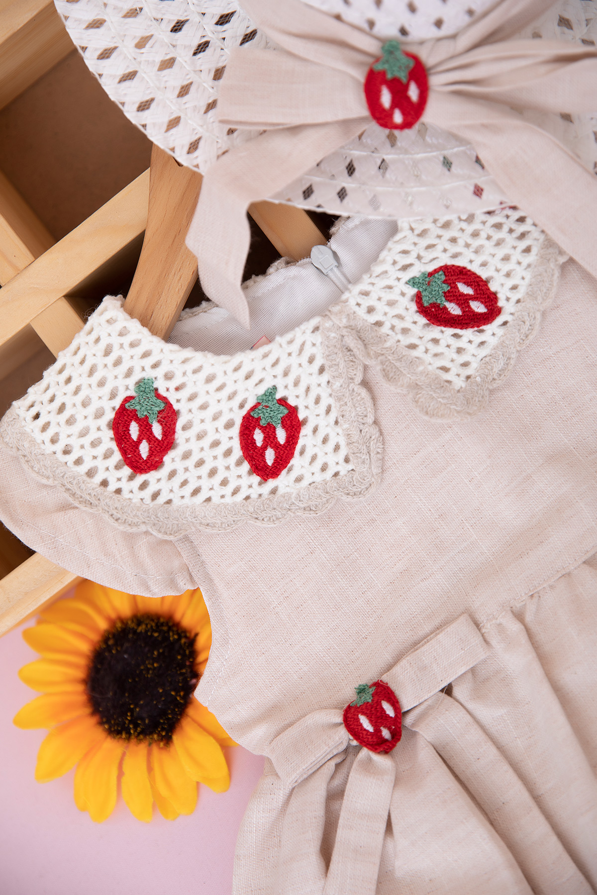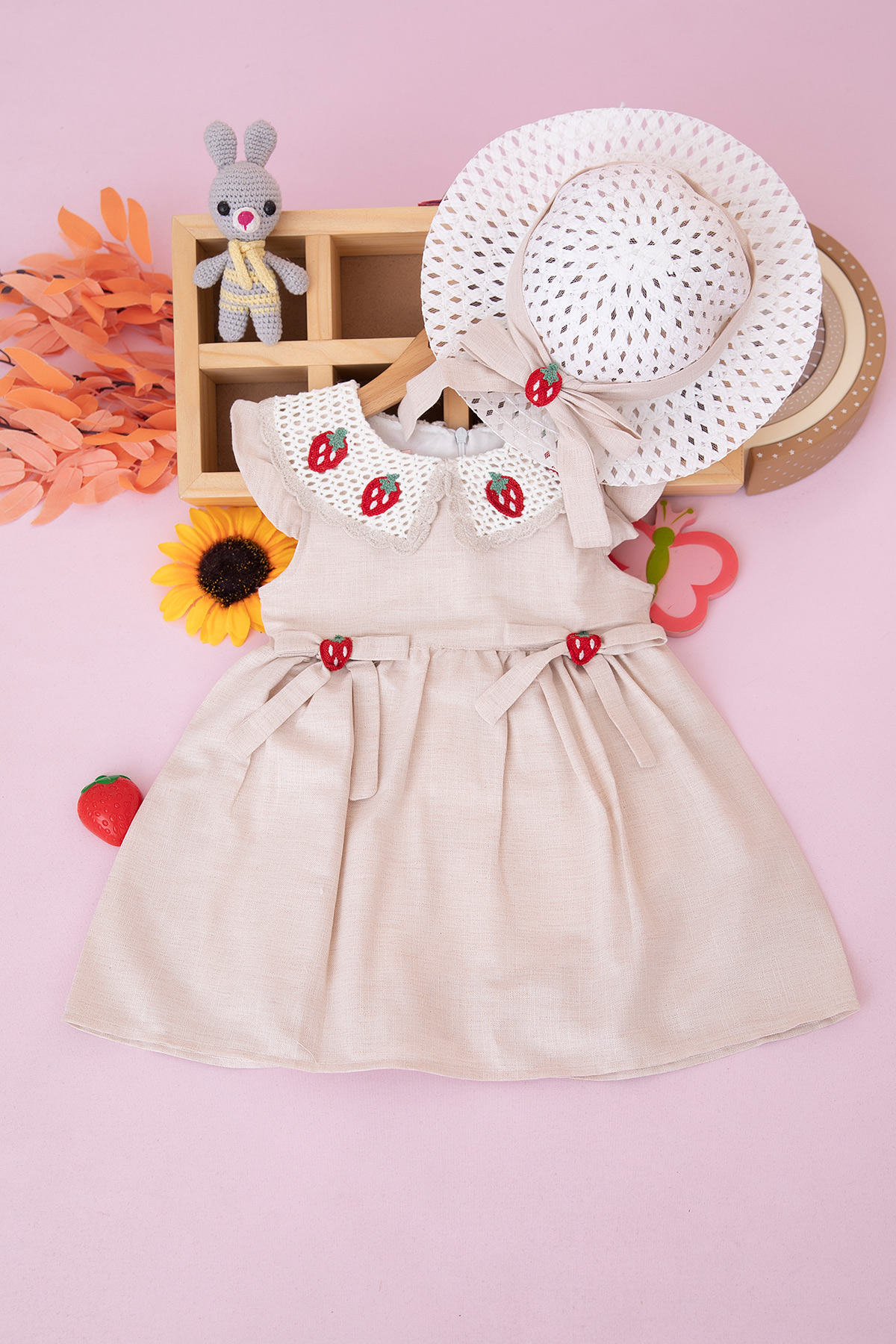 Kız Çocuk Yakası Çilekli Dantelli Elbise - 7283 (2-5 Yaş)