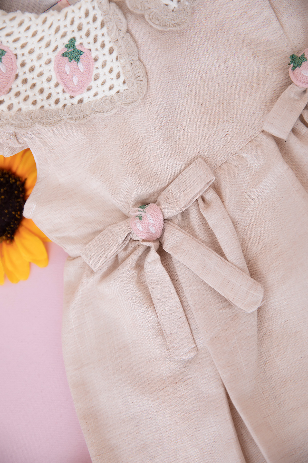 Kız Çocuk Yakası Çilekli Dantelli Elbise - 7283 (2-5 Yaş)