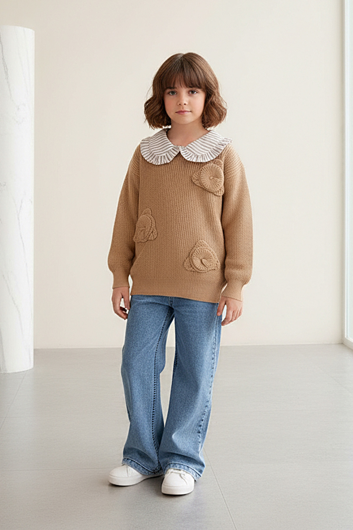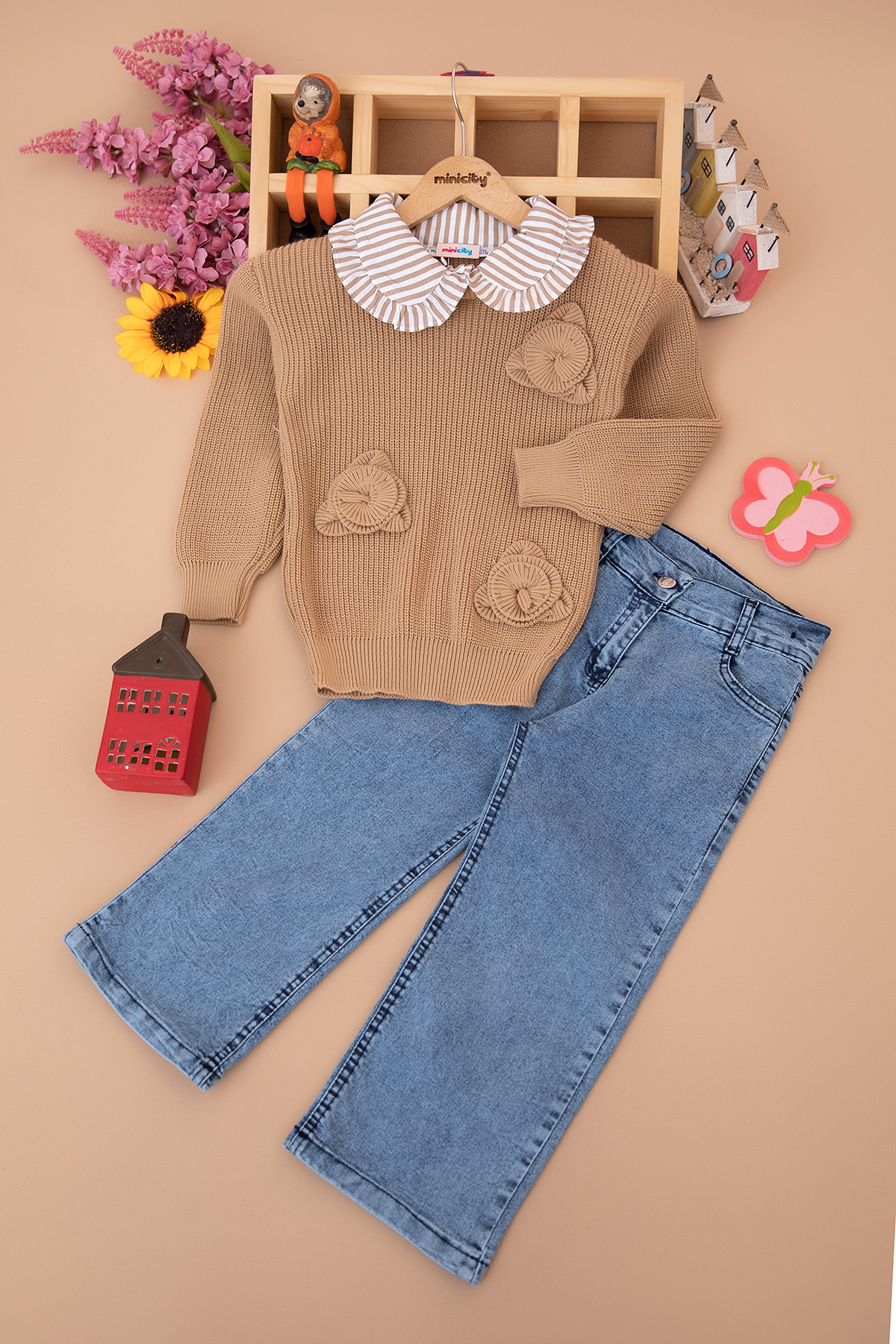 Kız Çocuk Yakası Çizgili Güllü Takım - (9-12 Yaş)