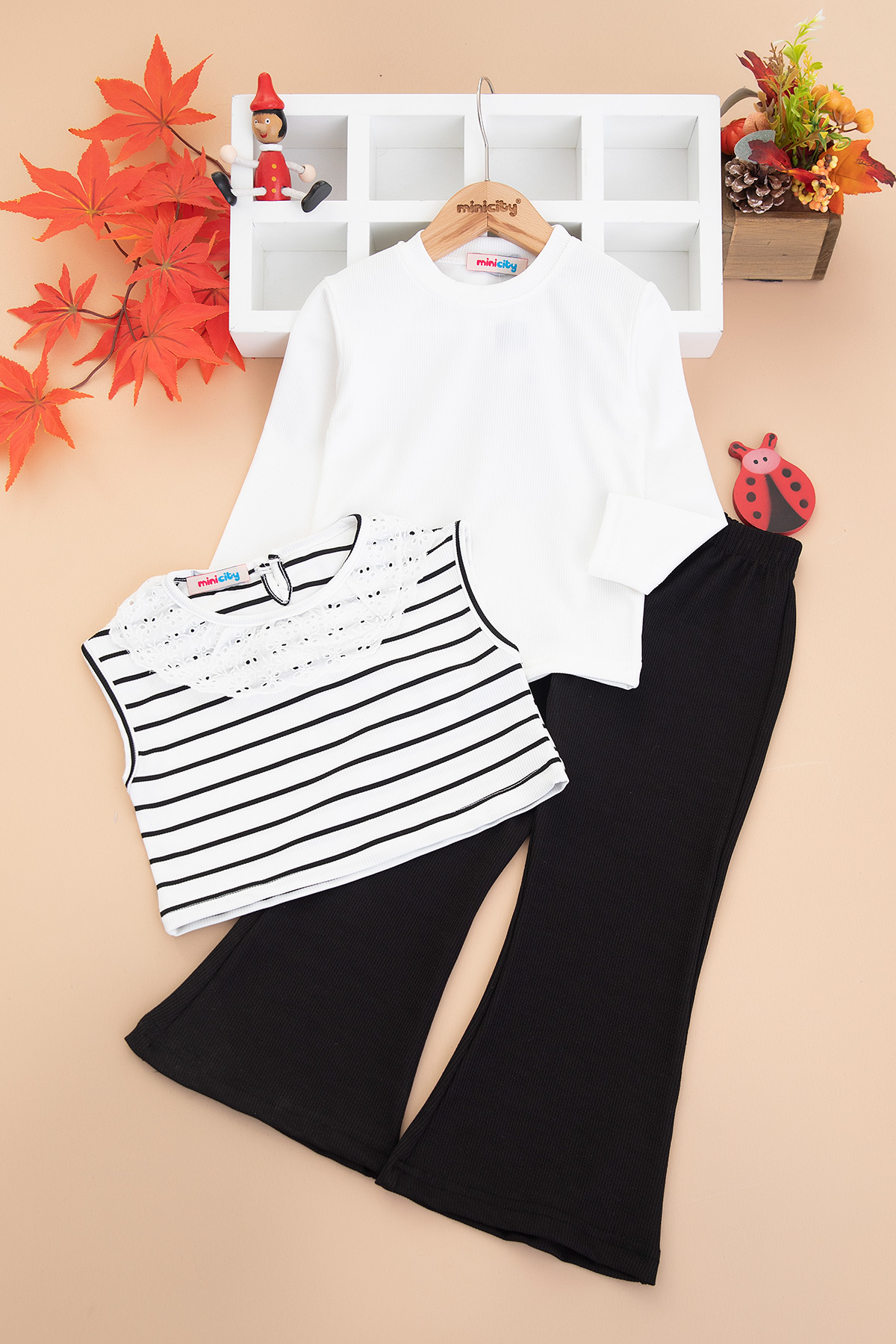 Kız Çocuk Yakası Dantelli Üçlü Takım - 5151 (3-10 Yaş)