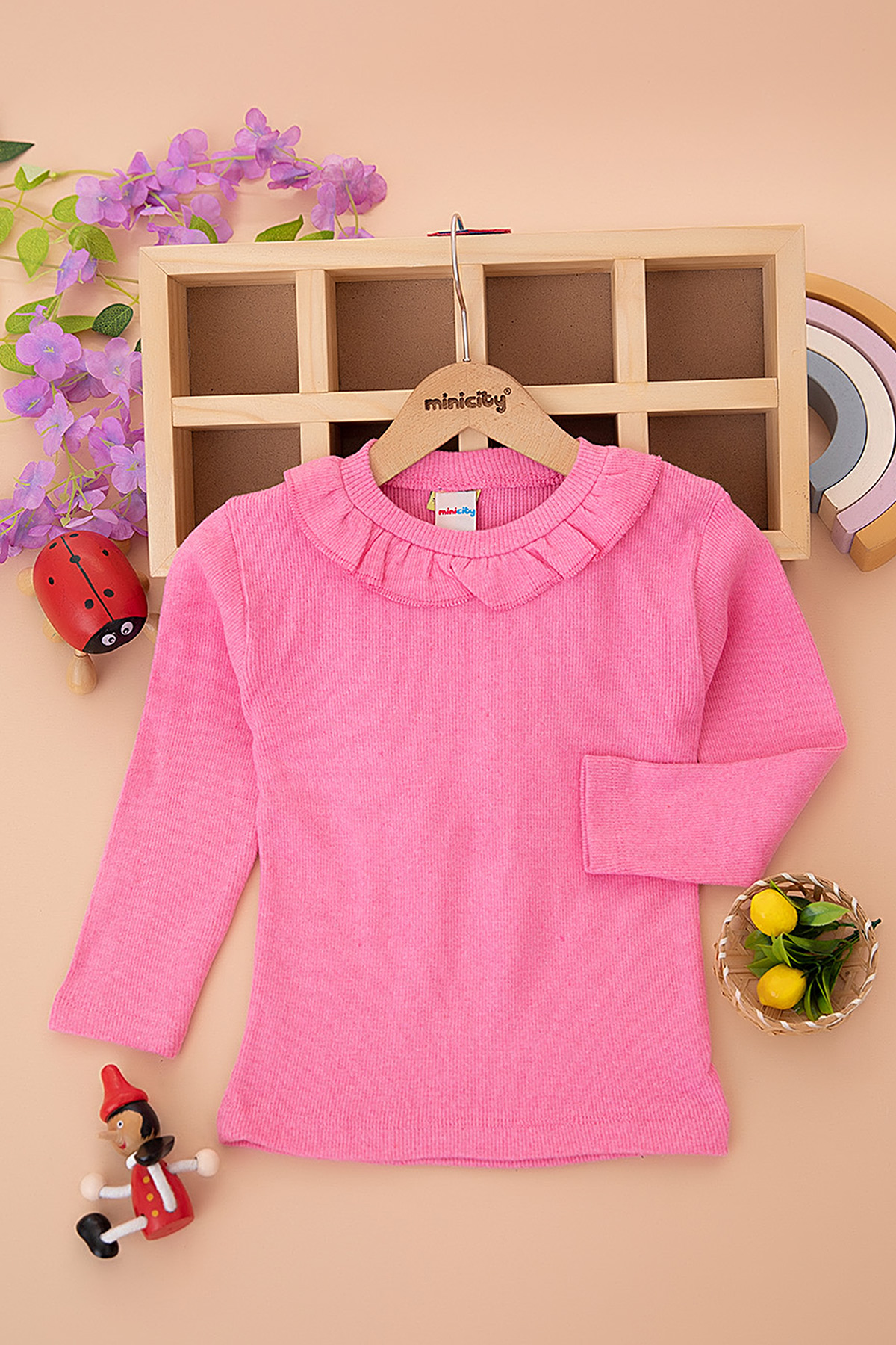 Kız Çocuk Yakası Fırfırlı Şardonlu Kaşkorse Body (5-8 Yaş)
