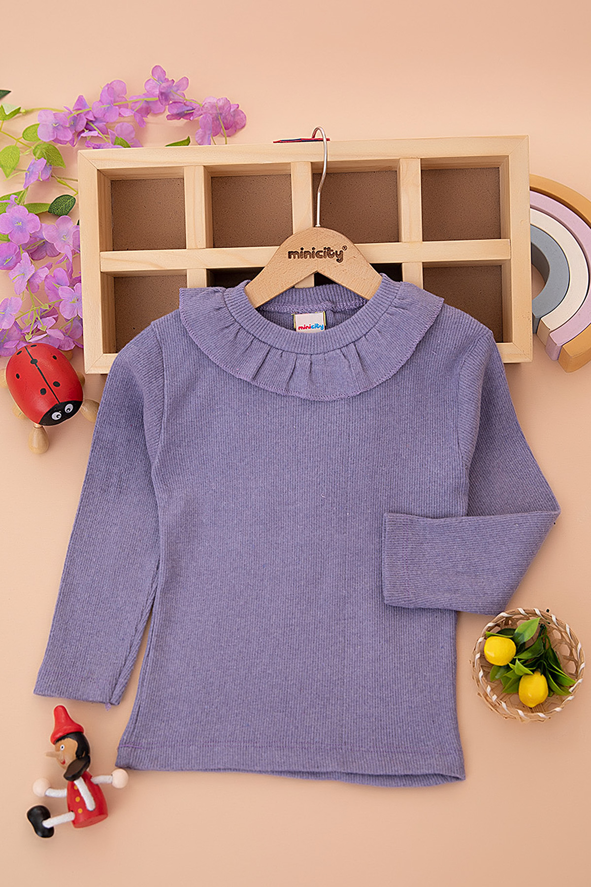 Kız Çocuk Yakası Fırfırlı Şardonlu Kaşkorse Body (9-12 Yaş)