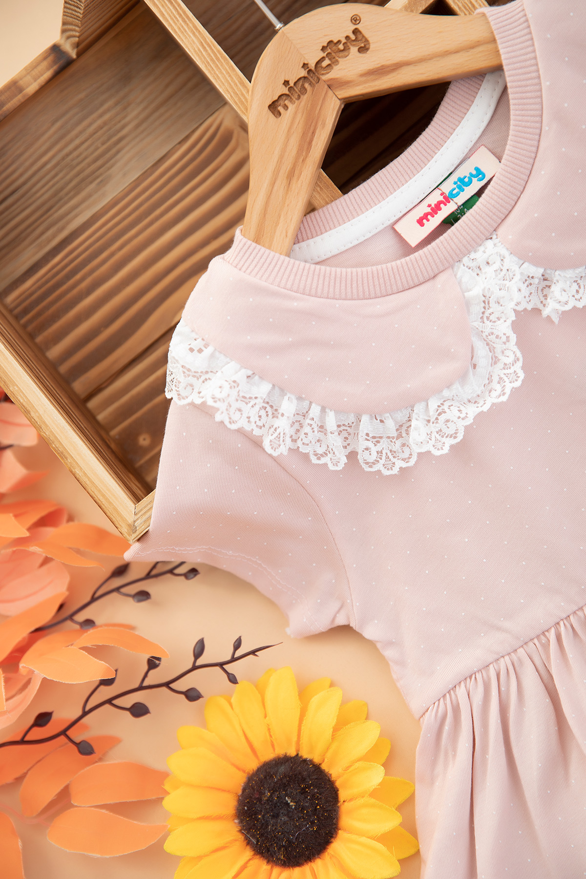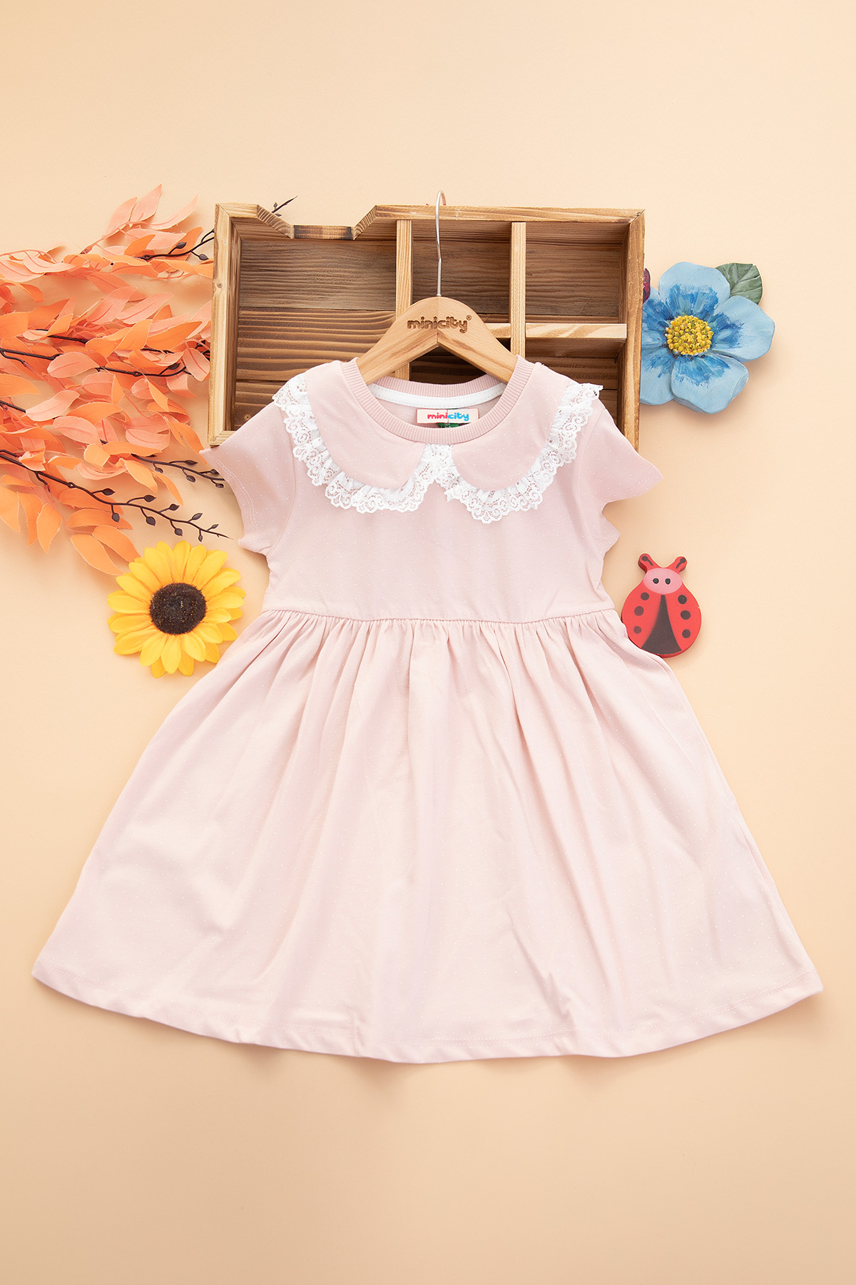 Kız Çocuk Yakası Fistolu Baskılı Penye Elbise (3-8 Yaş)