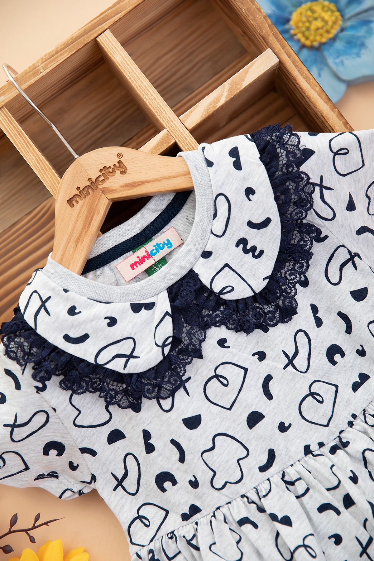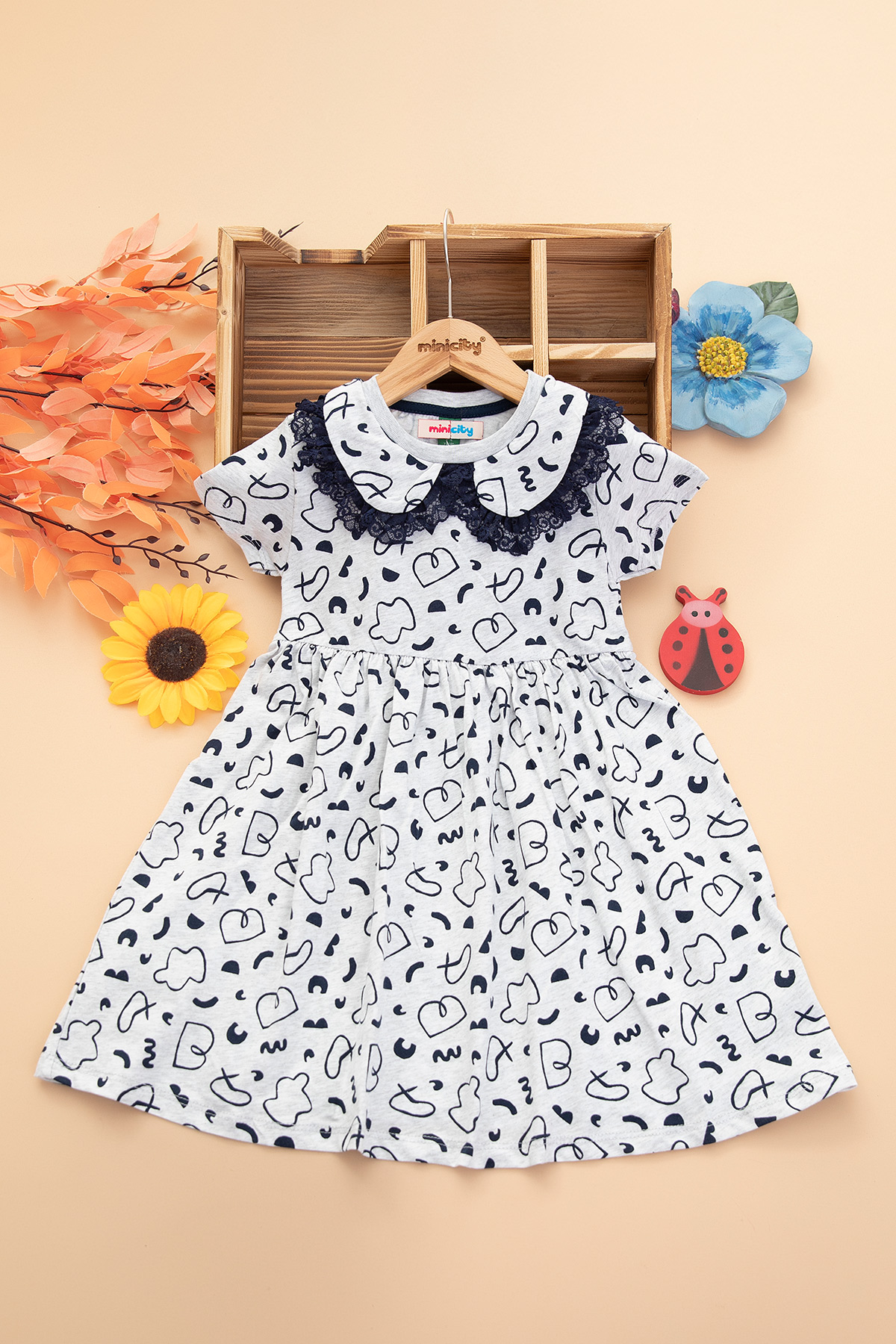 Kız Çocuk Yakası Fistolu Baskılı Penye Elbise (3-8 Yaş)