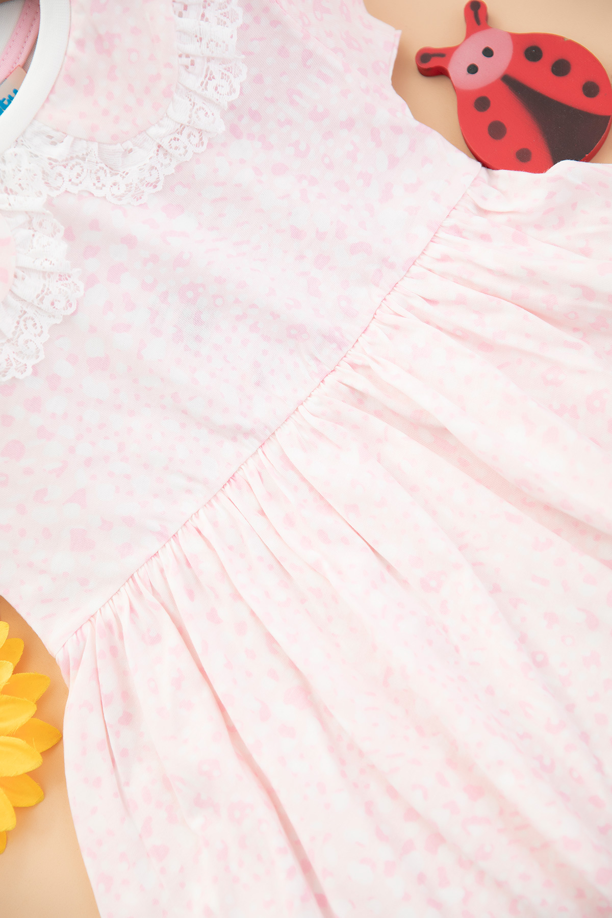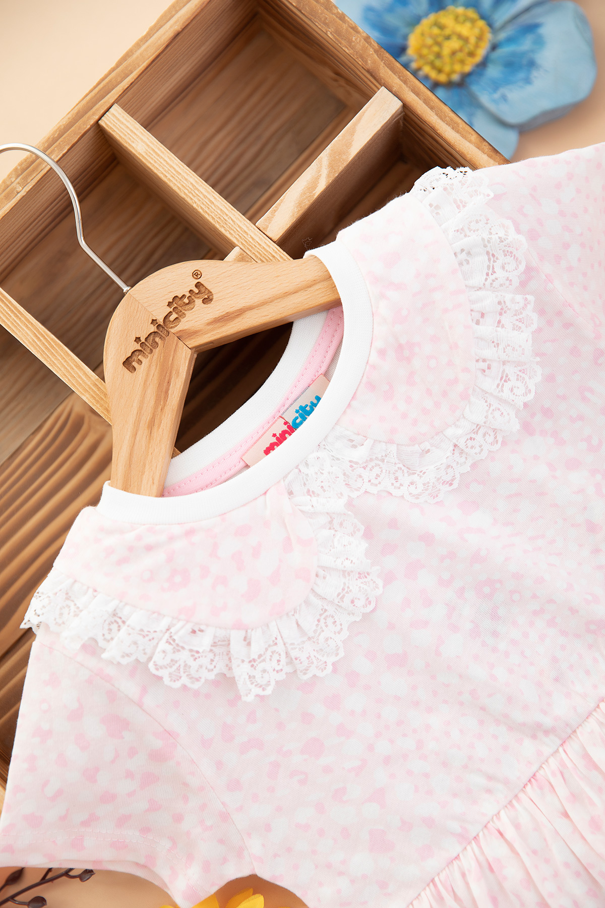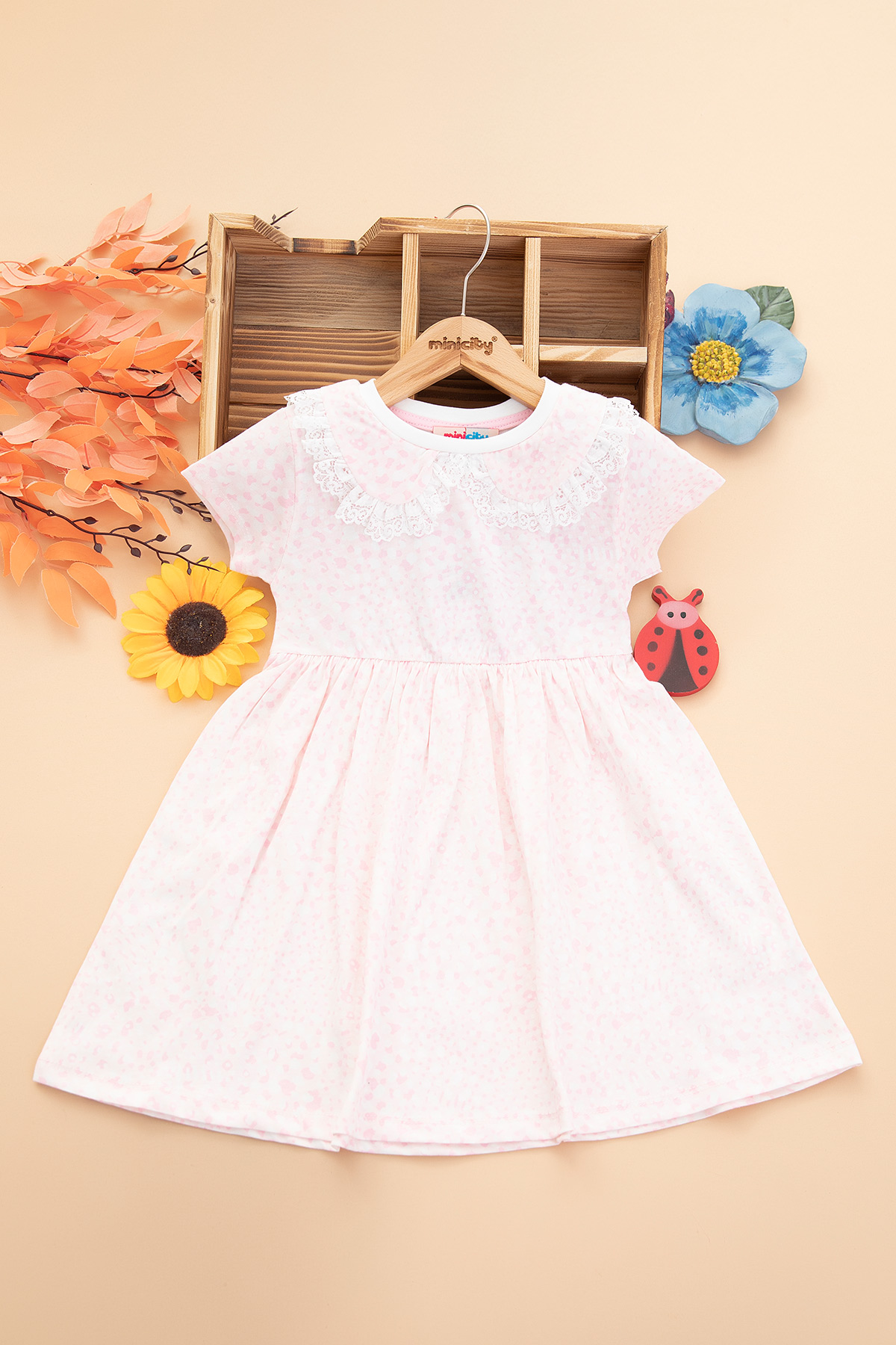 Kız Çocuk Yakası Fistolu Baskılı Penye Elbise (3-8 Yaş)