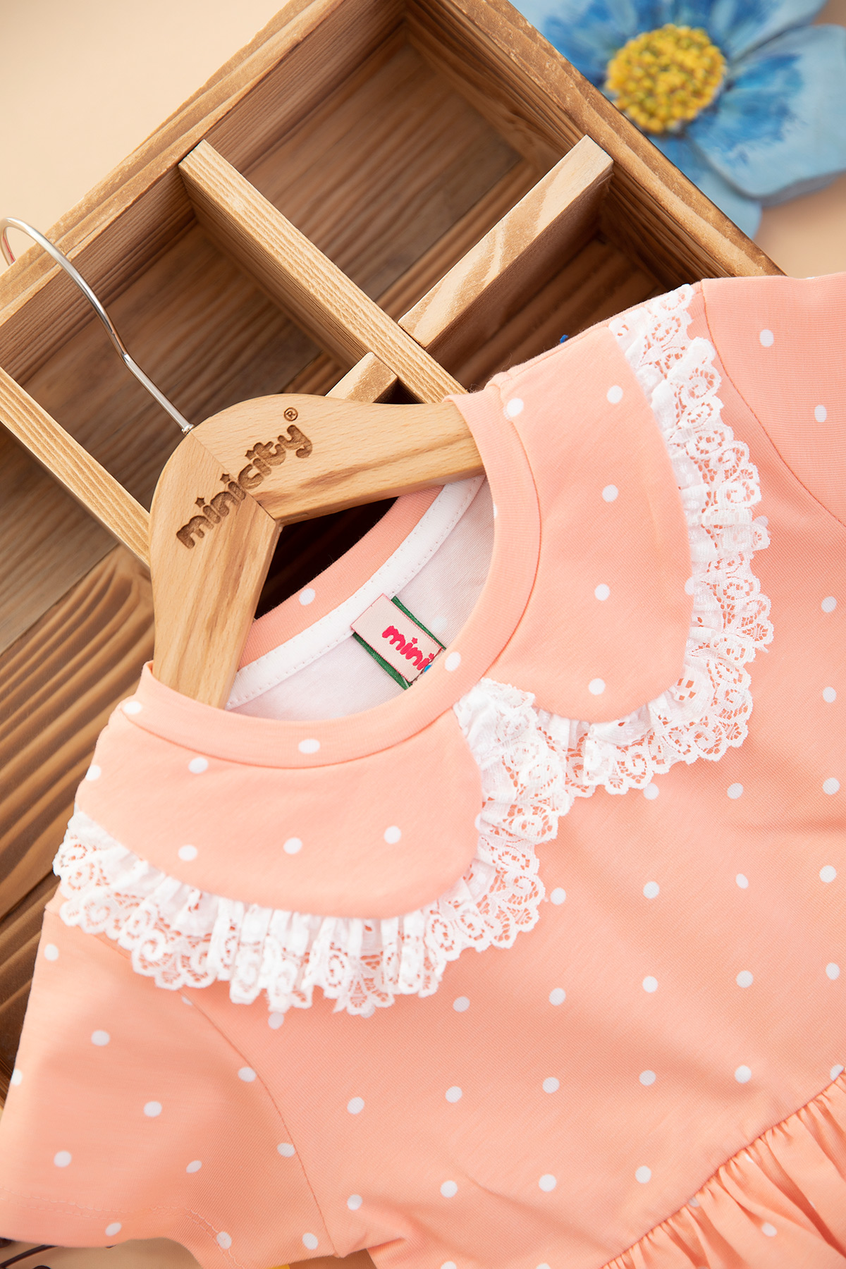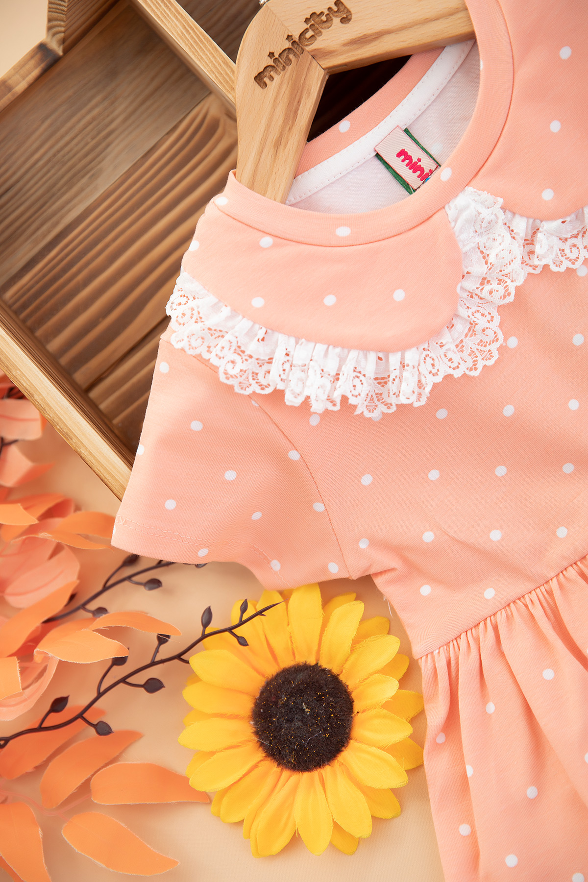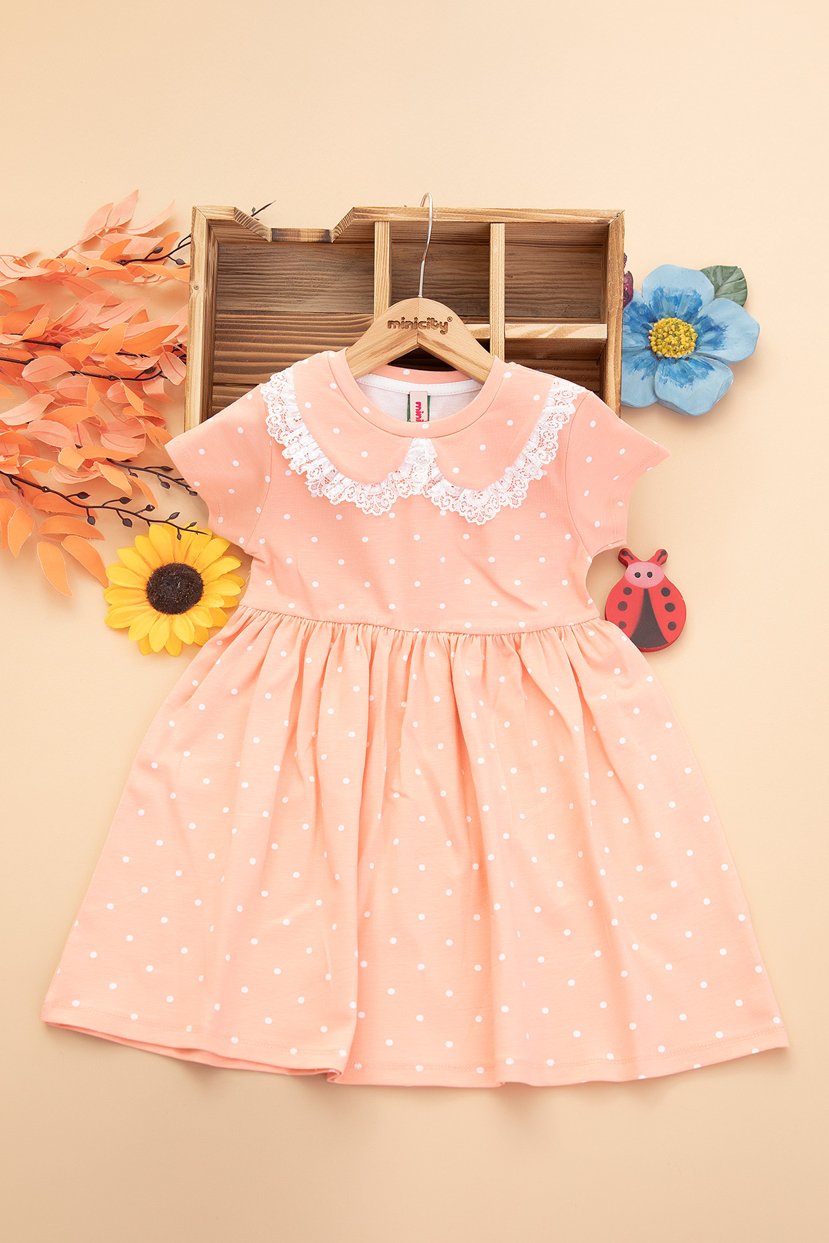 Kız Çocuk Yakası Fistolu Baskılı Penye Elbise (3-8 Yaş)