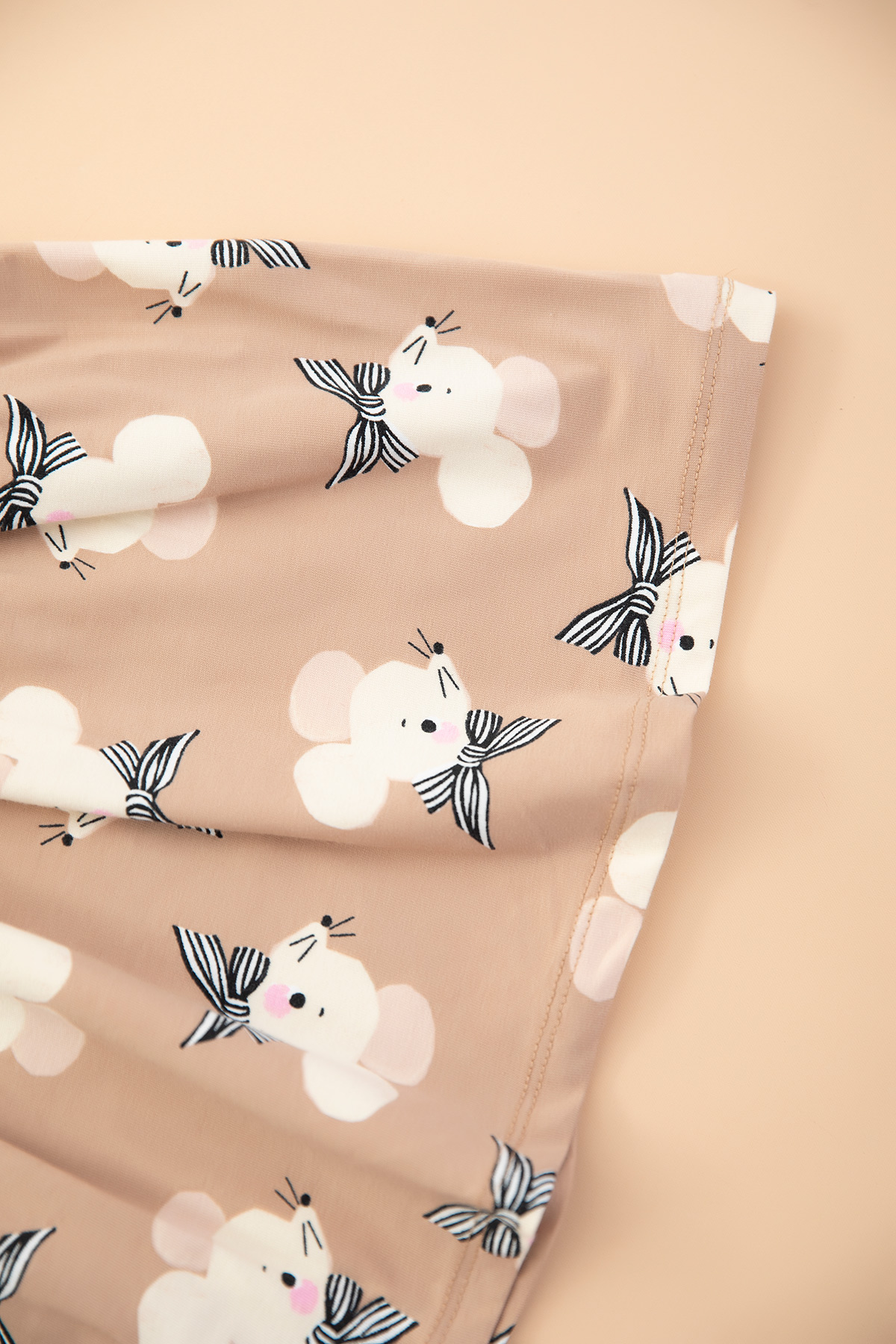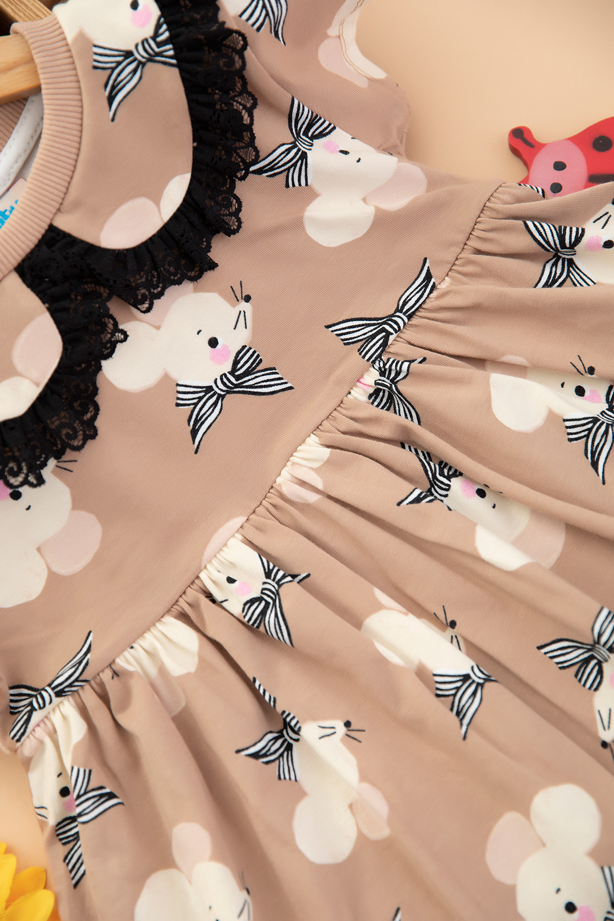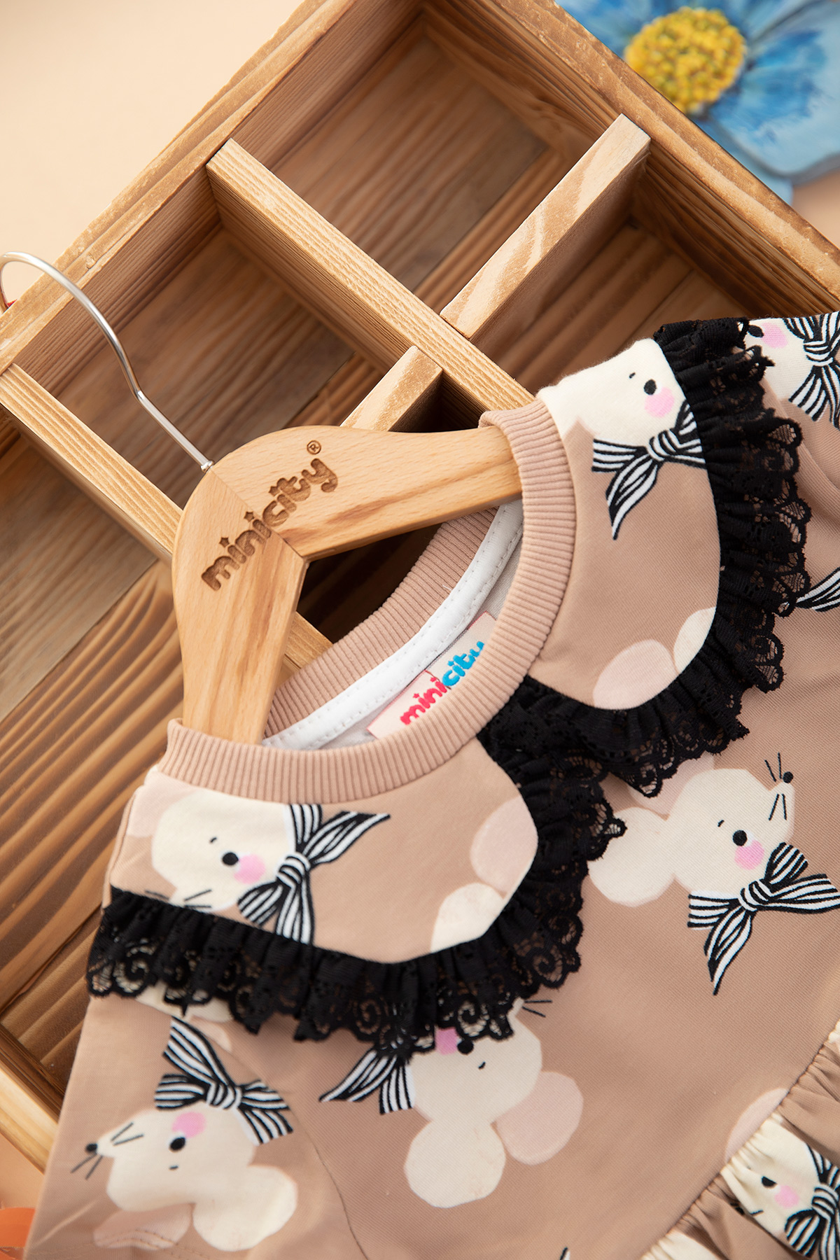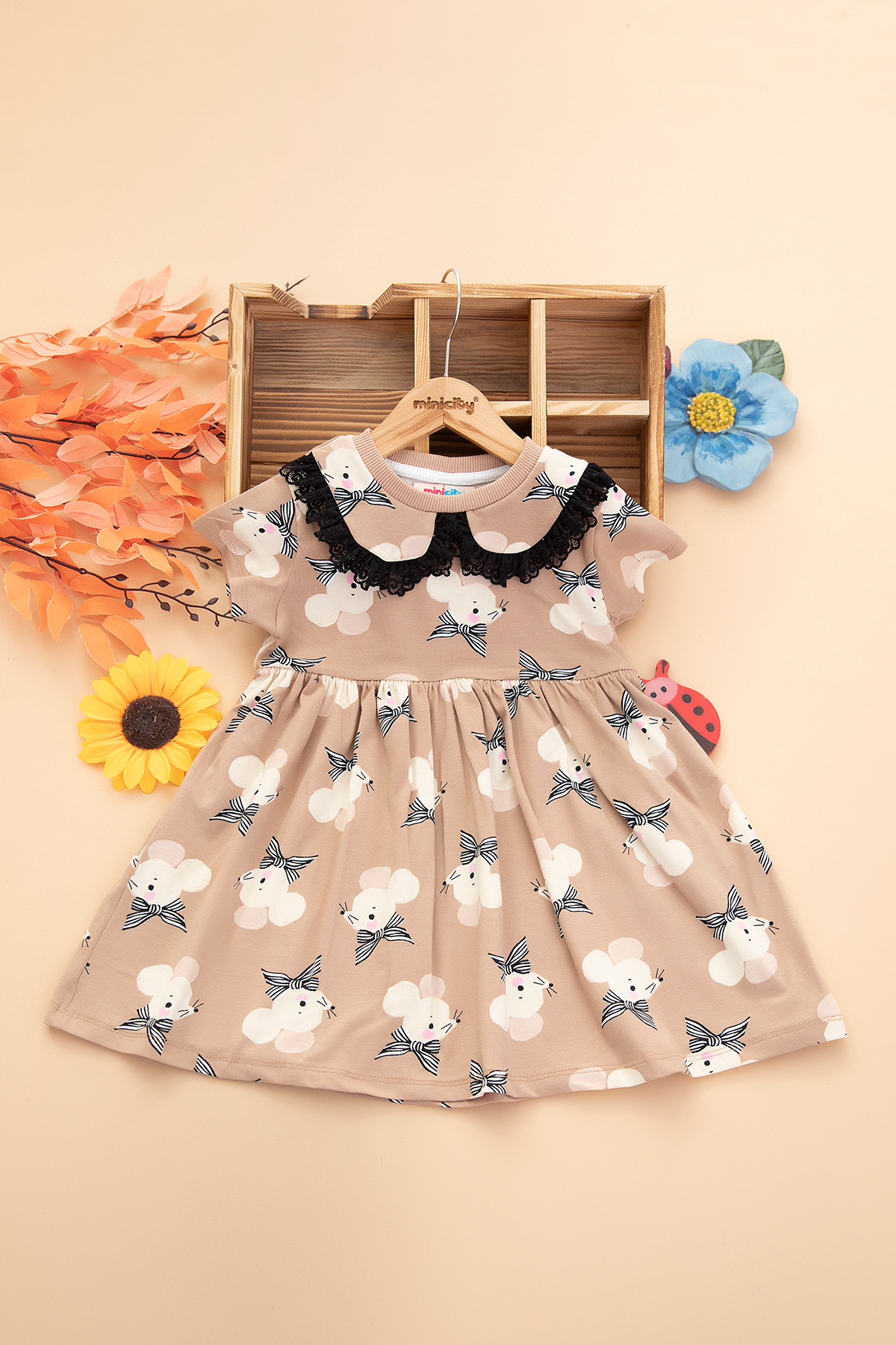 Kız Çocuk Yakası Fistolu Baskılı Penye Elbise (3-8 Yaş)