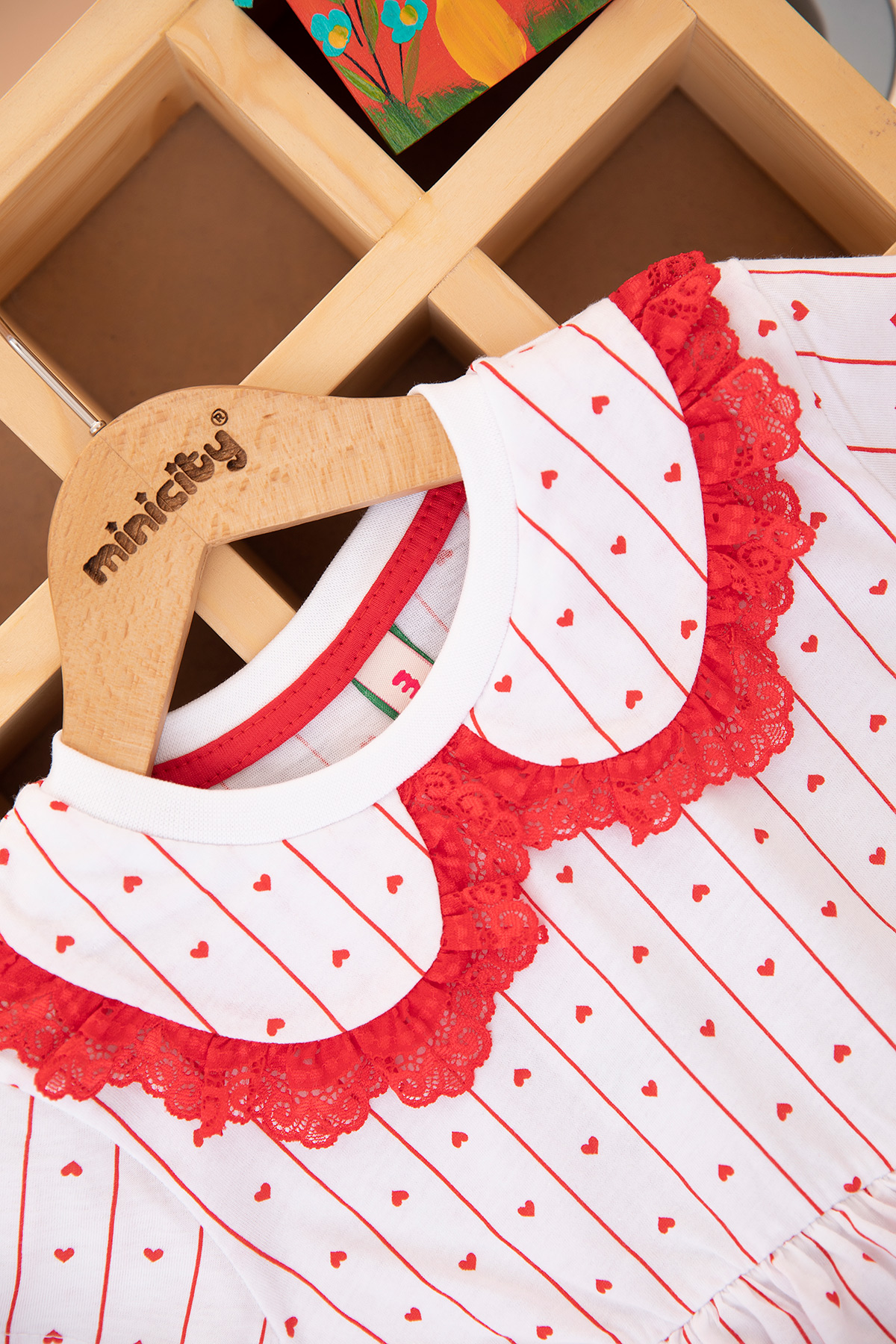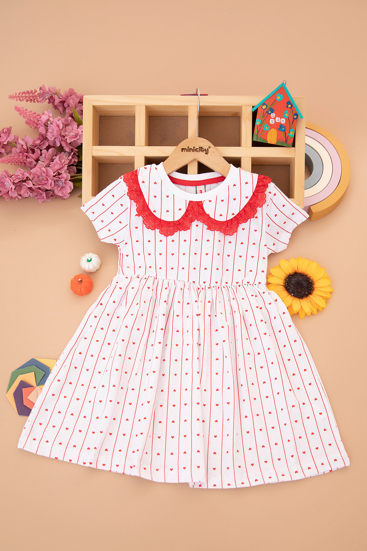 Kız Çocuk Yakası Fistolu Baskılı Penye Elbise (3-8 Yaş)
