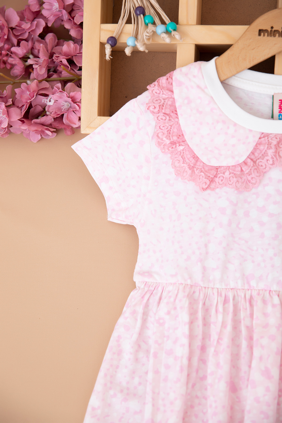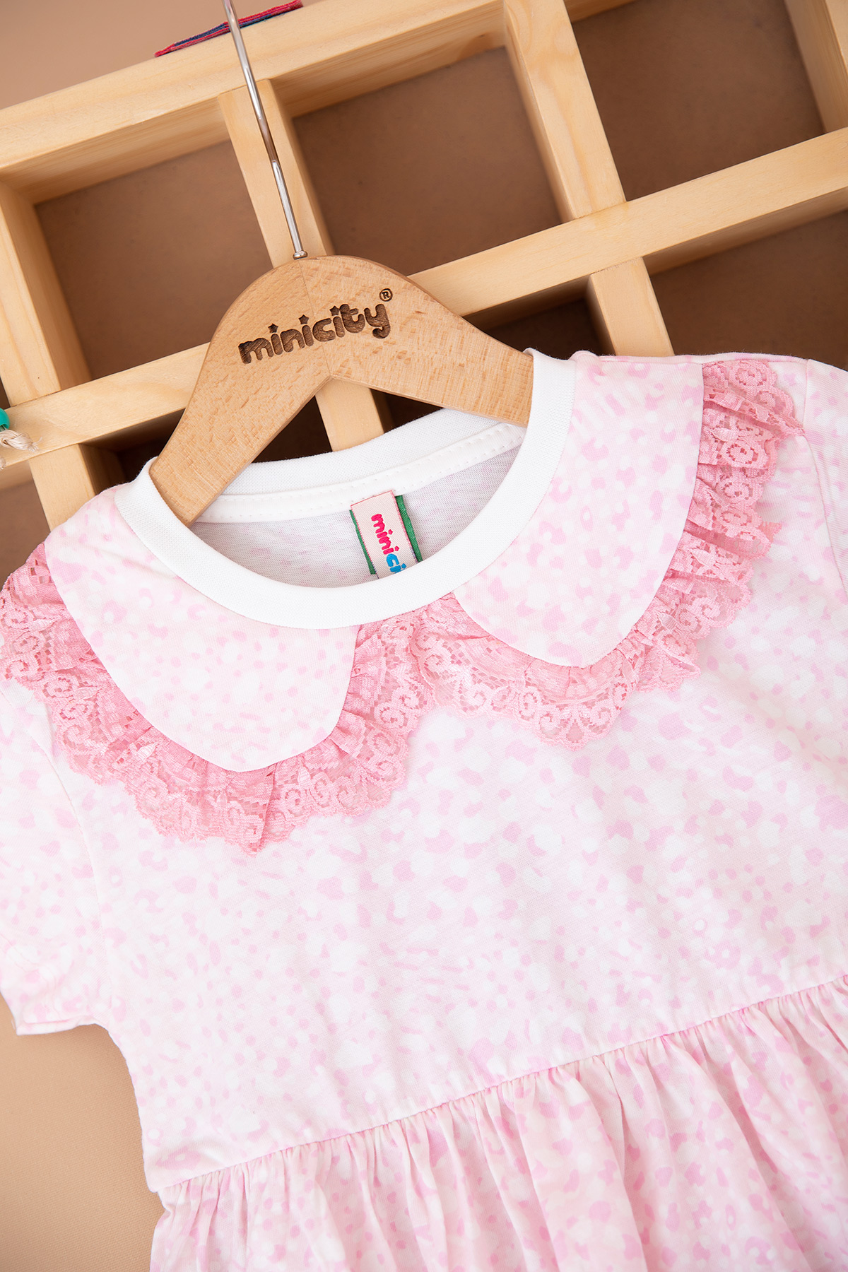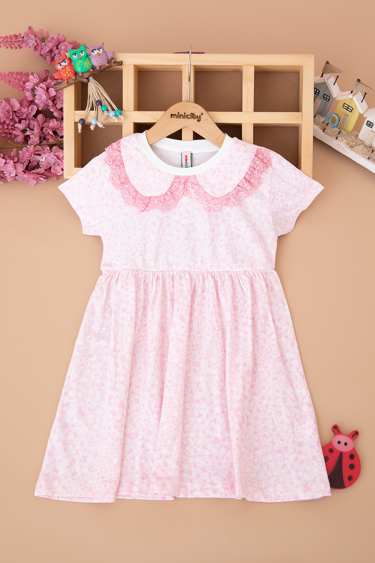 Kız Çocuk Yakası Fistolu Baskılı Penye Elbise (3-8 Yaş)
