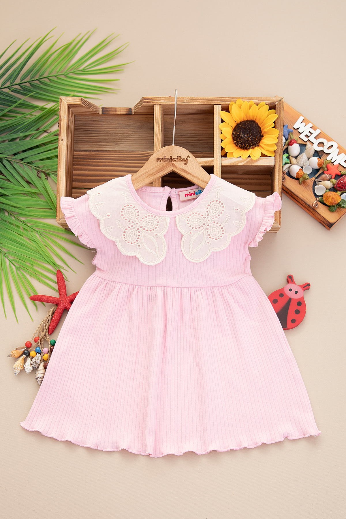 Kız Çocuk Yakası Fistolu Fitilli Elbise - 24002 (1-3 Yaş)