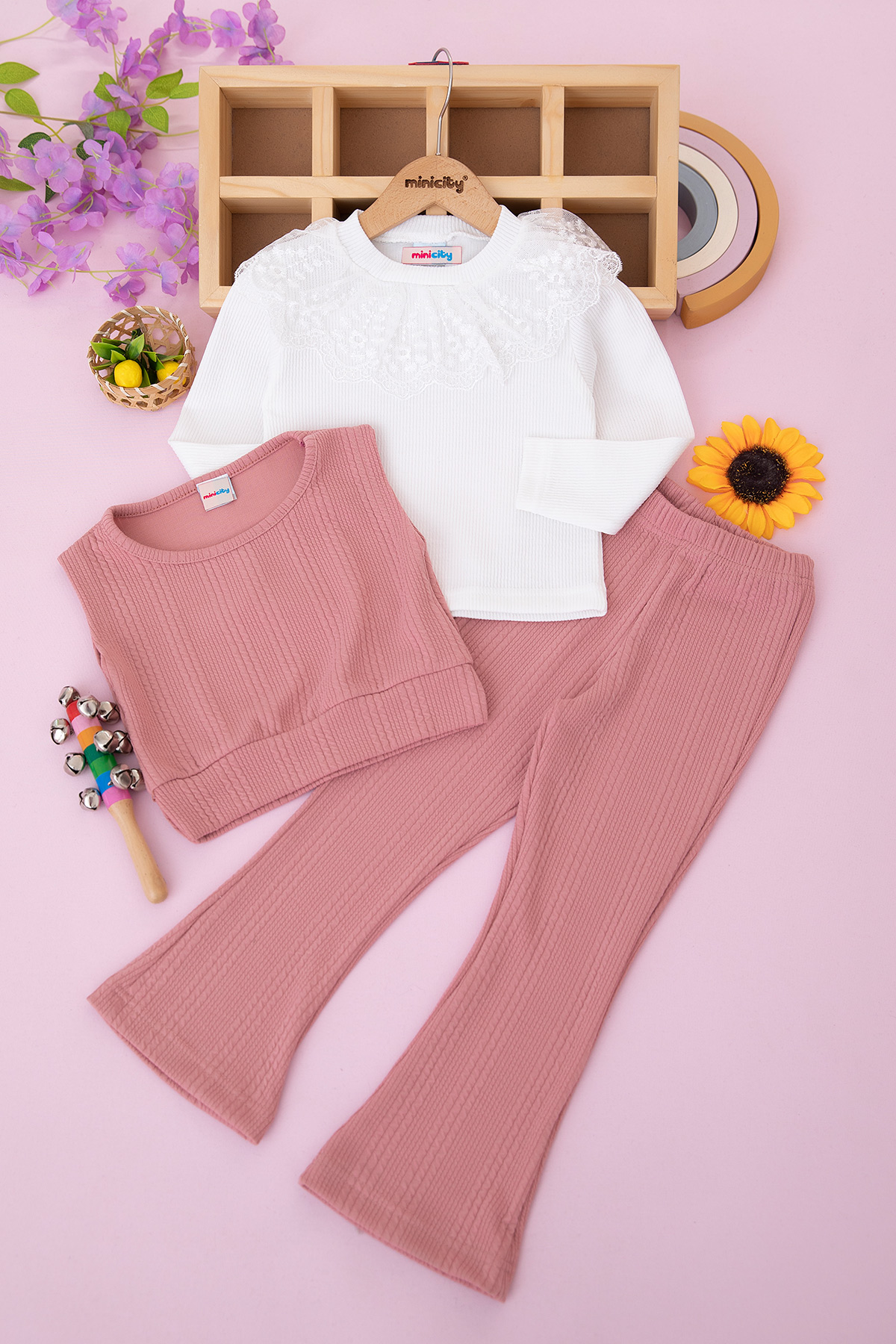Kız Çocuk Yakası Fistolu Süveterli Takım (4-8 Yaş)