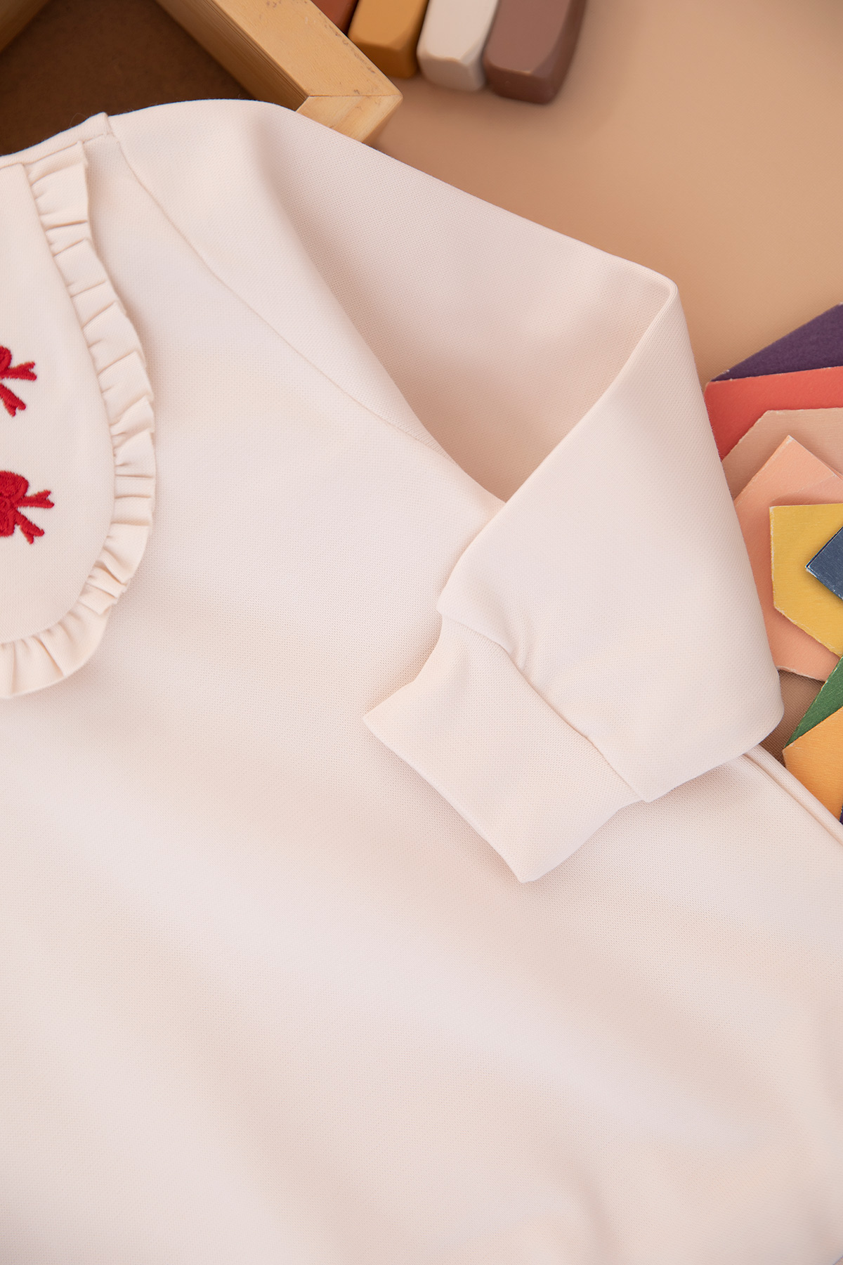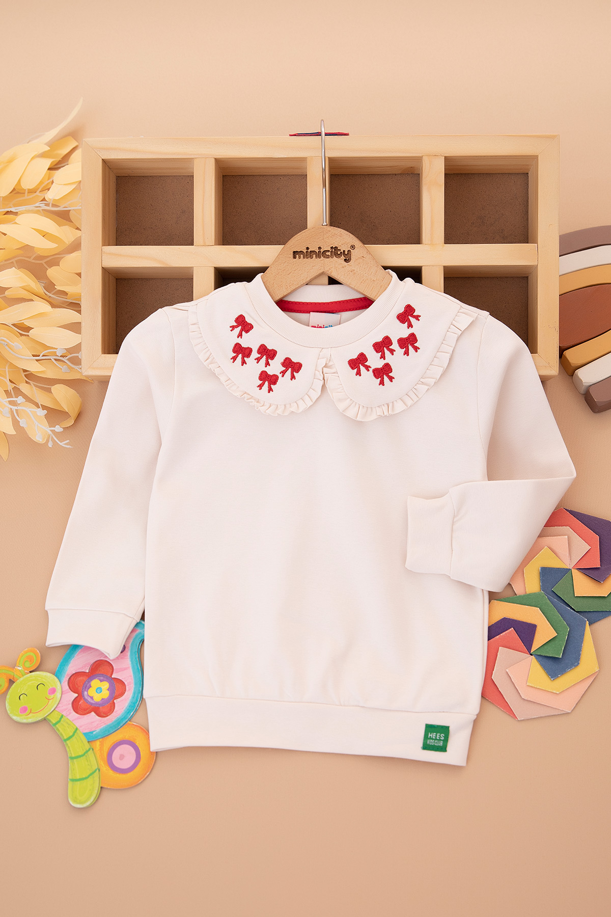 Kız Çocuk Yakası Fiyonk Nakışlı Sweat (2-10 Yaş)