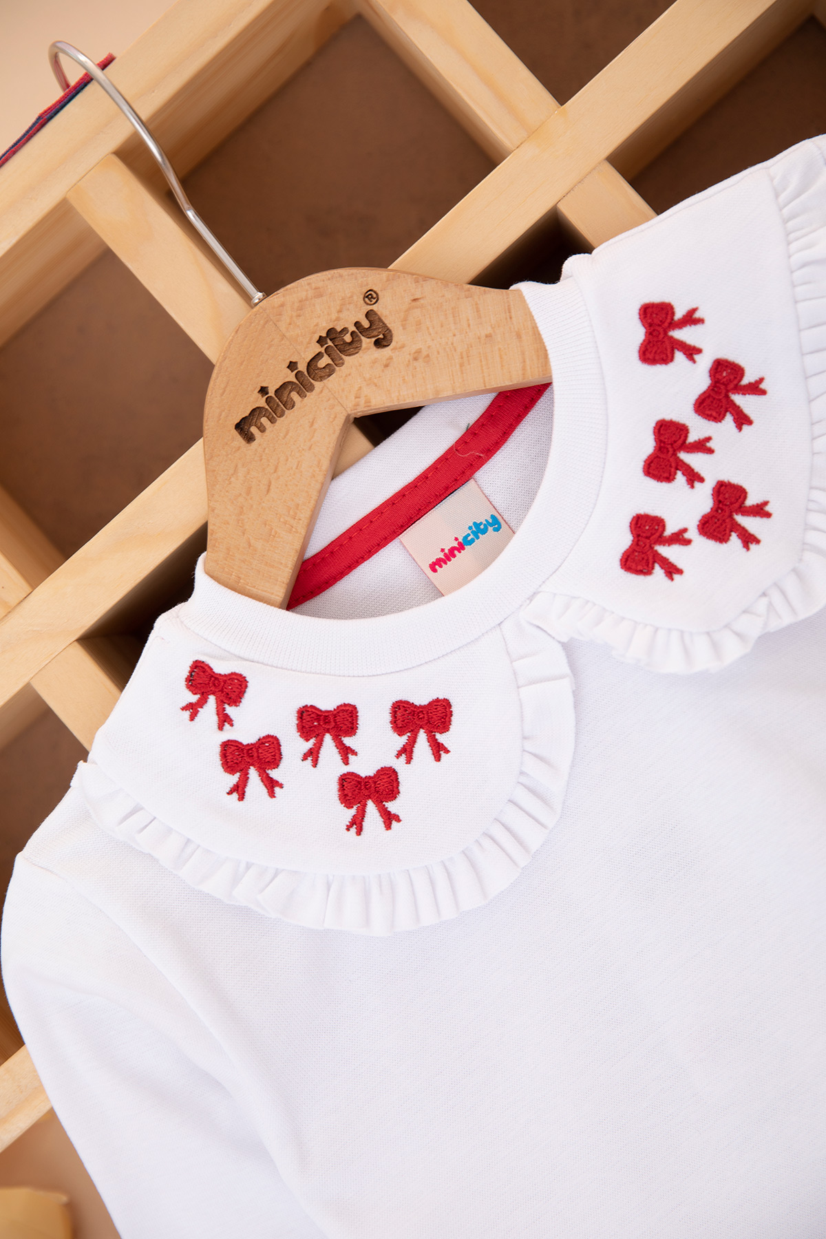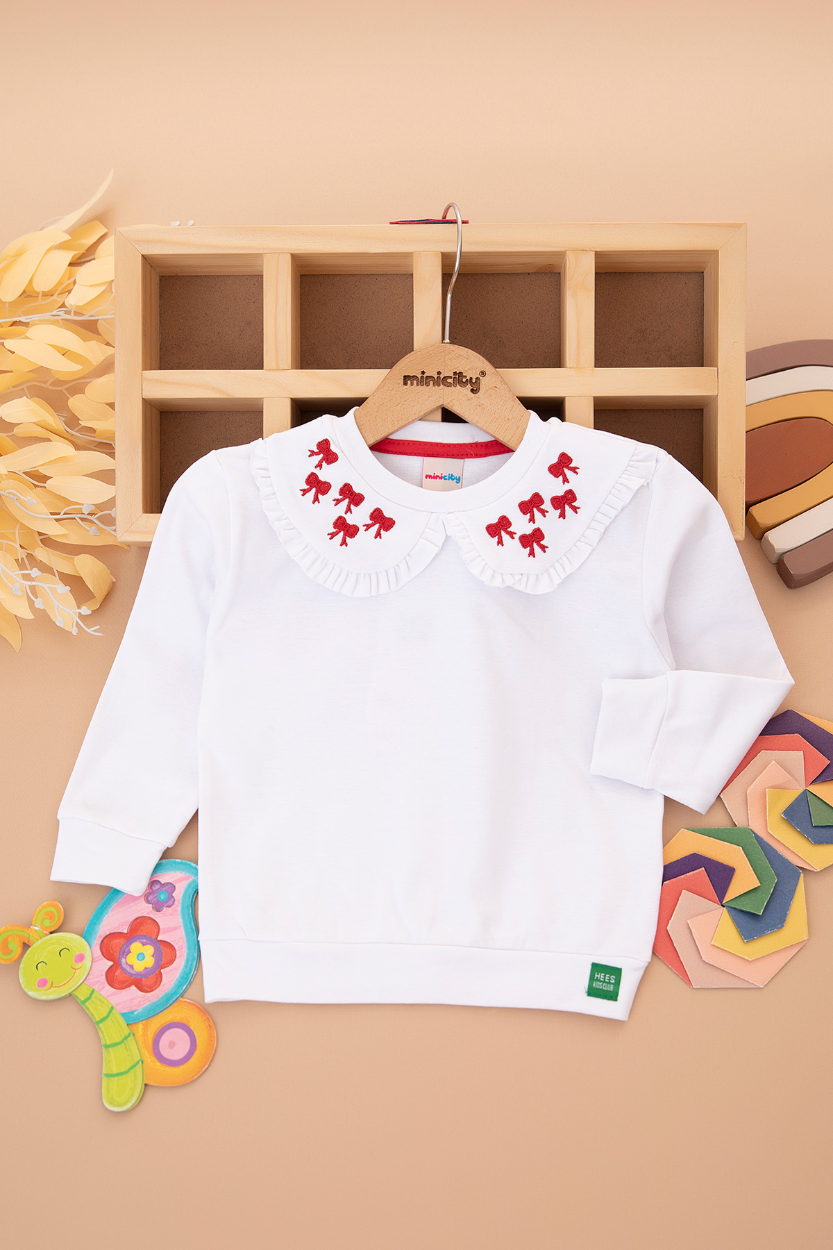 Kız Çocuk Yakası Fiyonk Nakışlı Sweat (2-10 Yaş)