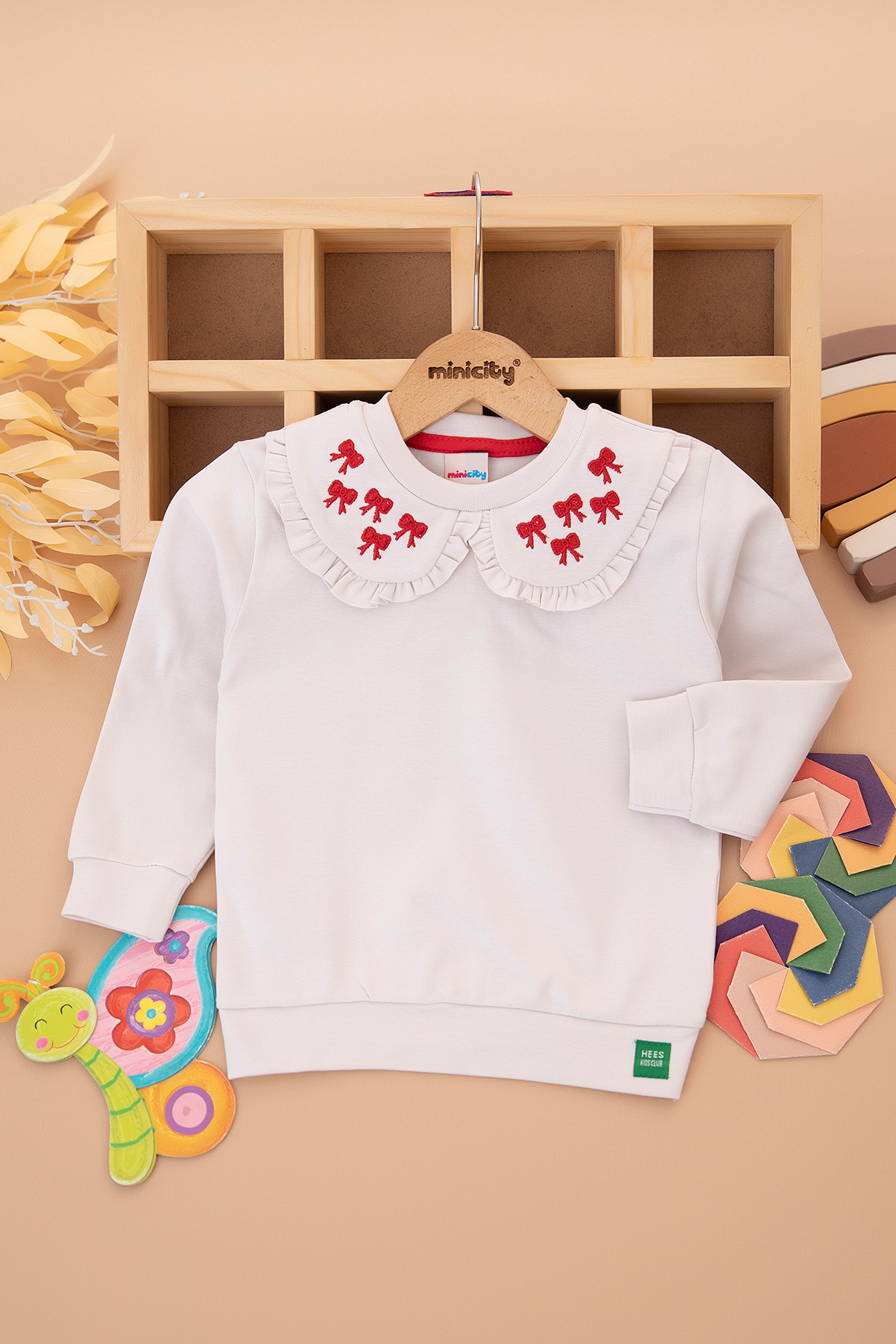 Kız Çocuk Yakası Fiyonk Nakışlı Sweat (2-10 Yaş)