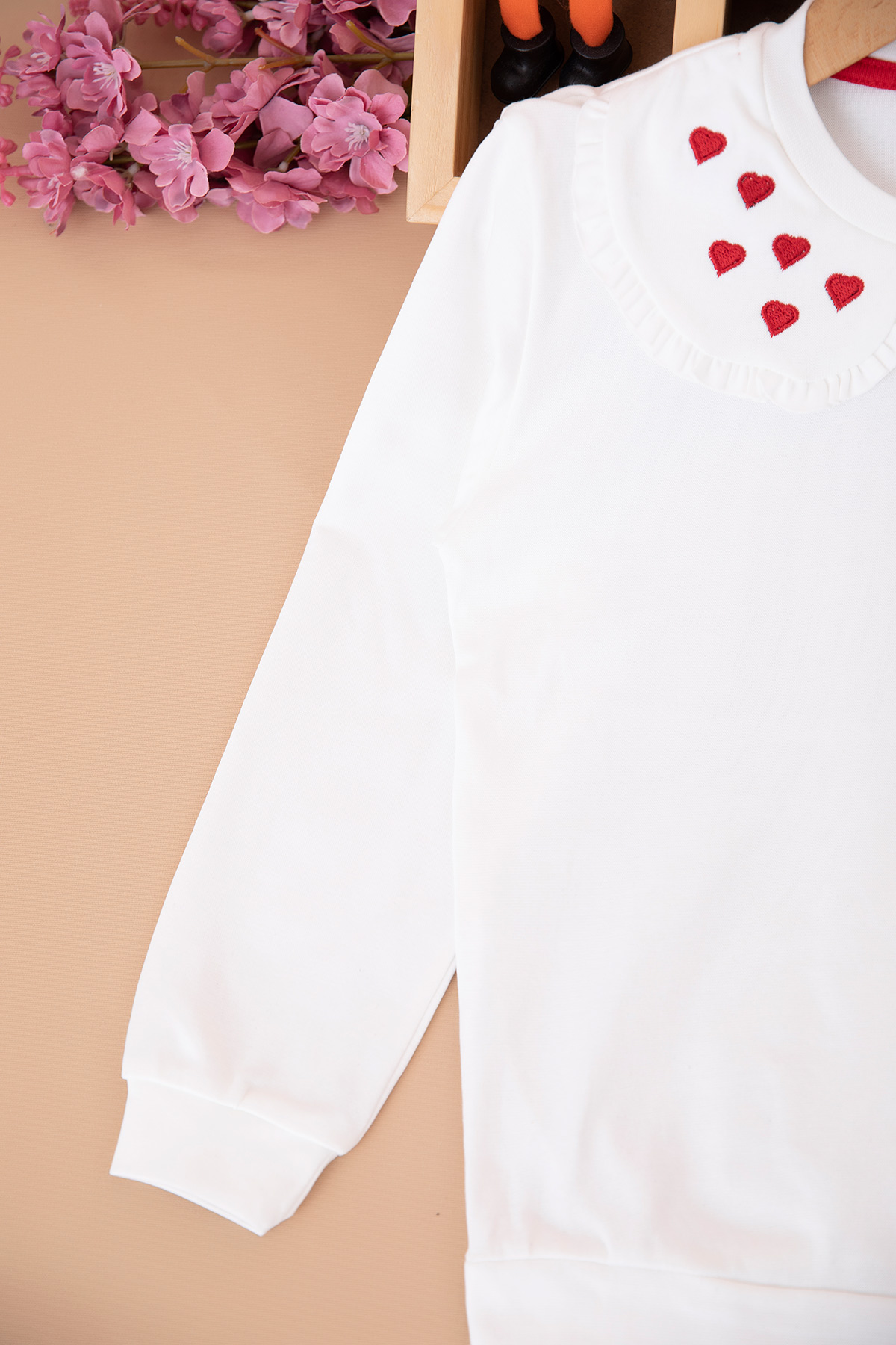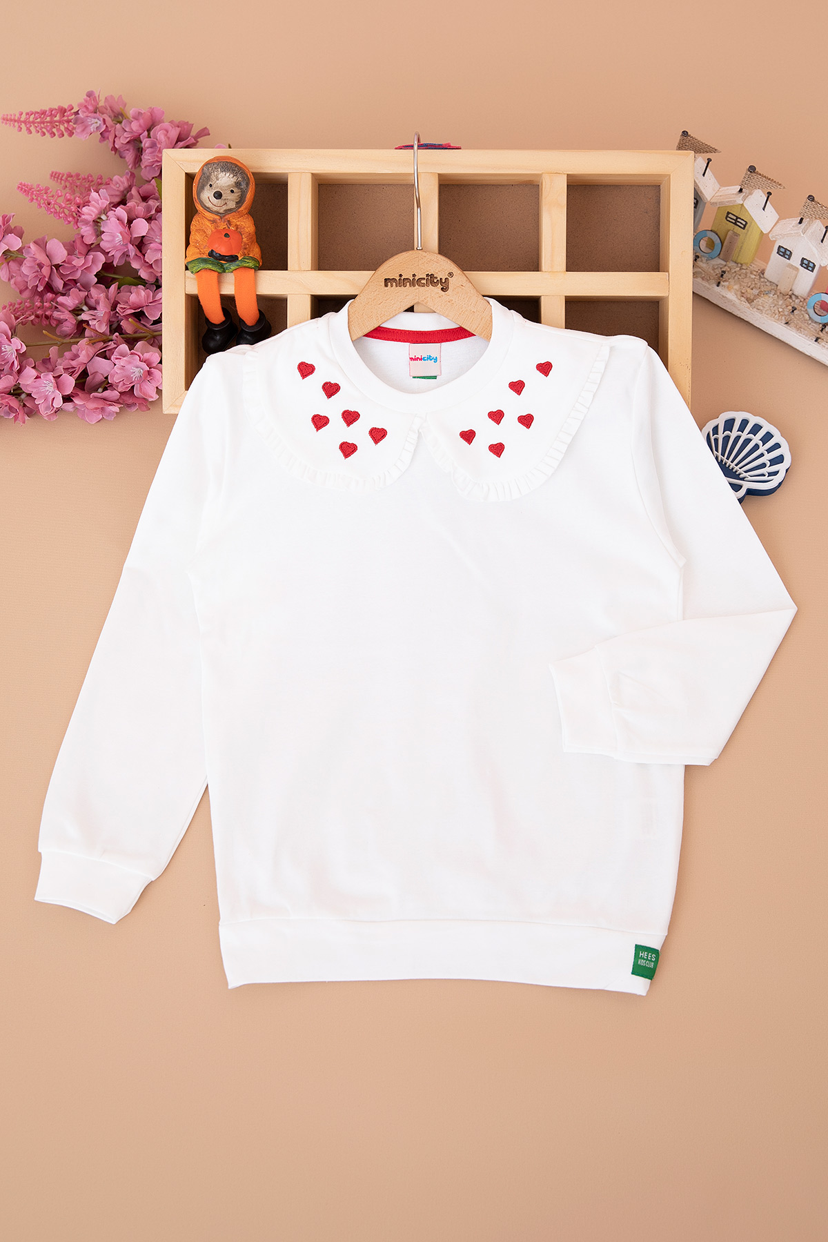 Kız Çocuk Yakası Fiyonk Nakışlı Sweat (2-10 Yaş)