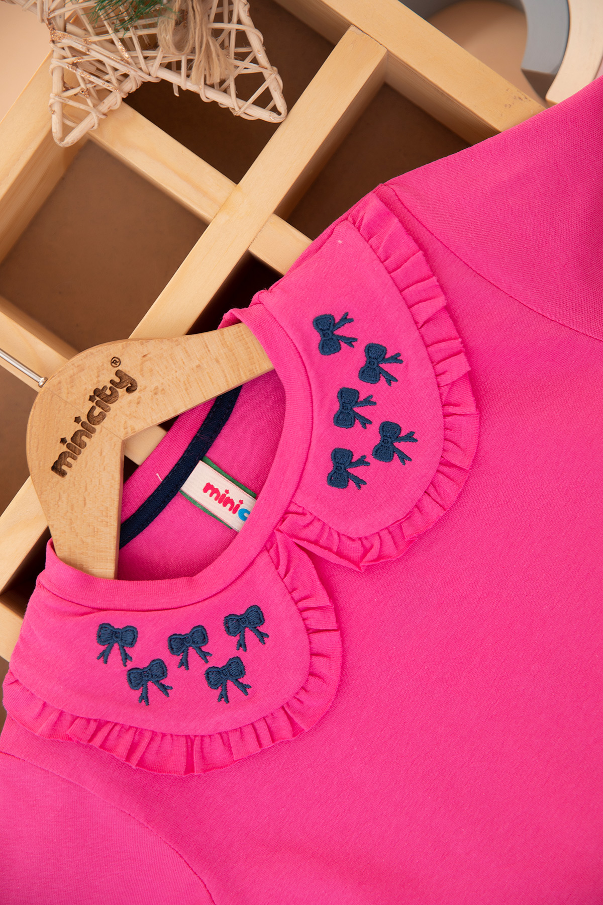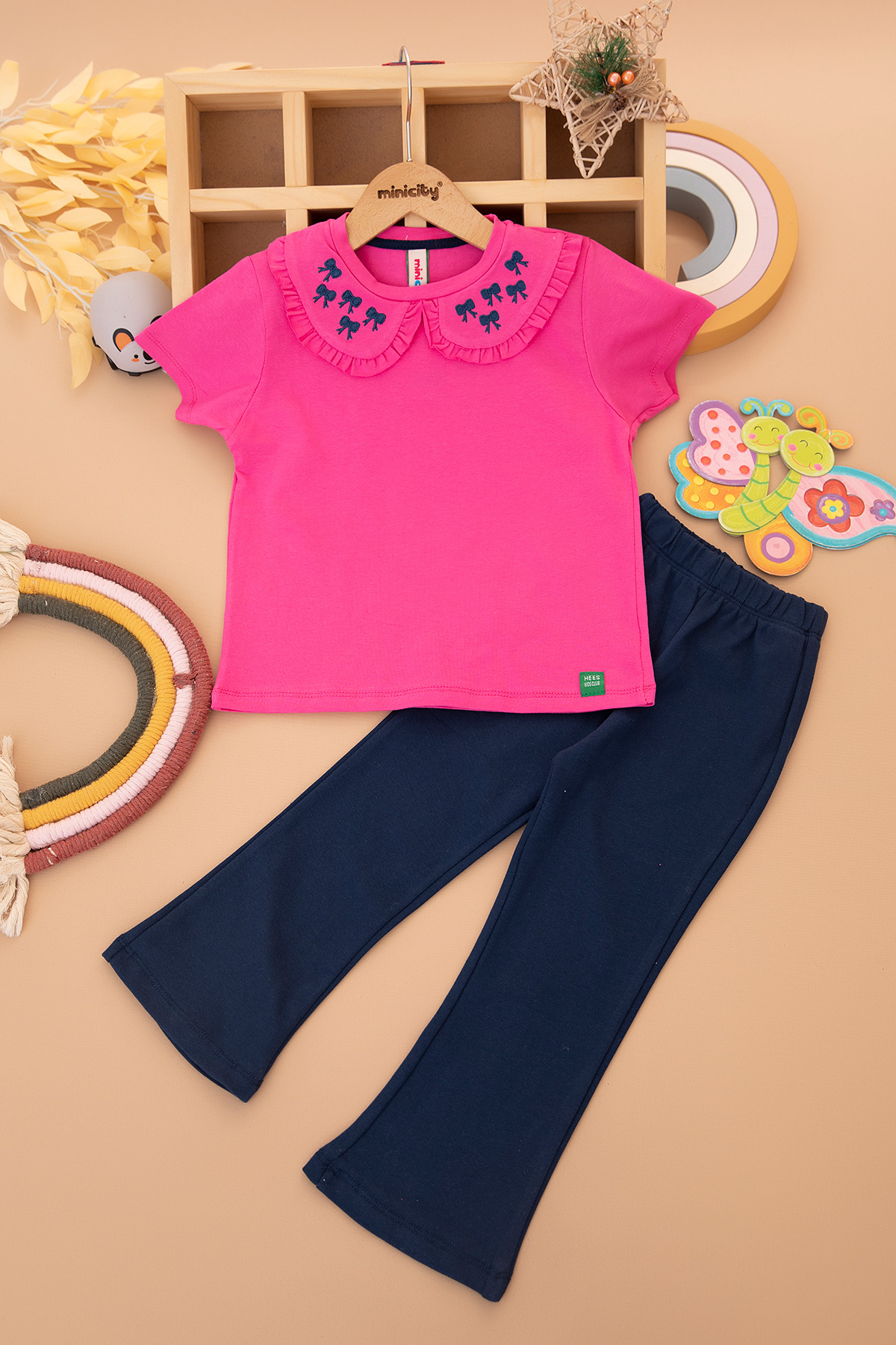 Kız Çocuk Yakası Fiyonk Nakışlı Taytlı Takım (2-7 Yaş)