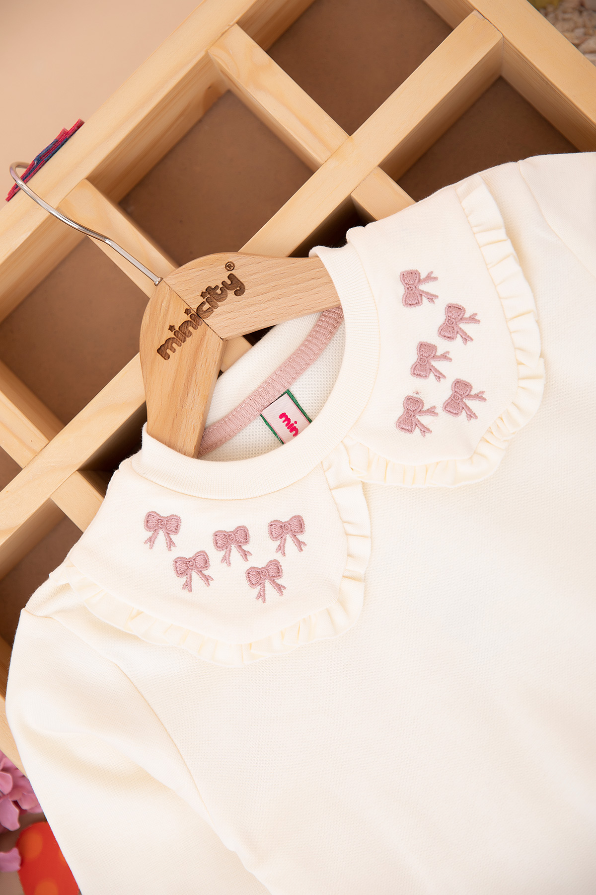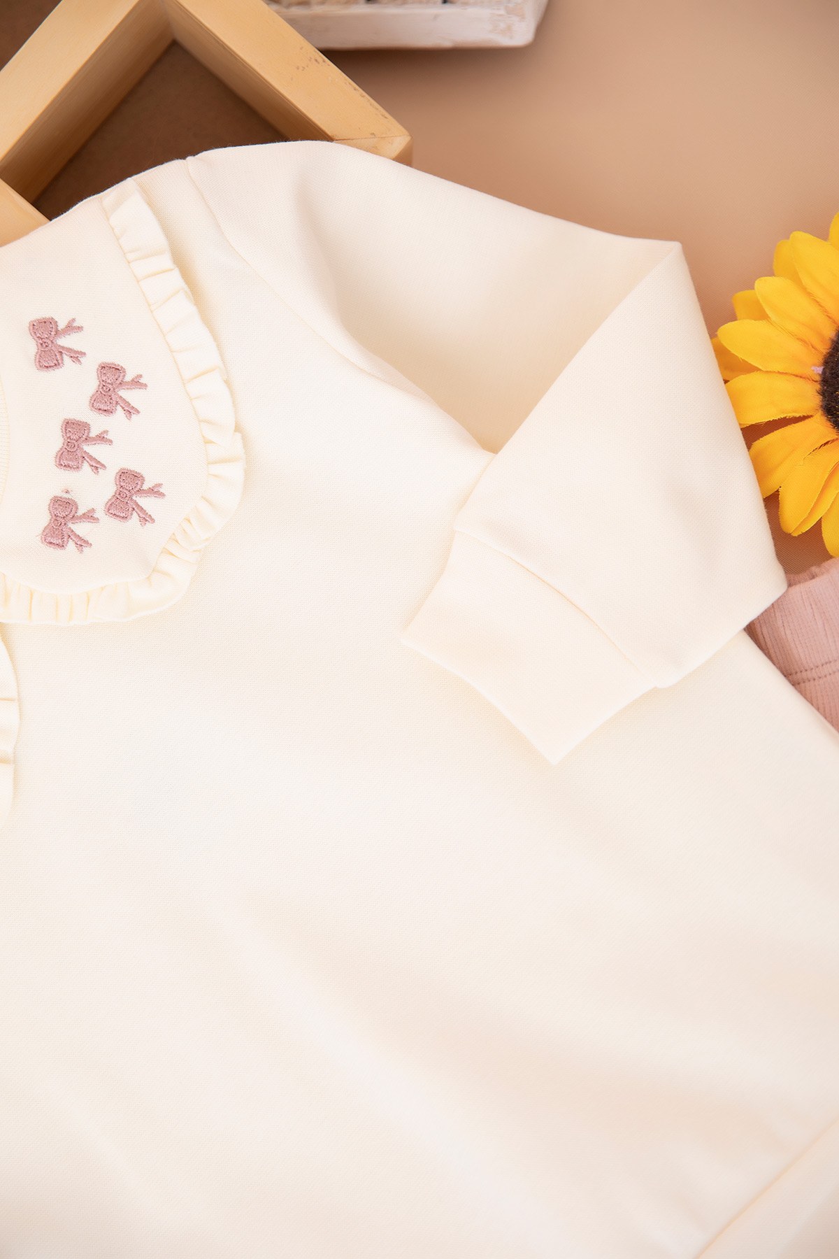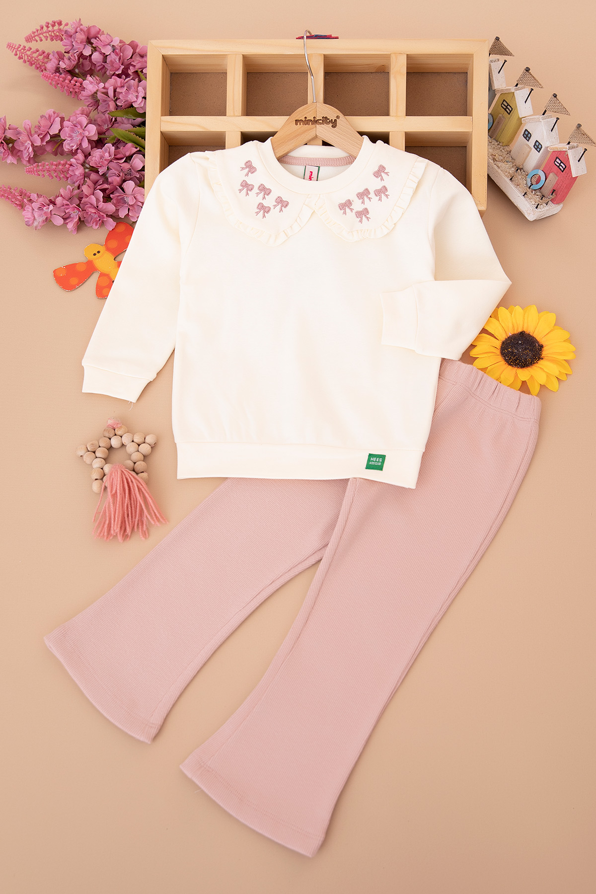 Kız Çocuk Yakası Fiyonk Nakışlı Taytlı Takım (2-7 Yaş)