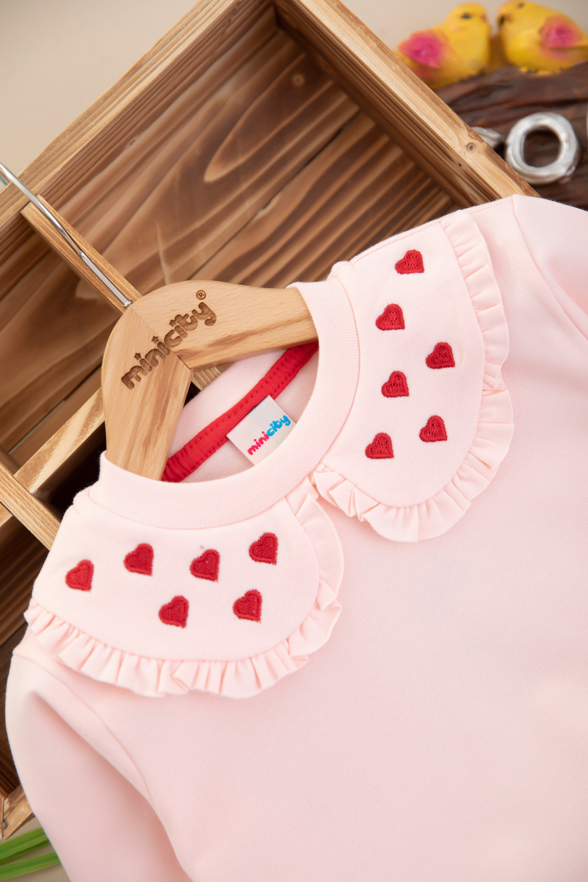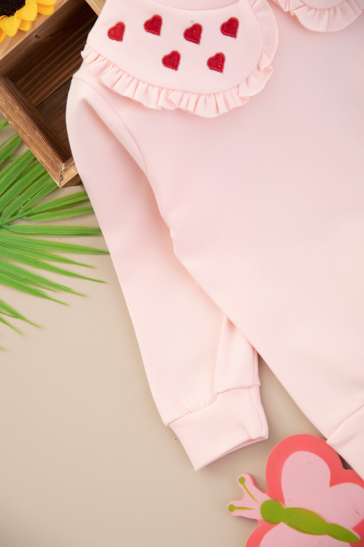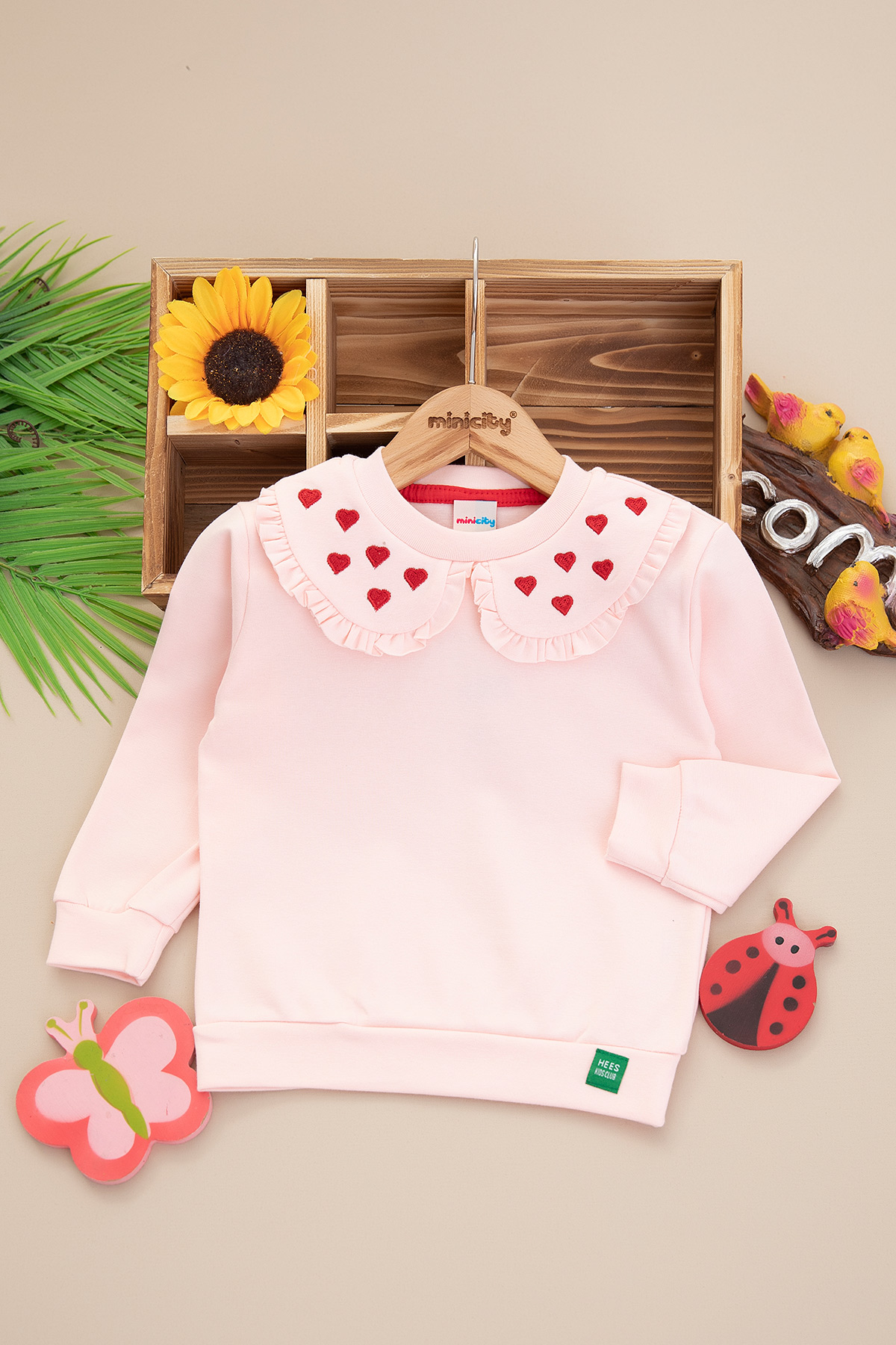 Kız Çocuk Yakası Kalp Nakışlı Sweat (2-10 Yaş)