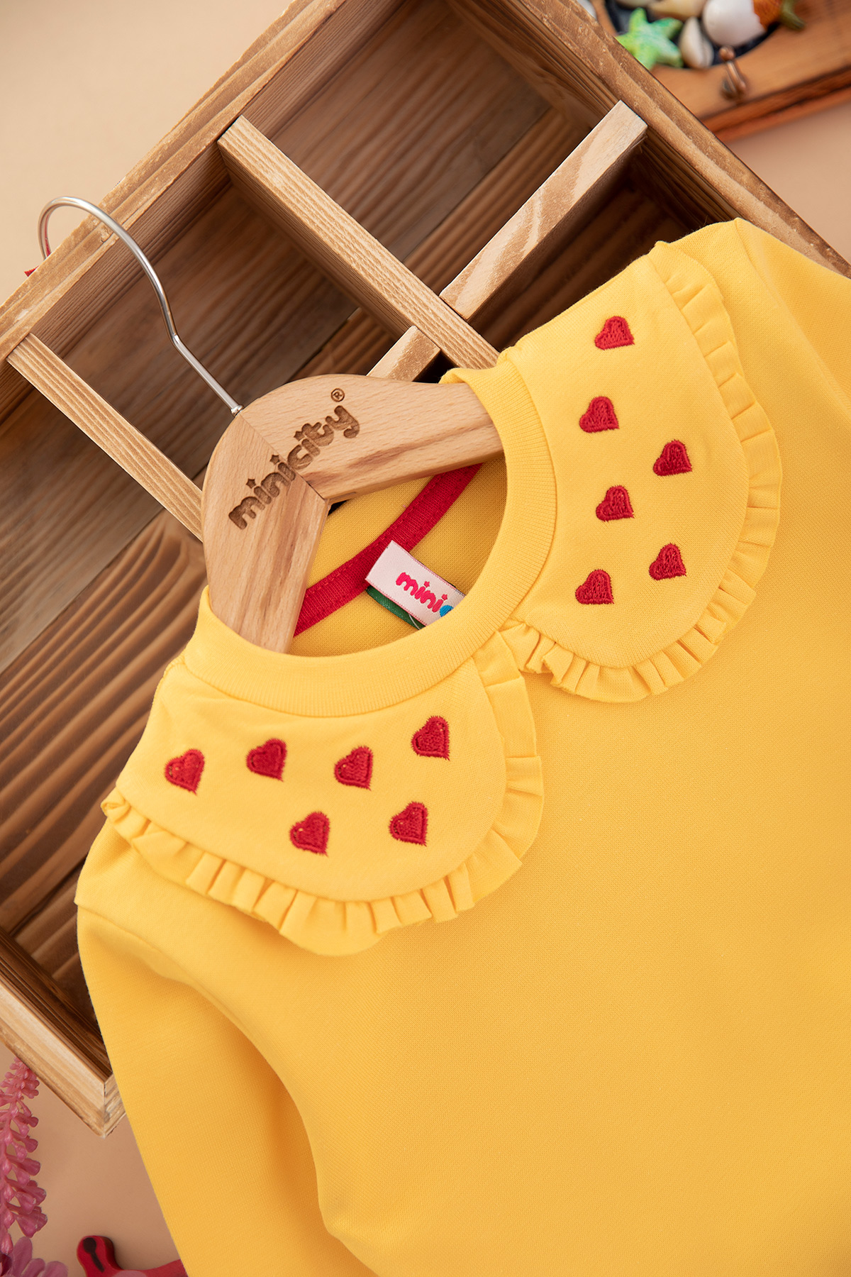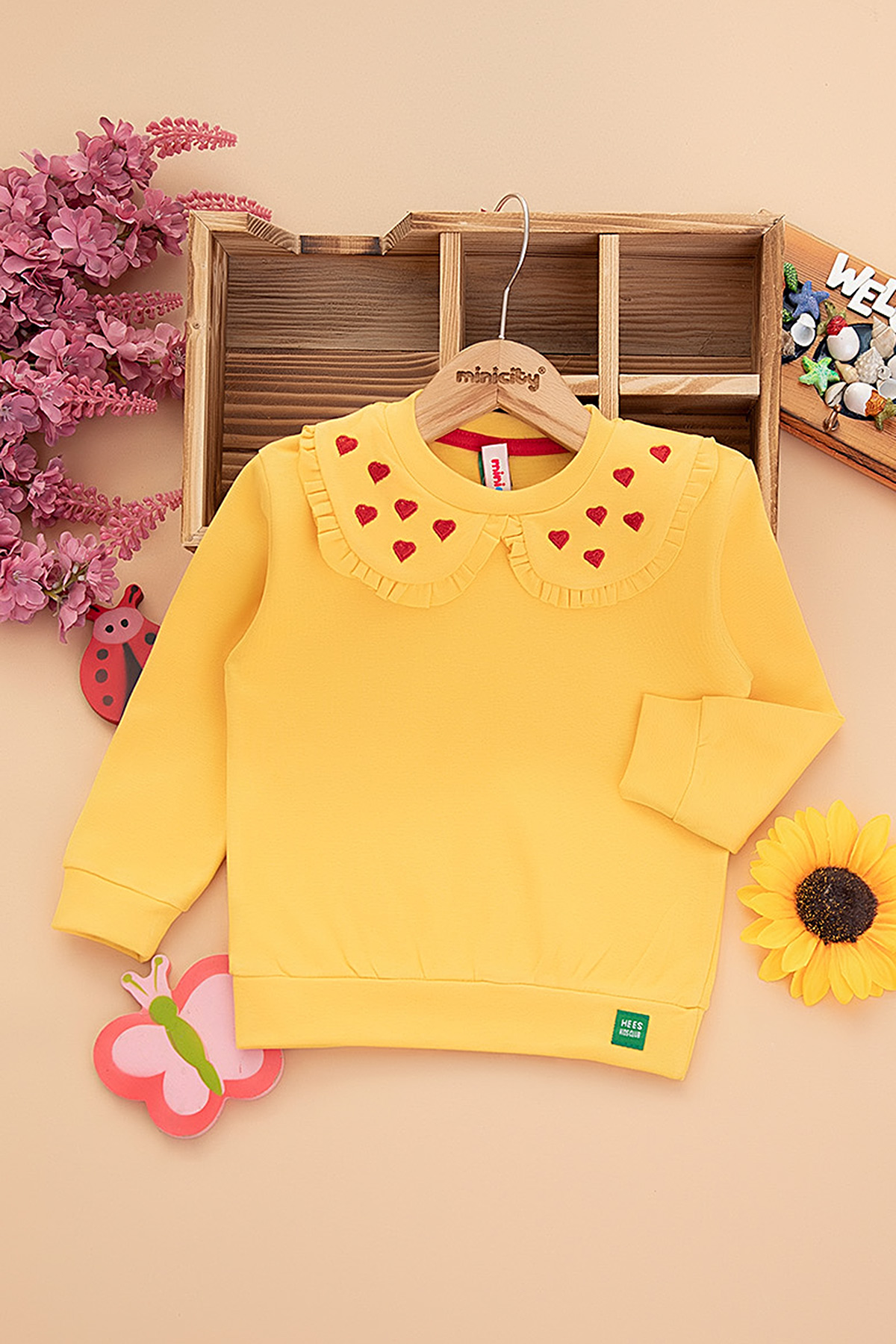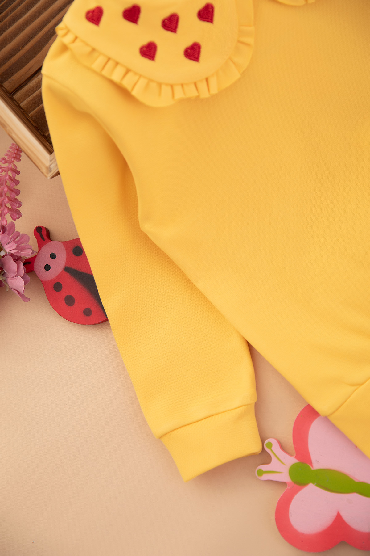 Kız Çocuk Yakası Kalp Nakışlı Sweat (2-10 Yaş)