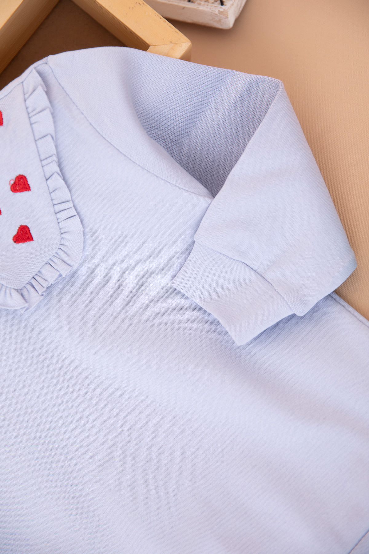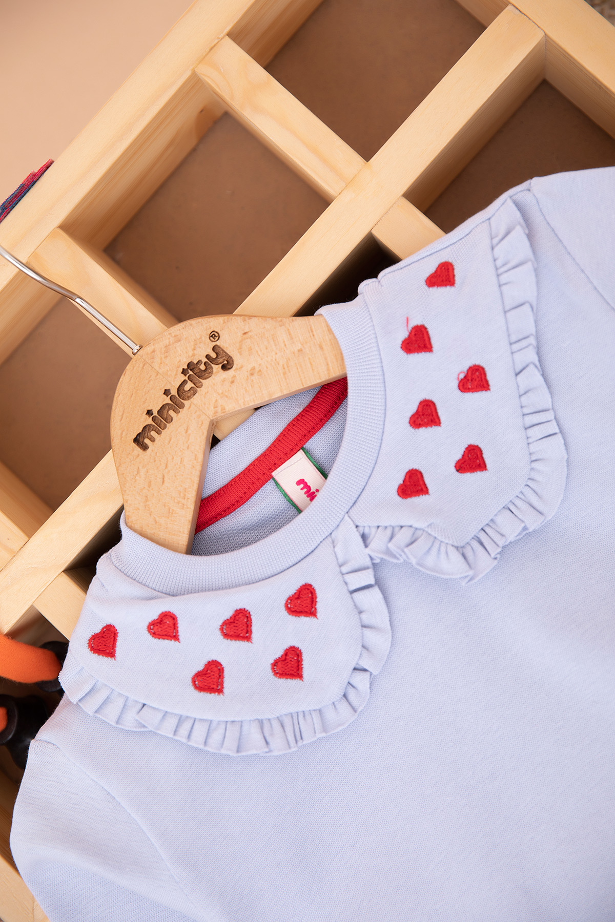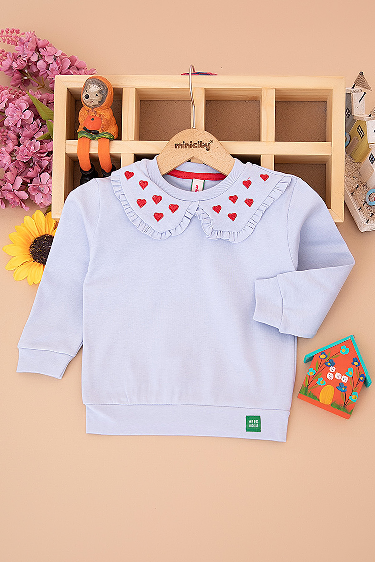 Kız Çocuk Yakası Kalp Nakışlı Sweat (2-10 Yaş)