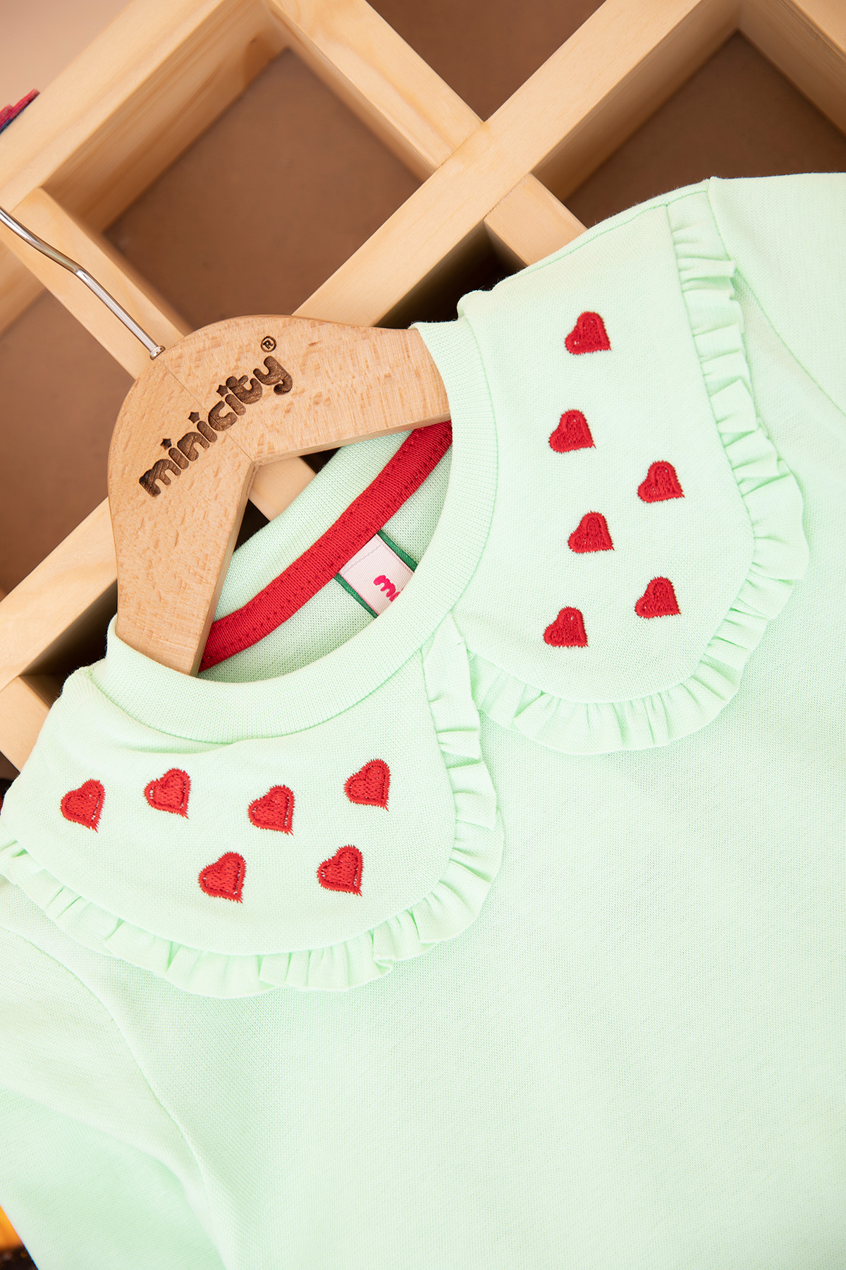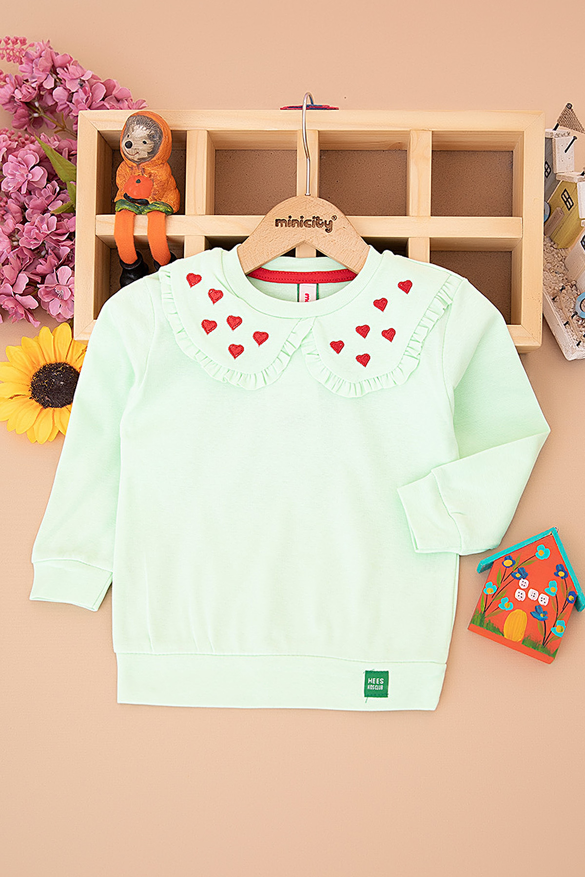 Kız Çocuk Yakası Kalp Nakışlı Sweat (2-10 Yaş)