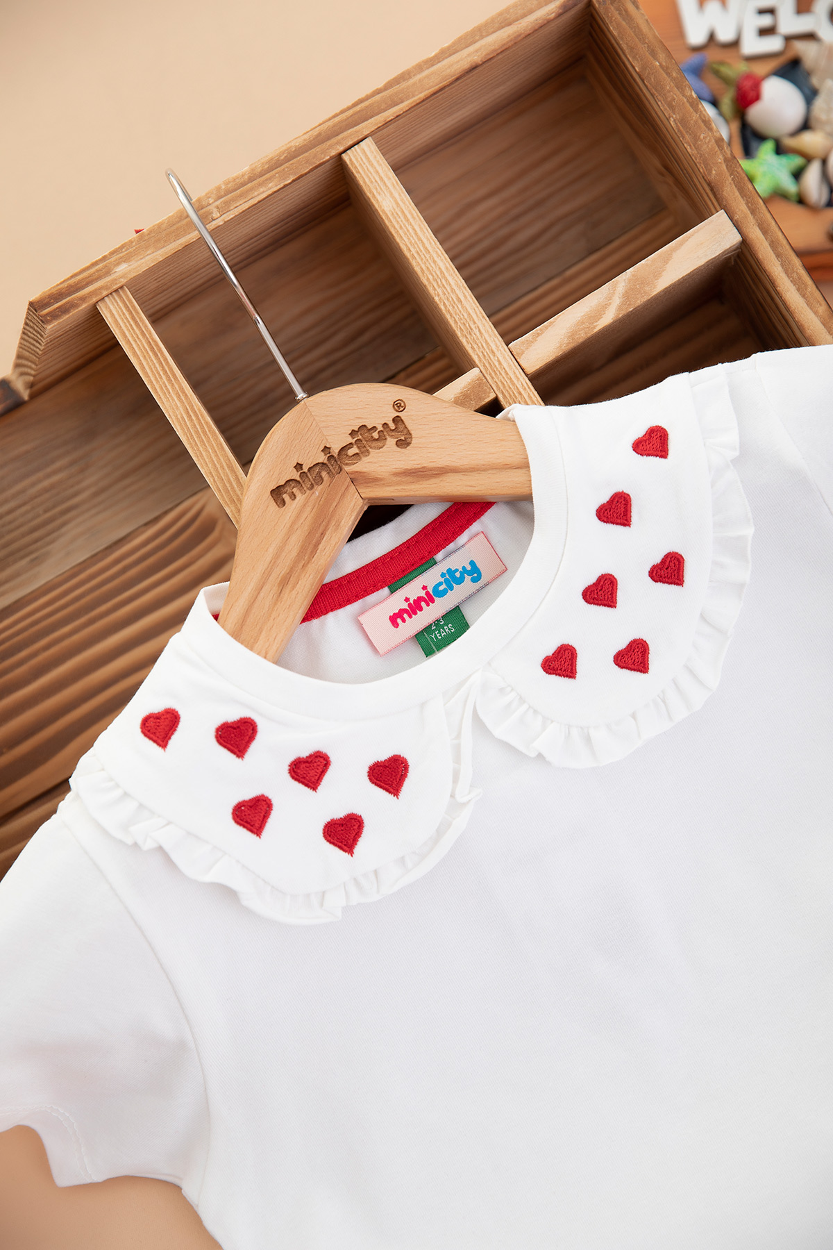 Kız Çocuk Yakası Kalp Nakışlı Taytlı Takım - (2-7 Yaş)