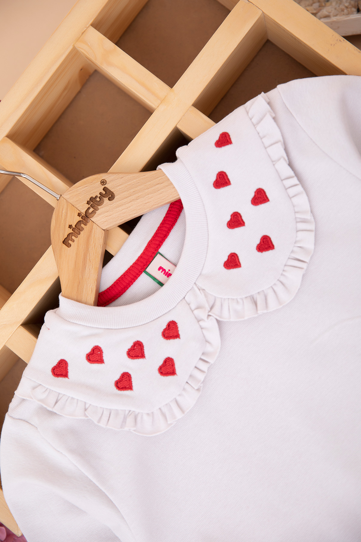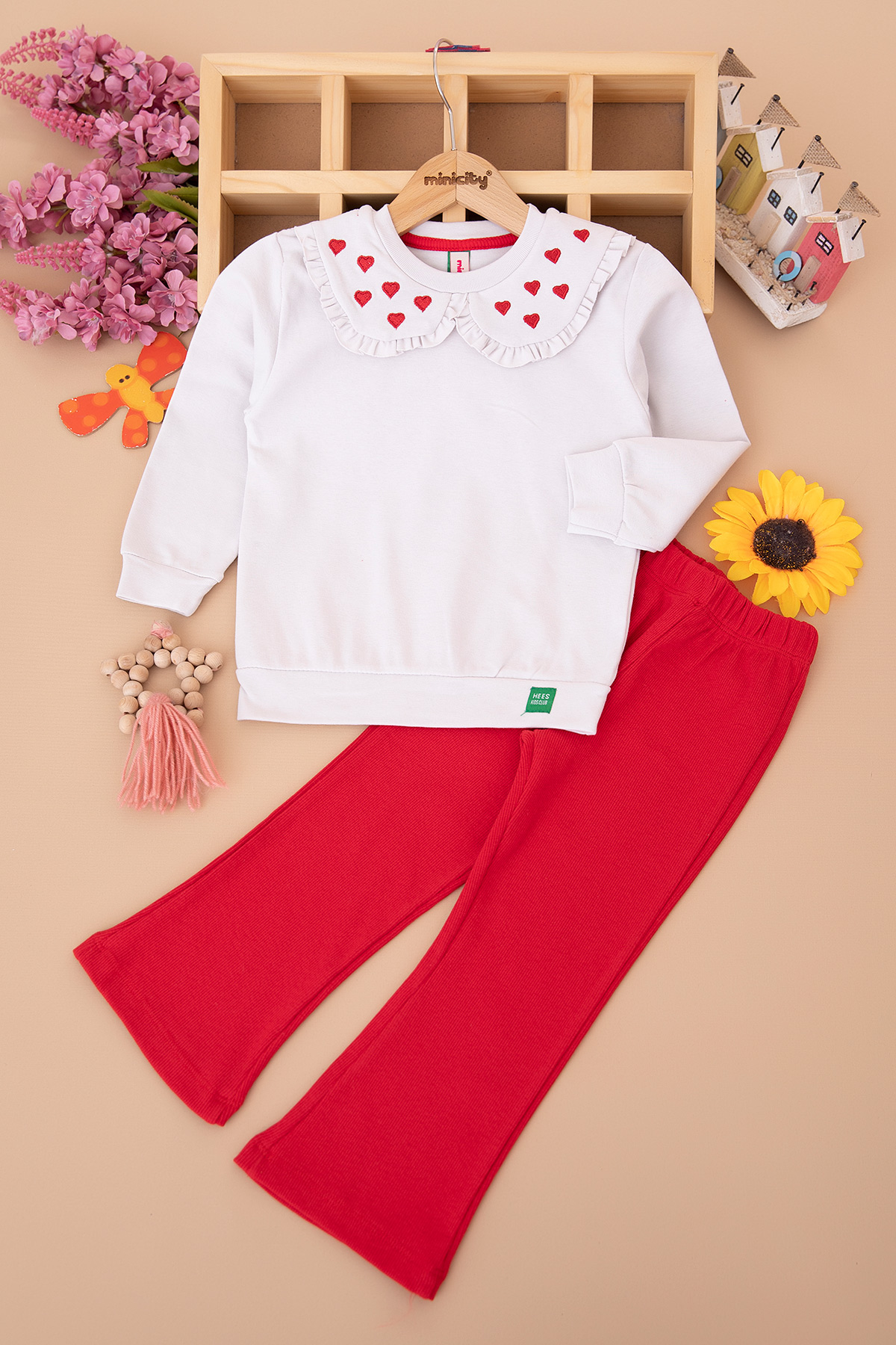 Kız Çocuk Yakası Kalp Nakışlı Taytlı Takım (2-7 Yaş)