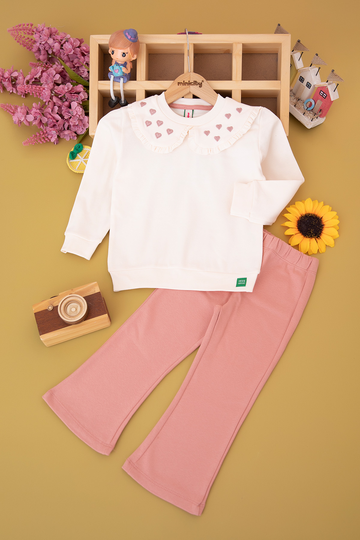 Kız Çocuk Yakası Kalp Nakışlı Taytlı Takım (2-7 Yaş)