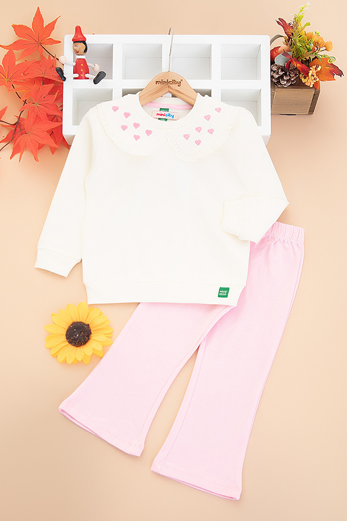 Kız Çocuk Yakası Kalp Nakışlı Taytlı Takım (2-7 Yaş)