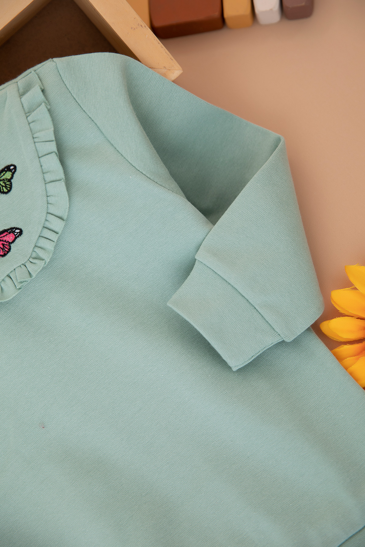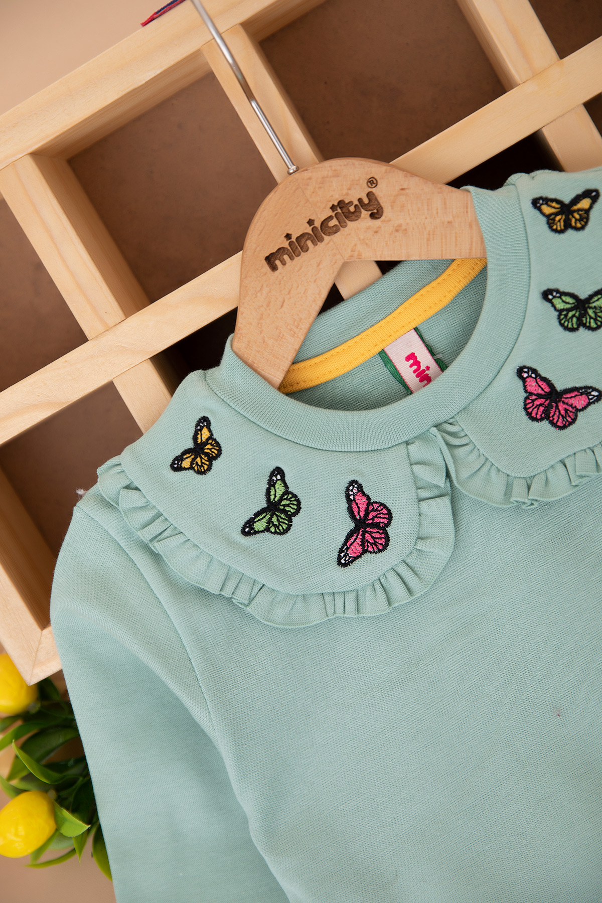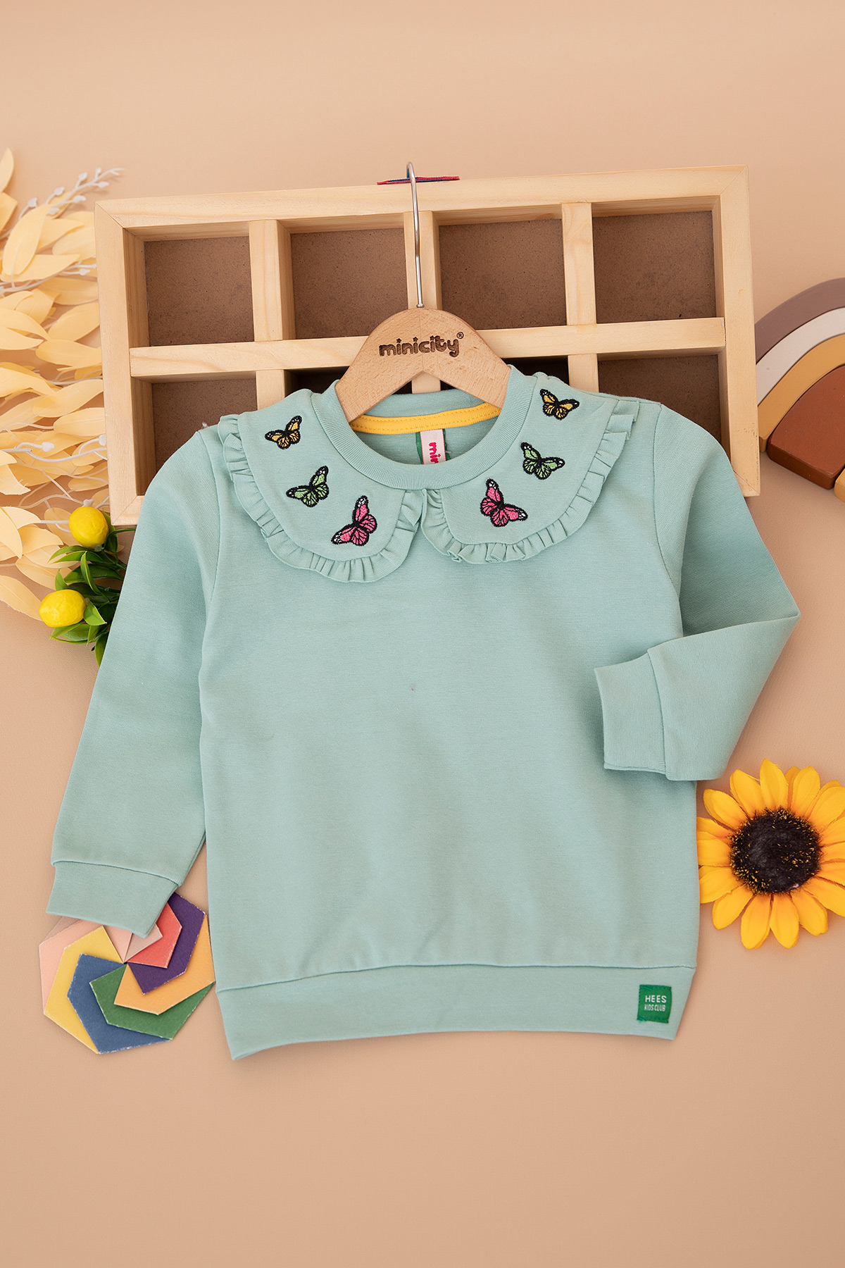 Kız Çocuk Yakası Kelebek Nakışlı Sweat (2-10 Yaş)