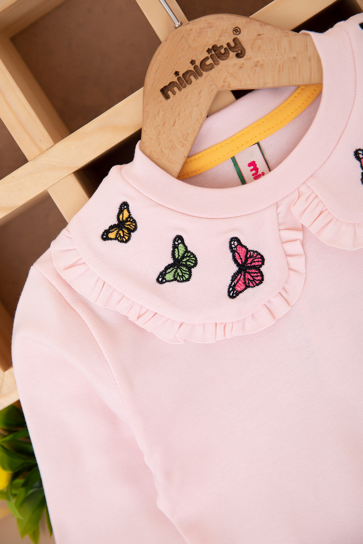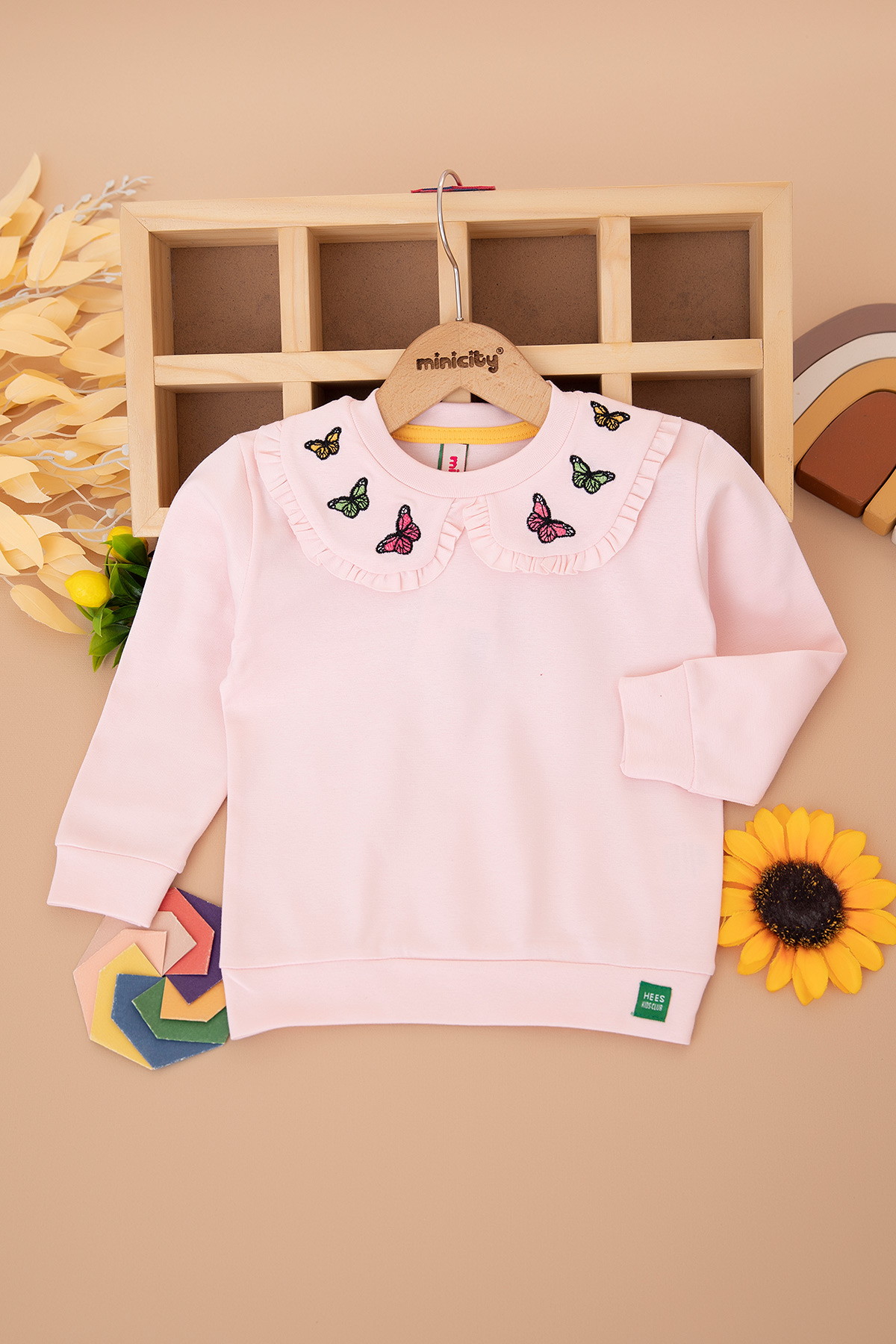 Kız Çocuk Yakası Kelebek Nakışlı Sweat (2-10 Yaş)