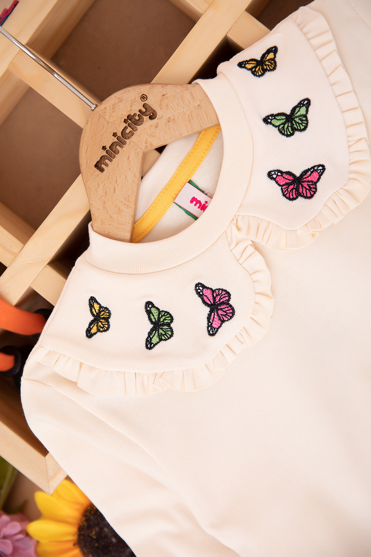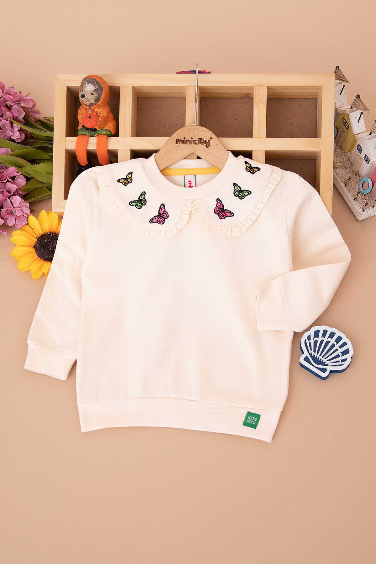 Kız Çocuk Yakası Kelebek Nakışlı Sweat (2-10 Yaş)