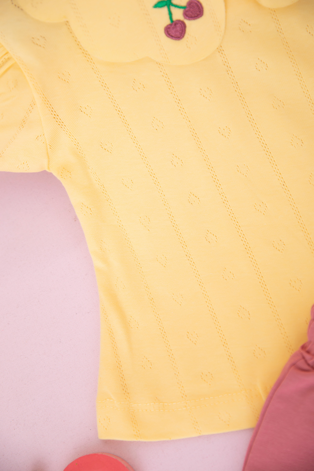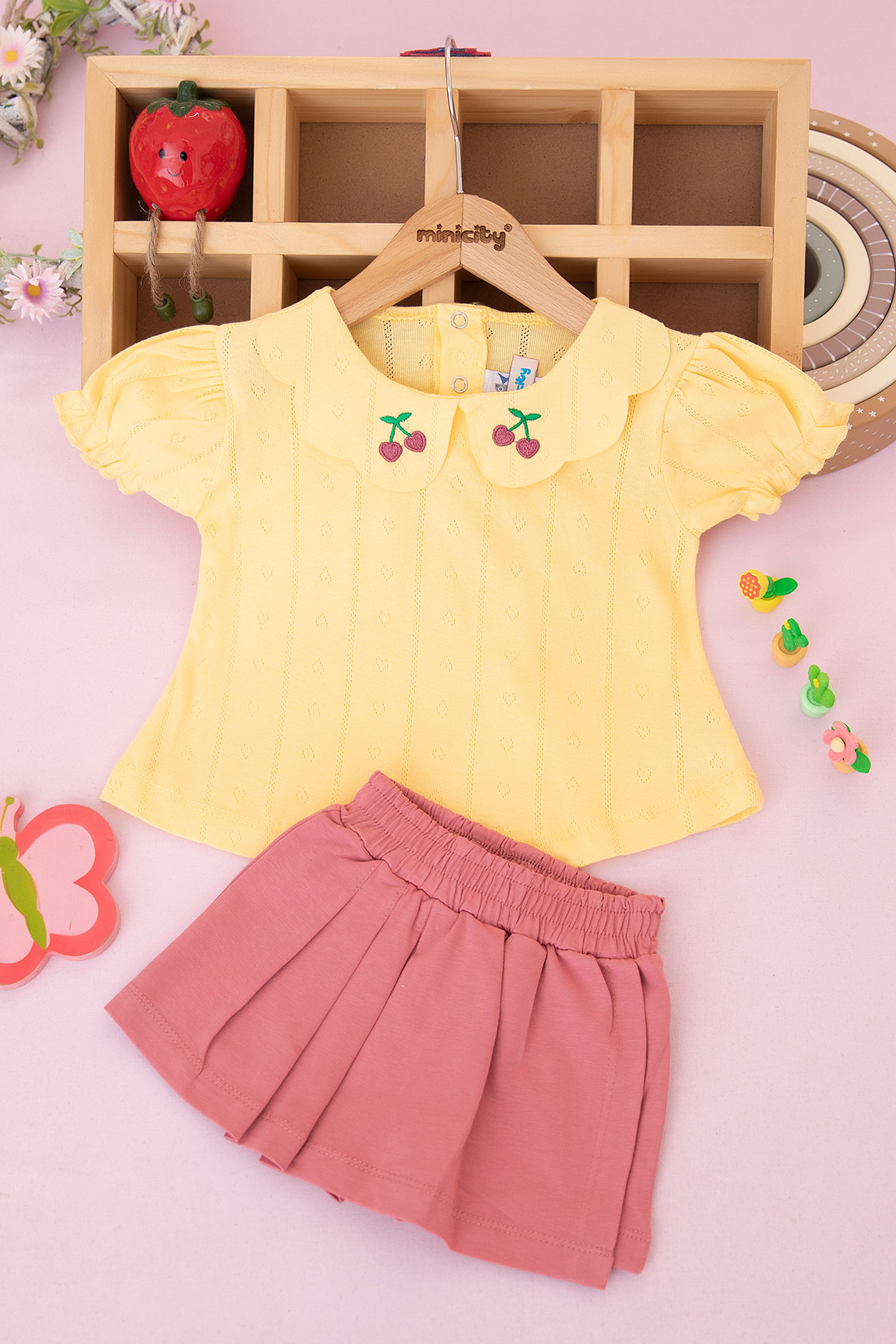Kız Çocuk Yakası Kiraz Nakışlı Şort Etek Takım - 26565 (3-6 Yaş)
