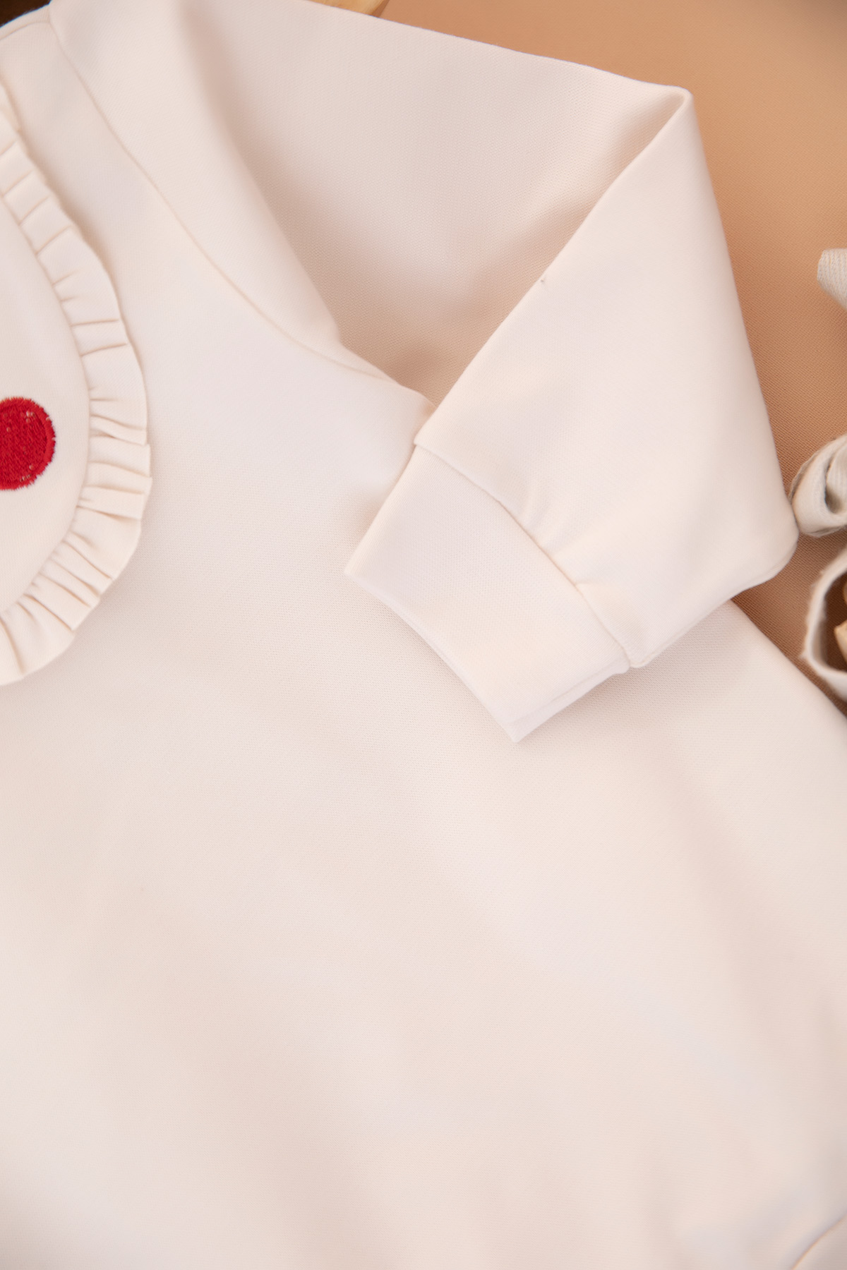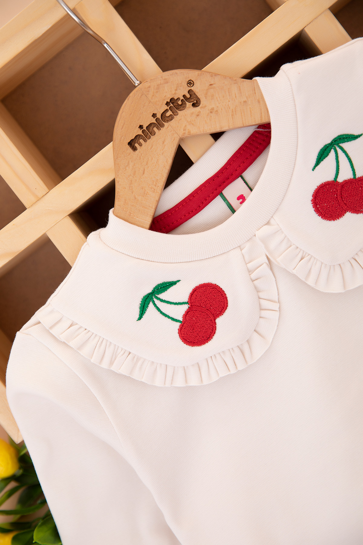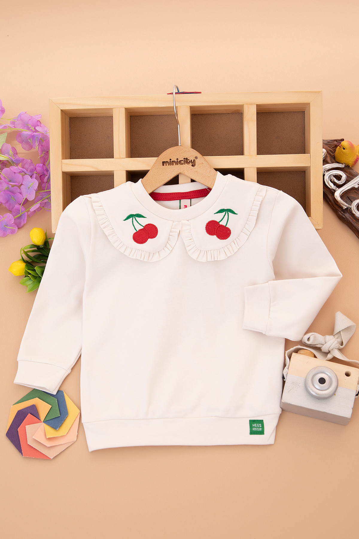 Kız Çocuk Yakası Kiraz Nakışlı Sweat (2-10 Yaş)