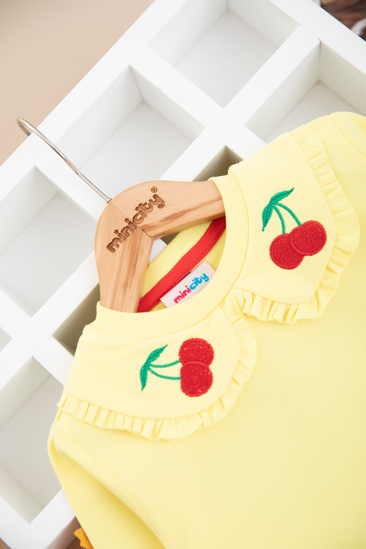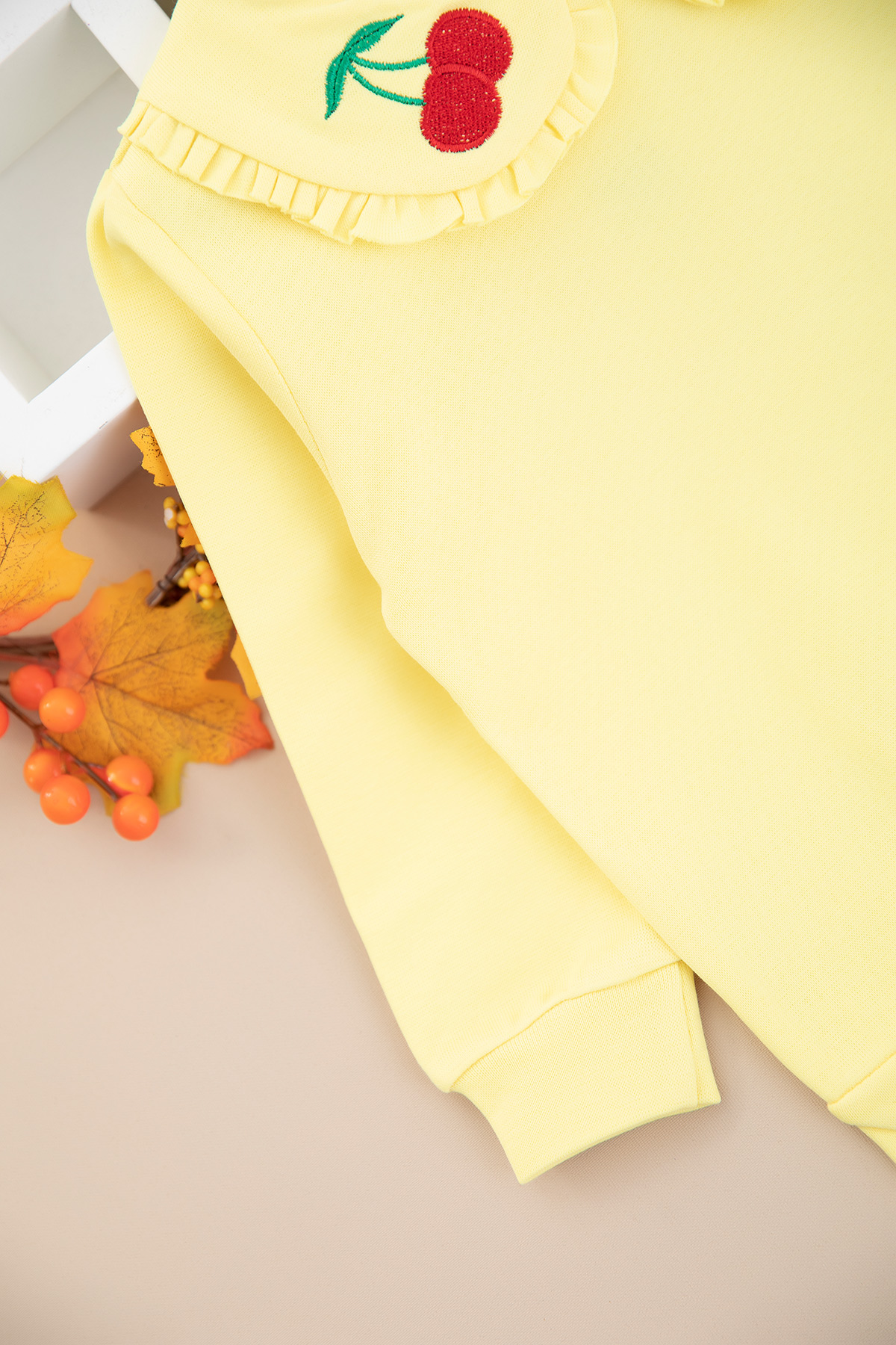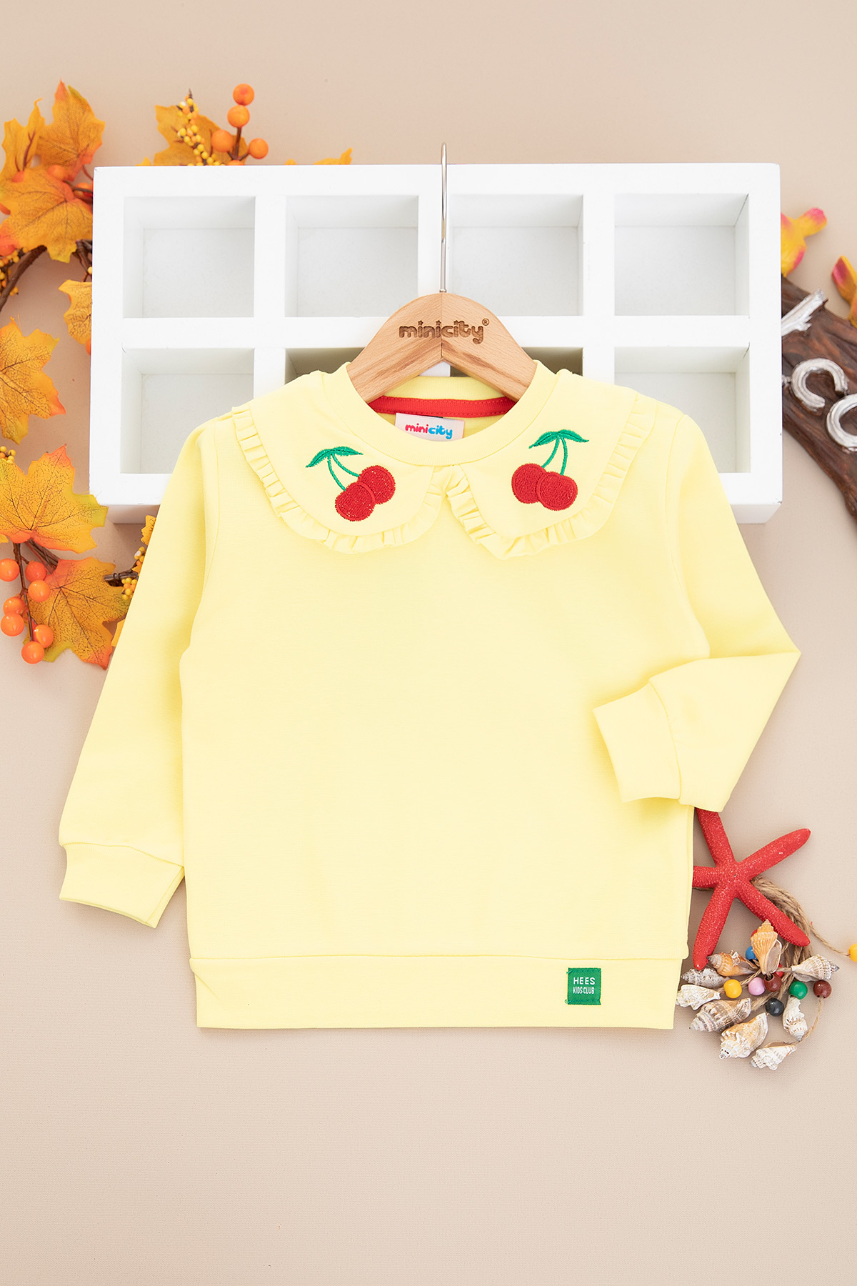 Kız Çocuk Yakası Kiraz Nakışlı Sweat (2-10 Yaş)