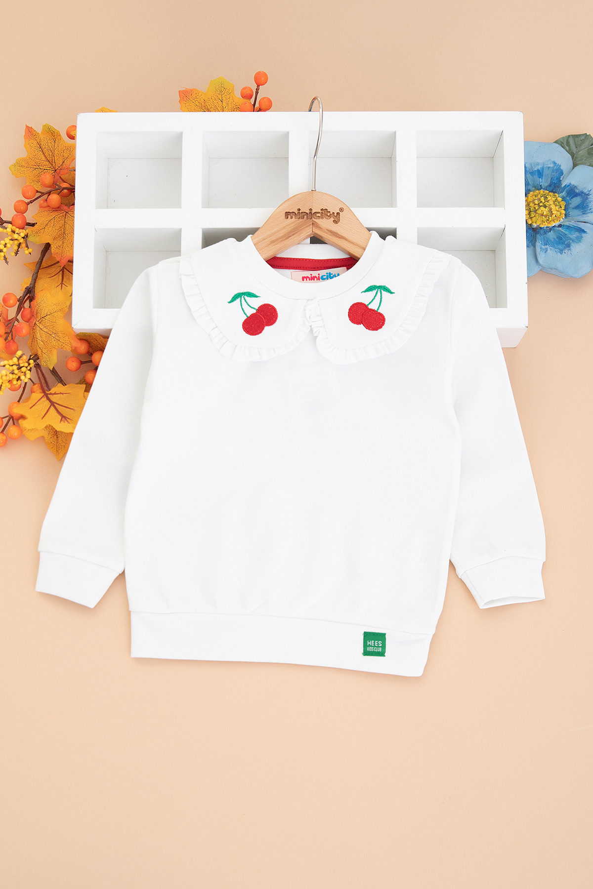 Kız Çocuk Yakası Kiraz Nakışlı Sweat (2-10 Yaş)
