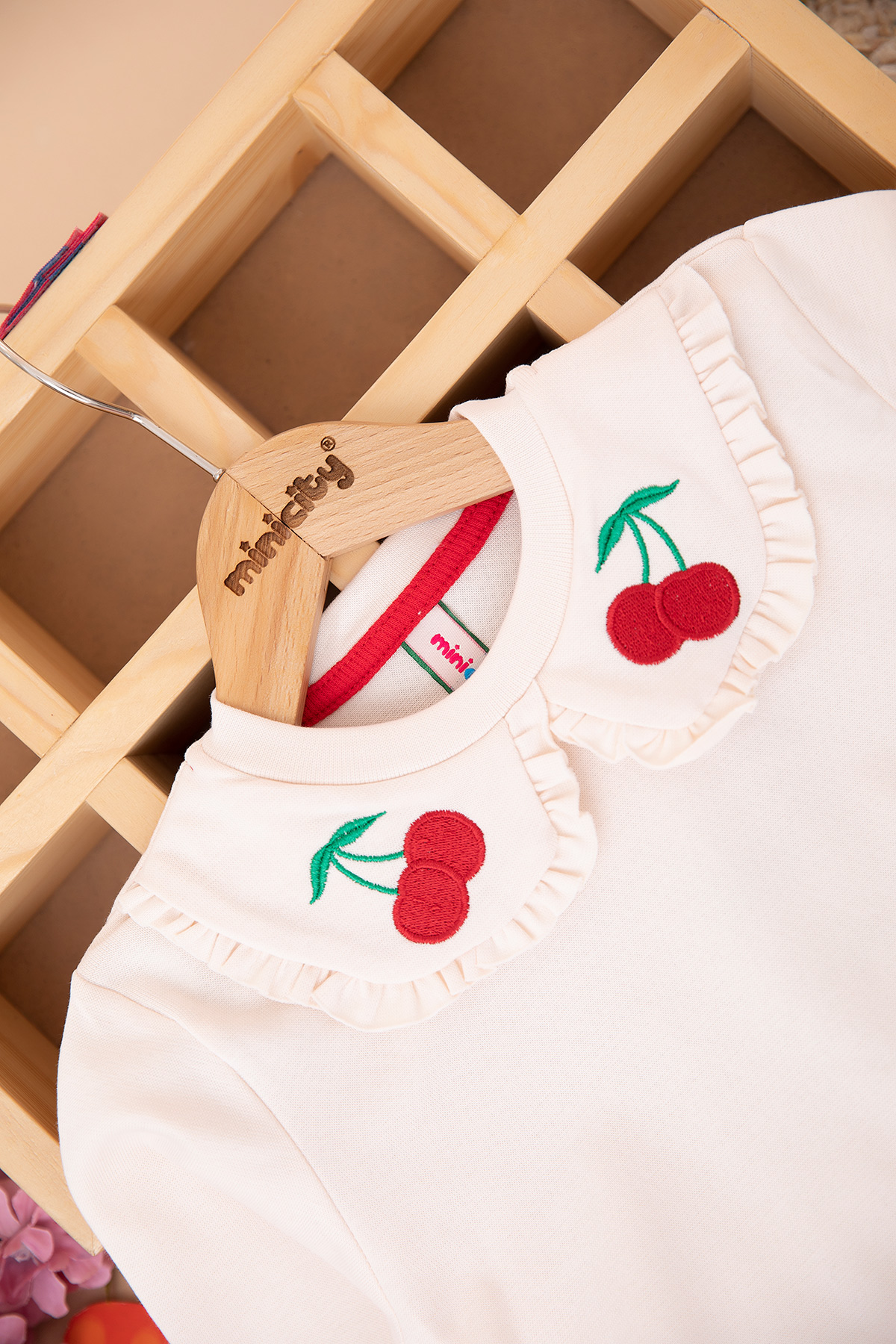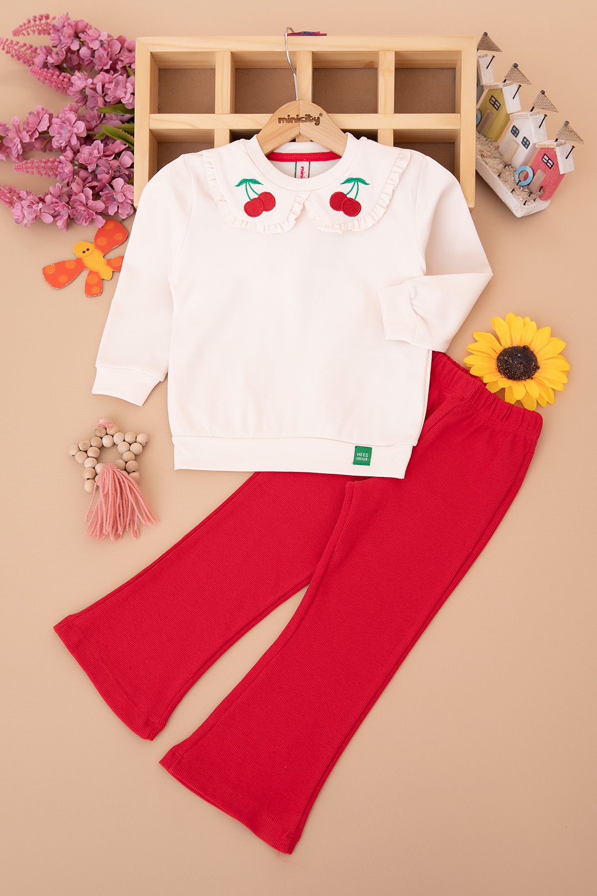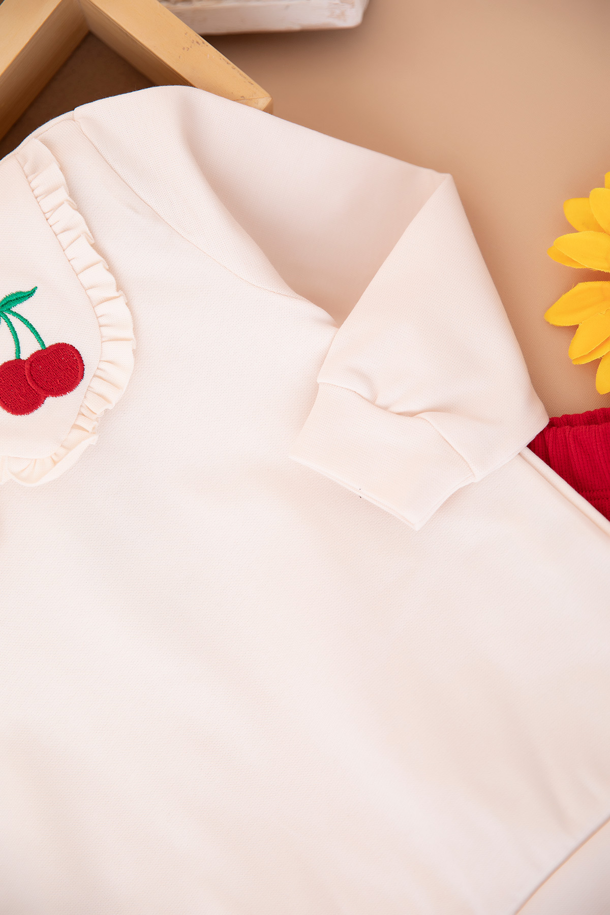 Kız Çocuk Yakası Kiraz Nakışlı Taytlı Takım (2-7 Yaş)