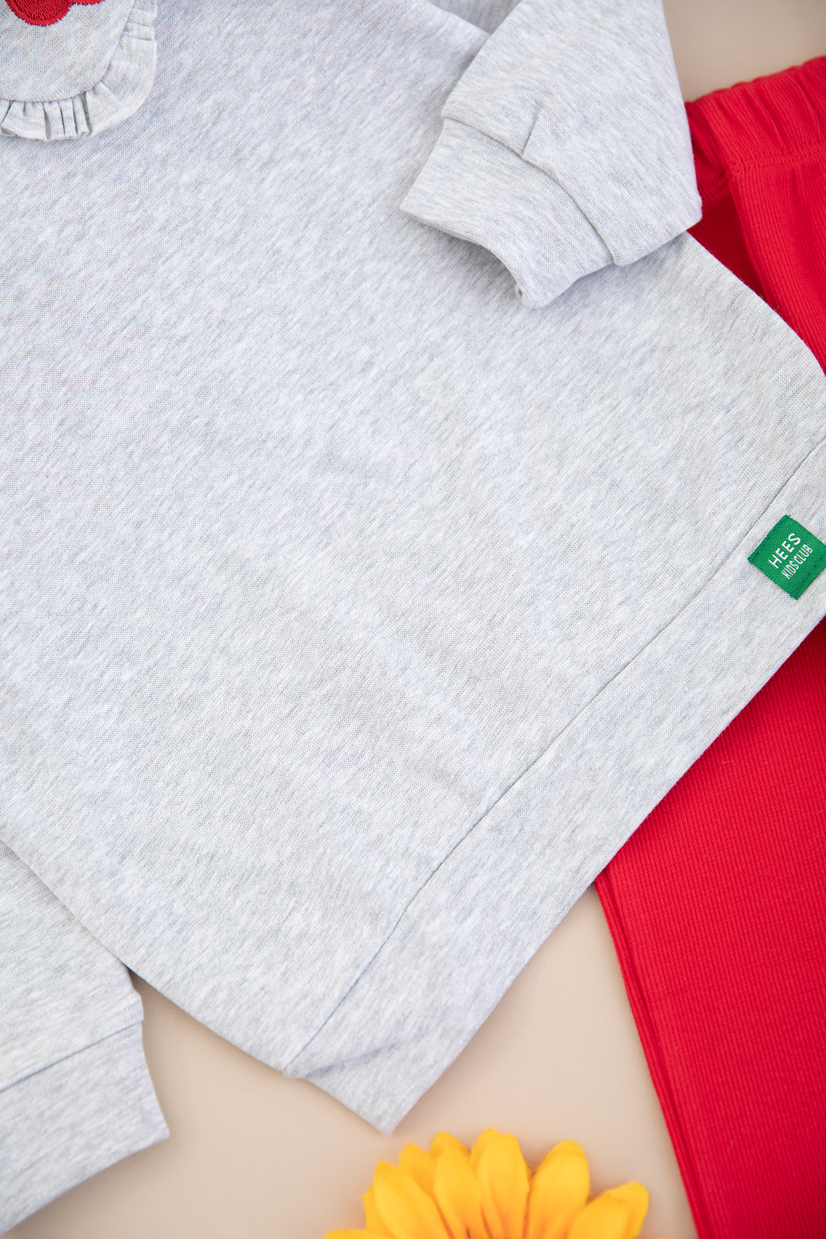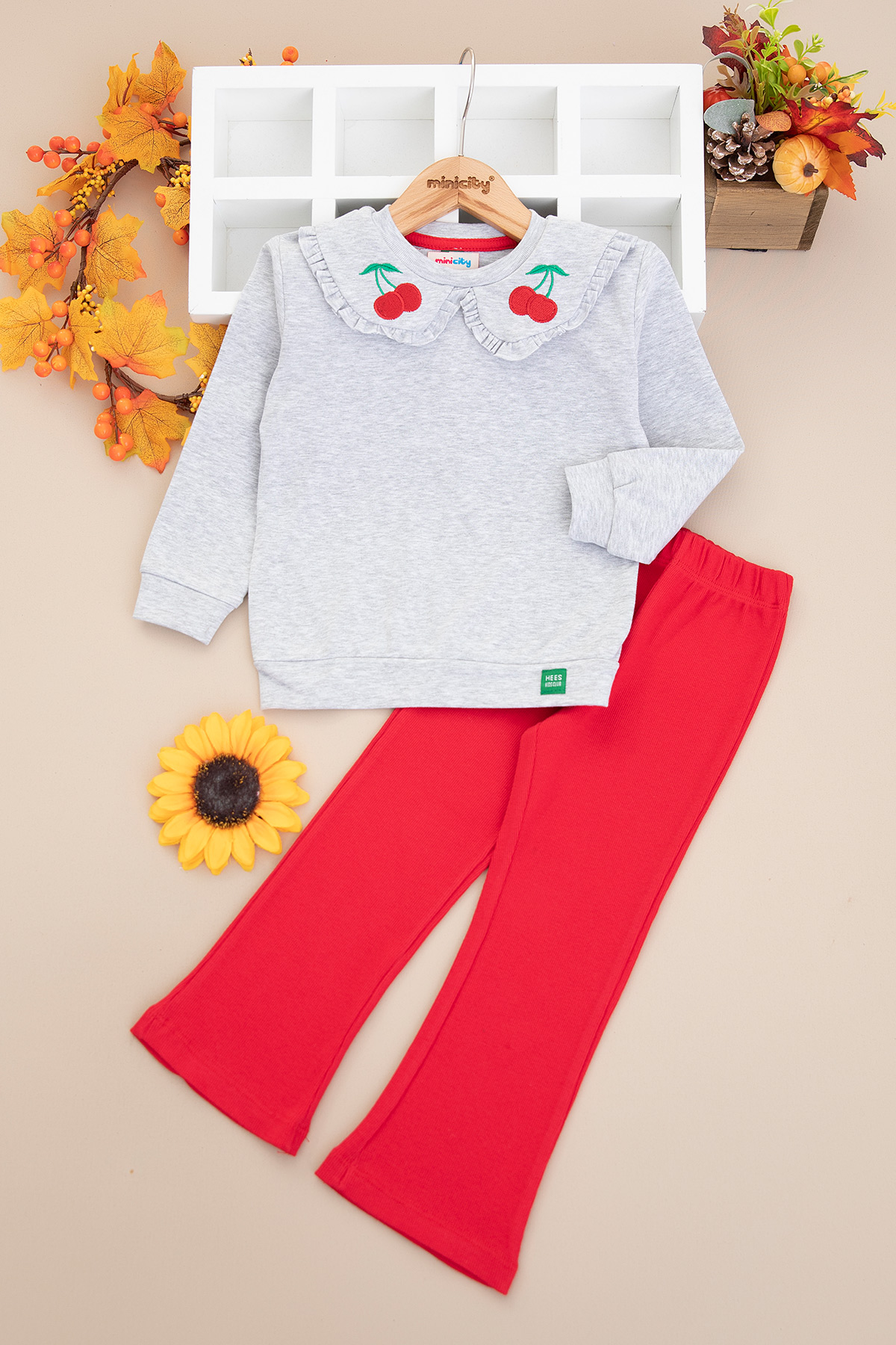Kız Çocuk Yakası Kiraz Nakışlı Taytlı Takım (2-7 Yaş)