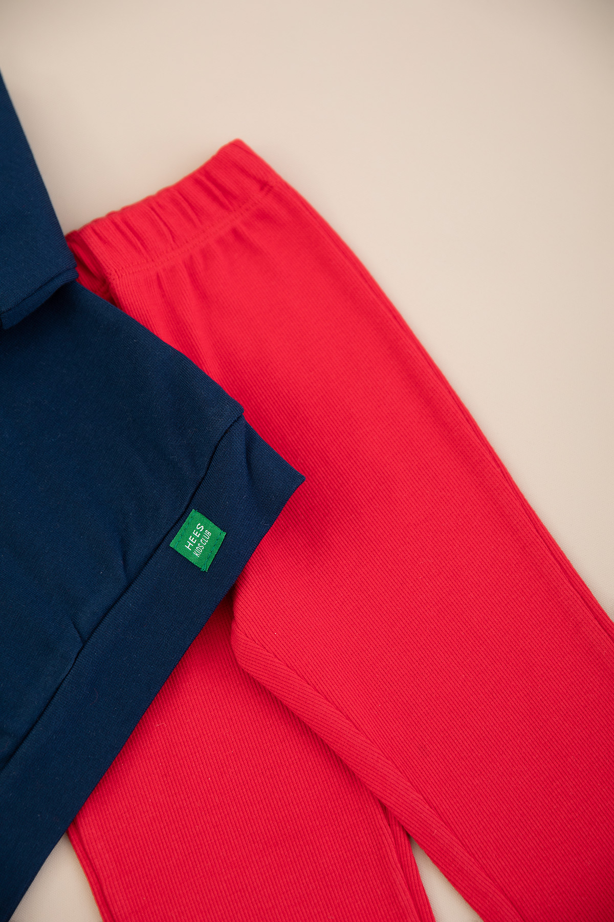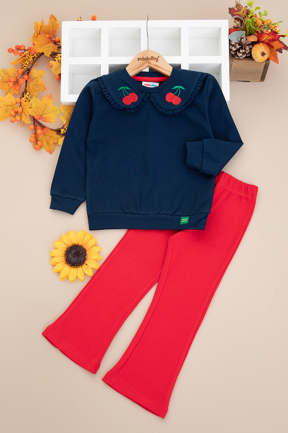 Kız Çocuk Yakası Kiraz Nakışlı Taytlı Takım (2-7 Yaş)