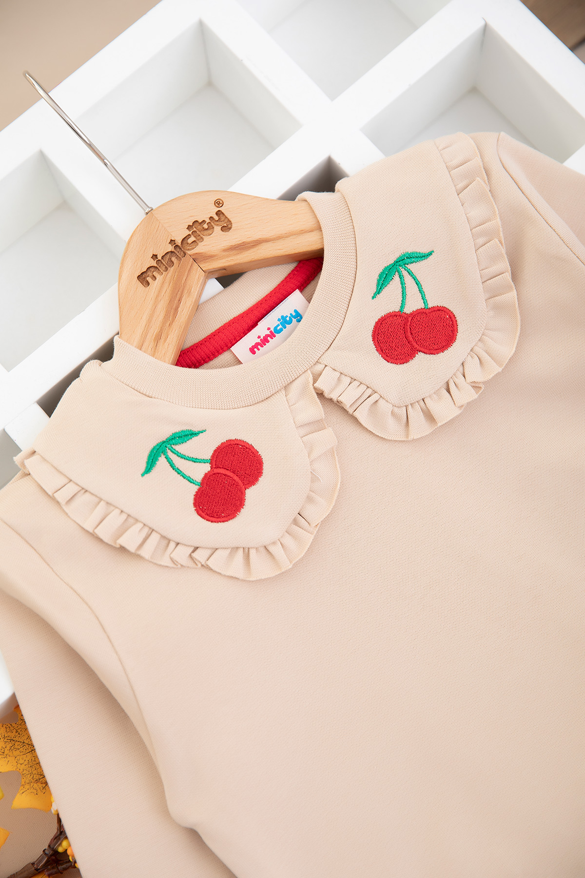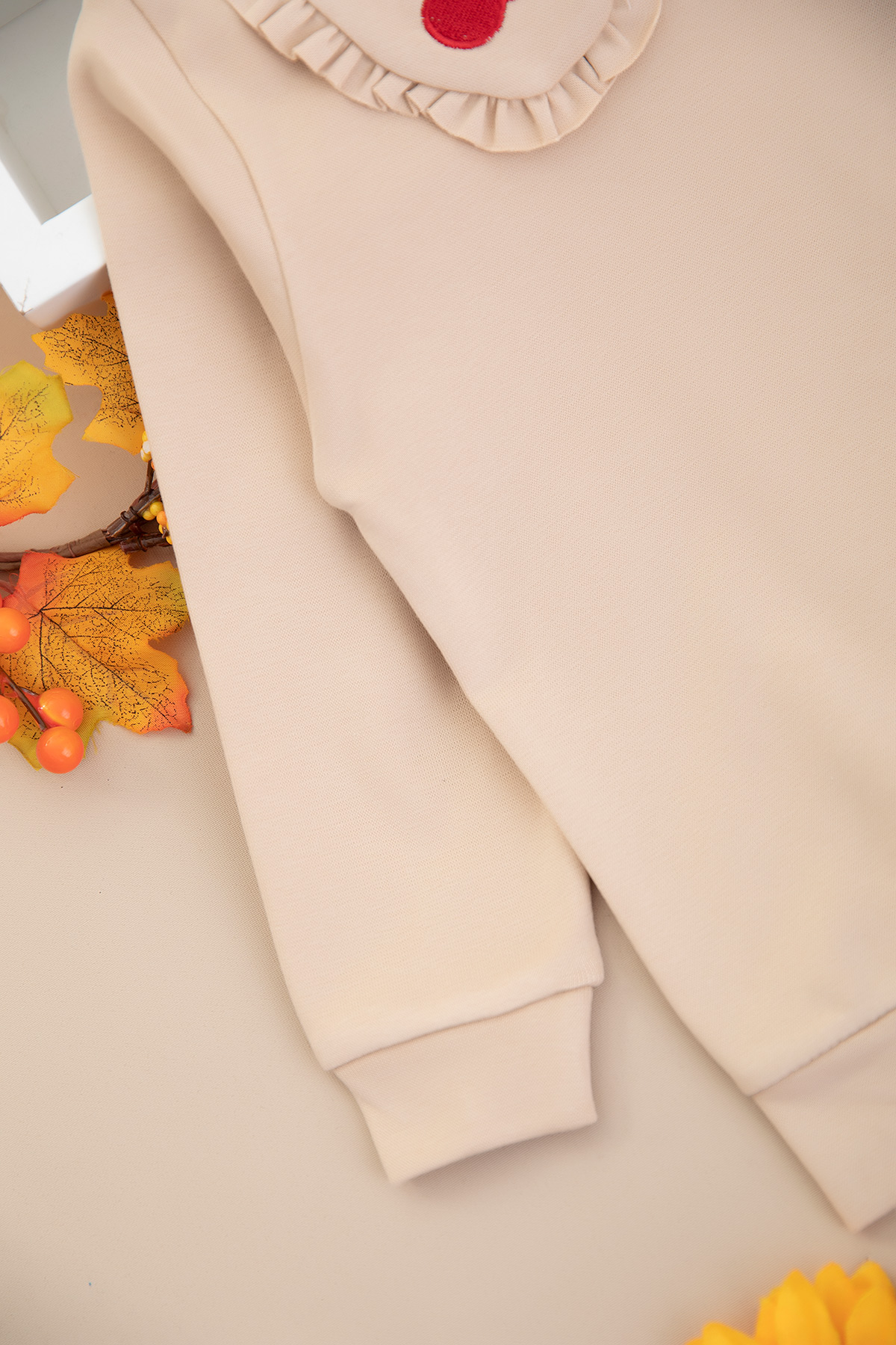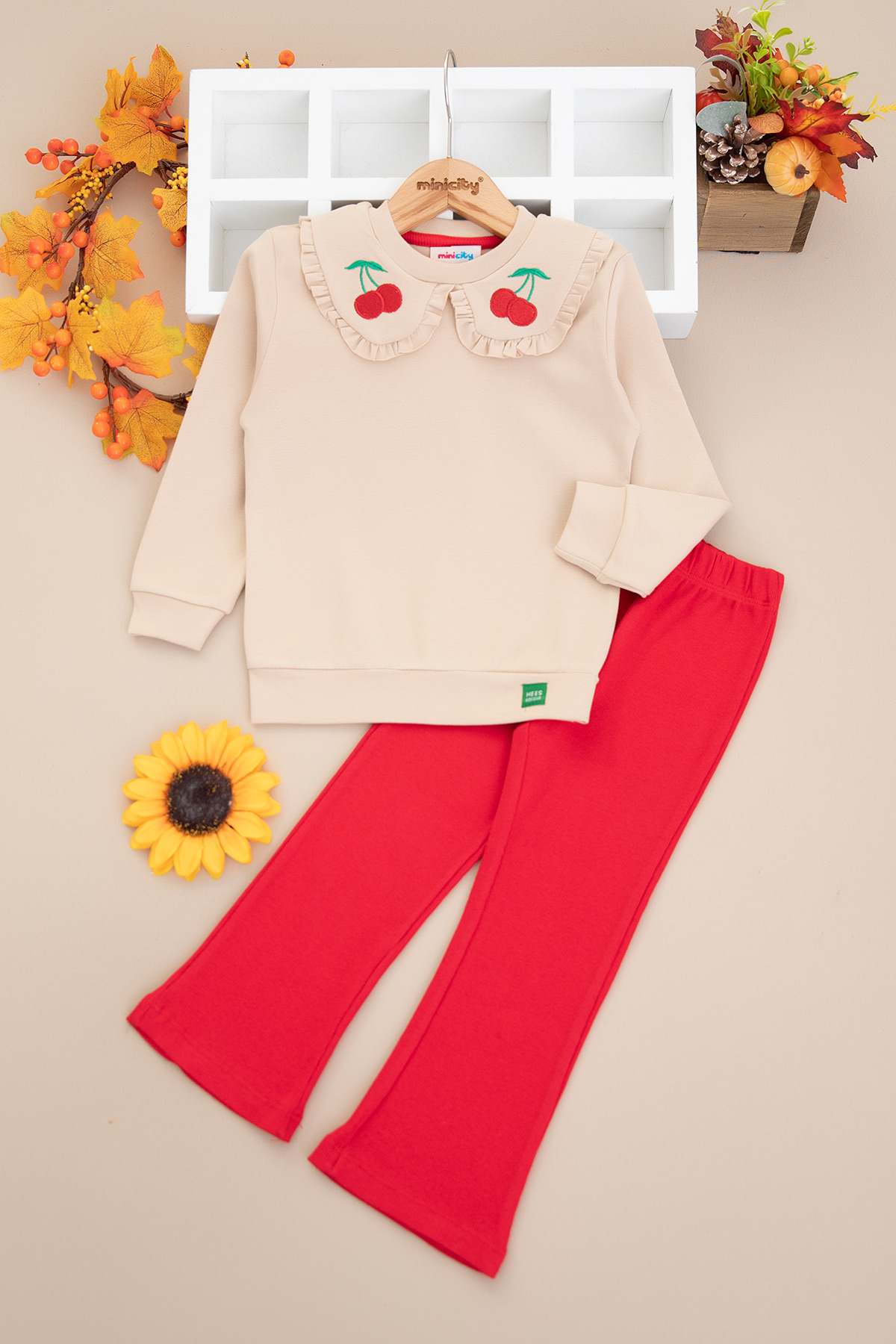 Kız Çocuk Yakası Kiraz Nakışlı Taytlı Takım (2-7 Yaş)