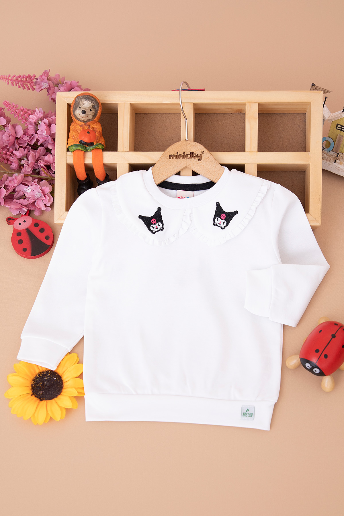 Kız Çocuk Yakası Kromi Nakışlı Sweat (2-10 Yaş)
